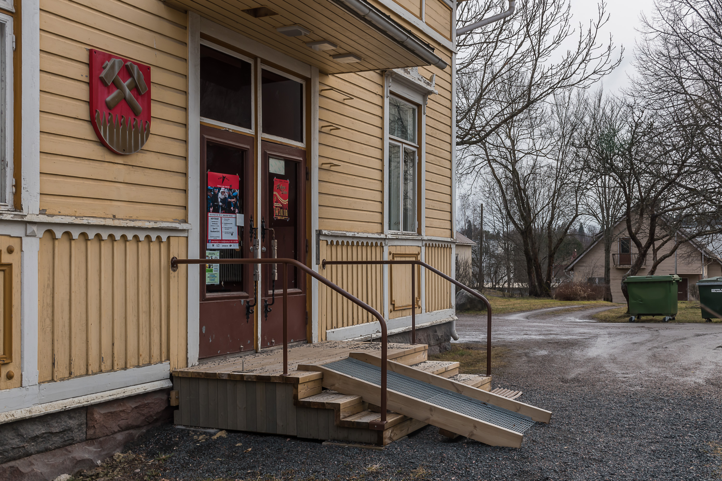 28. Местная музыкальная школа, с гербом Карккилы, со скрещенными молотками.