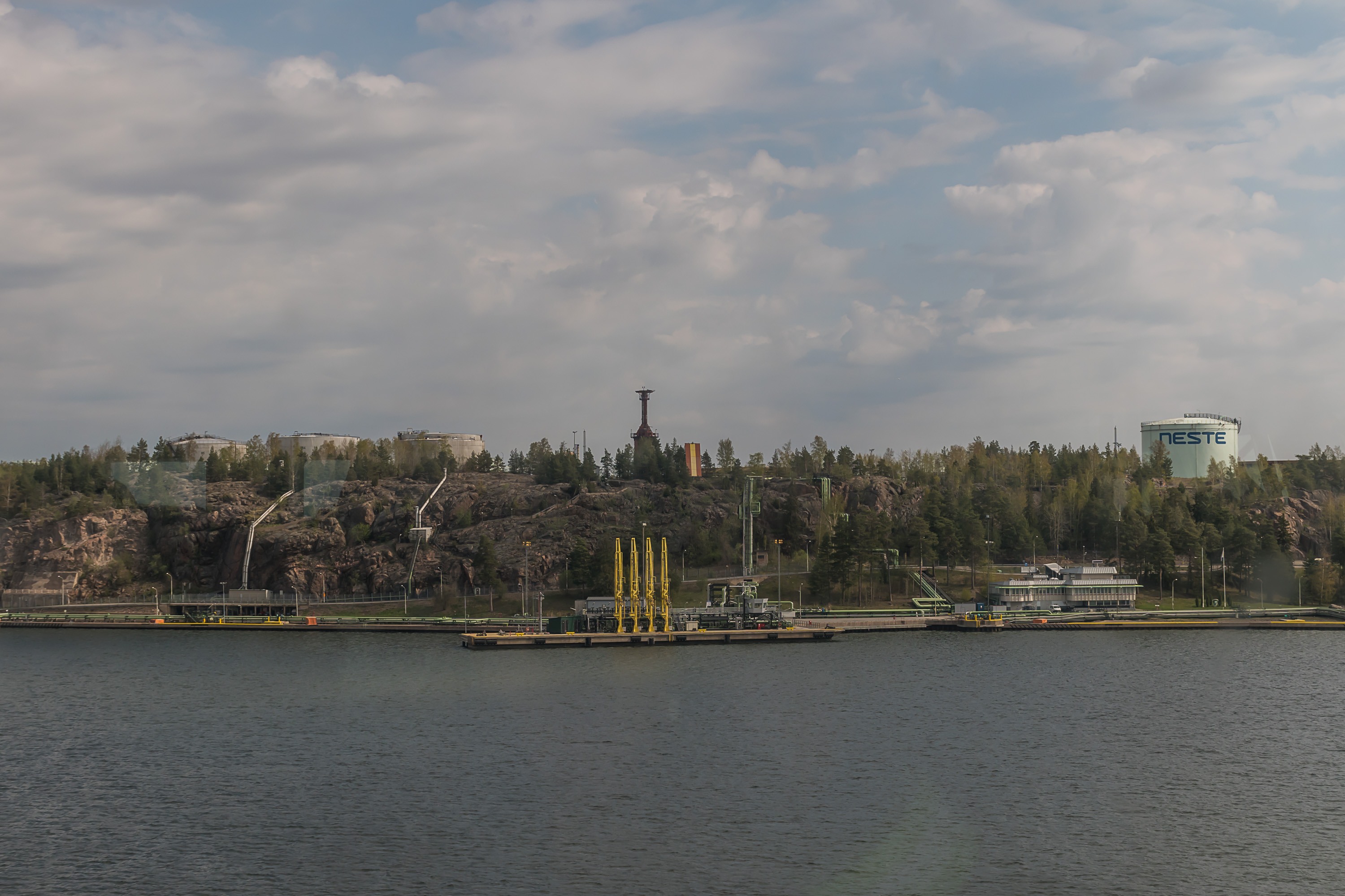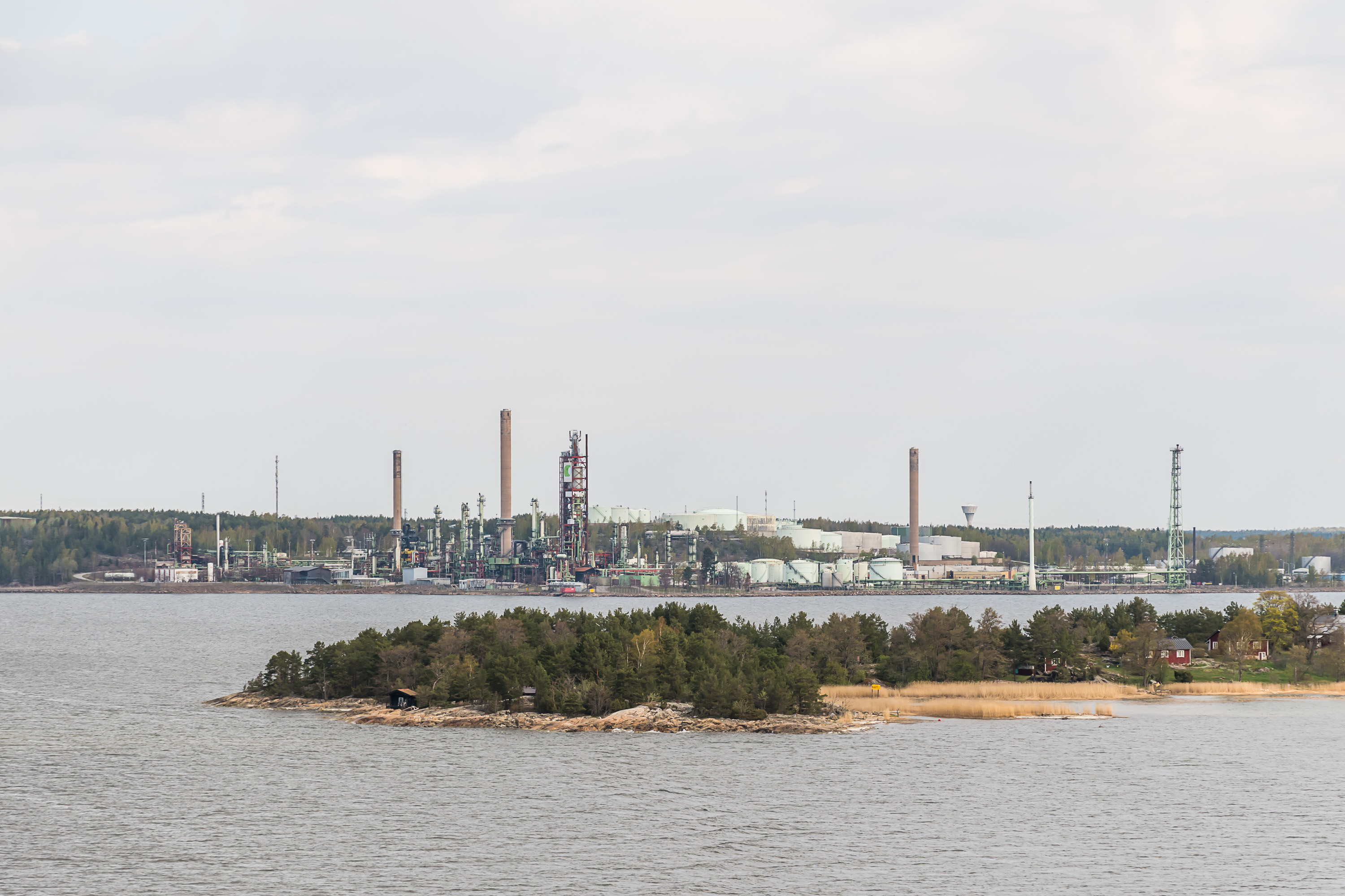 44. Промышленность Наантали лучше всего видно именно с моря, и в первую очередь это нефтеперерабатывающий завод Neste. Сначала это был не НПЗ, а просто хранилище горючего; его хотели построить еще в войну, но смогли начать только к 1944 году, а в 1948 году была основана государственная компания Neste. Neste по-фински означает "жидкость". В те времена горючее в Финляндию поставлялось в основном с запада. Но СССР была нужна продукция финской промышленности, которую он сначала получал в качестве репараций, а к 1950-м Финляндия все репарации выплатила, и СССР нужно было начинать что-то предлагать взамен. А предложить СССР мог сырую нефть. Западные нефтяные компании были против строительства работающего на советской нефти НПЗ в Финляндии, и грозились закрыть свои сети АЗС в стране. Тем не менее, в 1954 году парламент одобрил строительство НПЗ, а угрозы нефтяных гигантов оказались пустыми — оказалось, что они вовсе не против закупать бензин у Neste и перепродавать на своих заправках. У Neste есть сейчас и собственная сеть заправок, вторая самая популярная в стране после ABC, принадлежащих S-группе (S-группа наиболее известна тем, что владеет магазинами "С-Маркет" и "Призма"). На данный момент Neste — крупнейшая компания Финляндии по обороту и по уплаченному корпоративному налогу. Сейчас акции Neste торгуются на бирже, и финляндское государство является крупнейшим, но не единственным акционером (ему принадлежит около 40% компании).