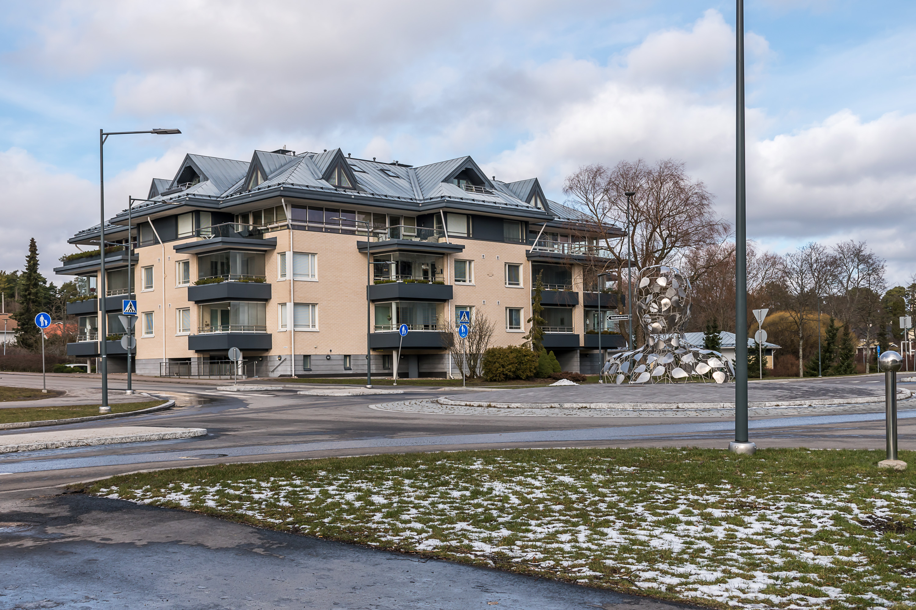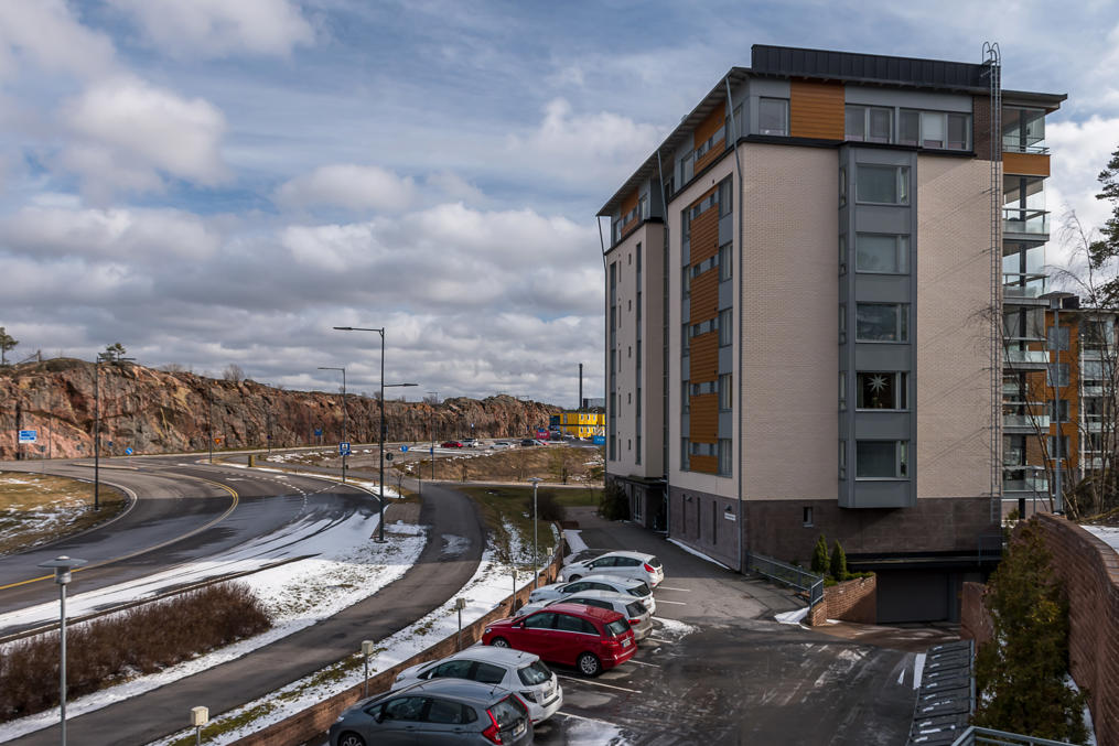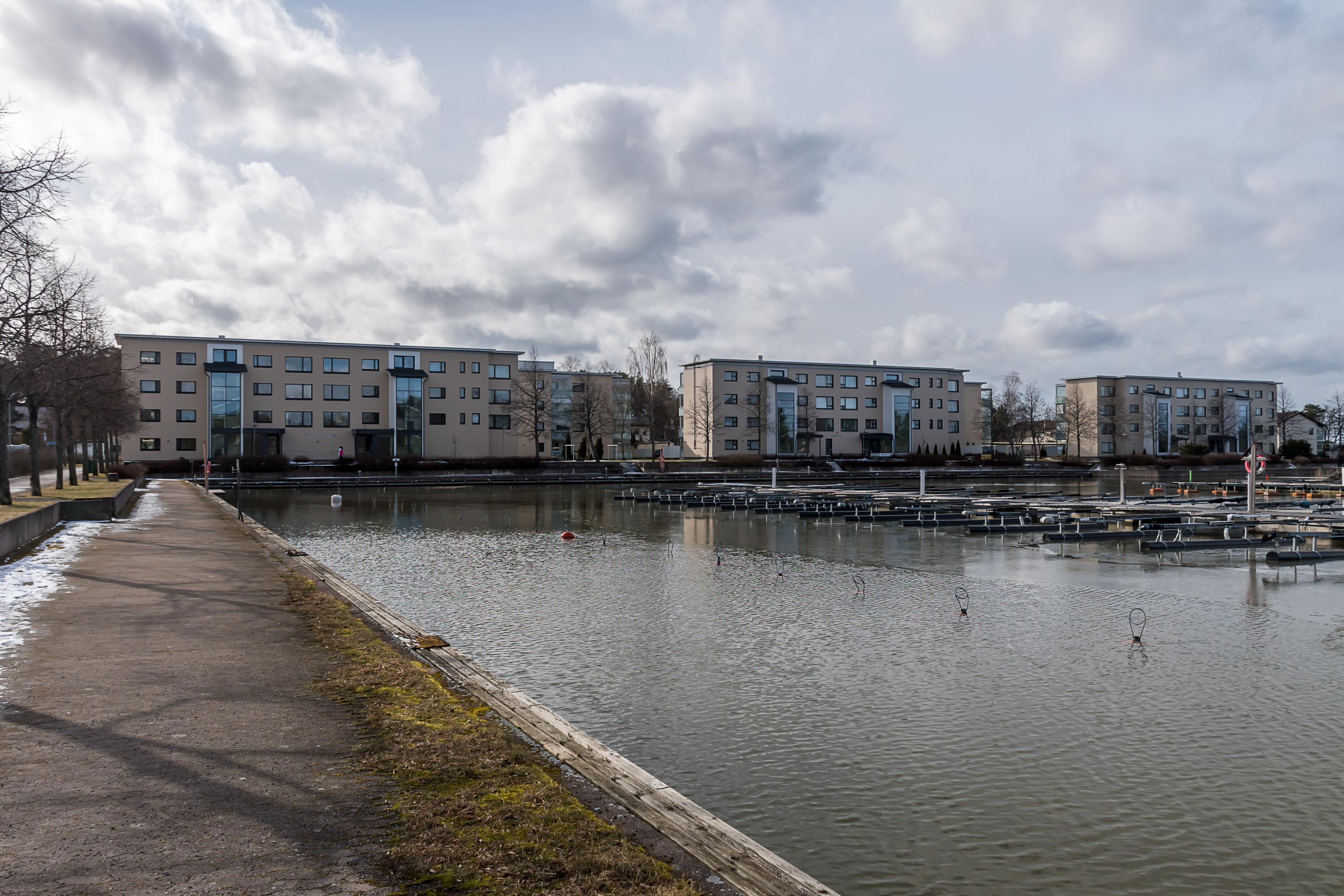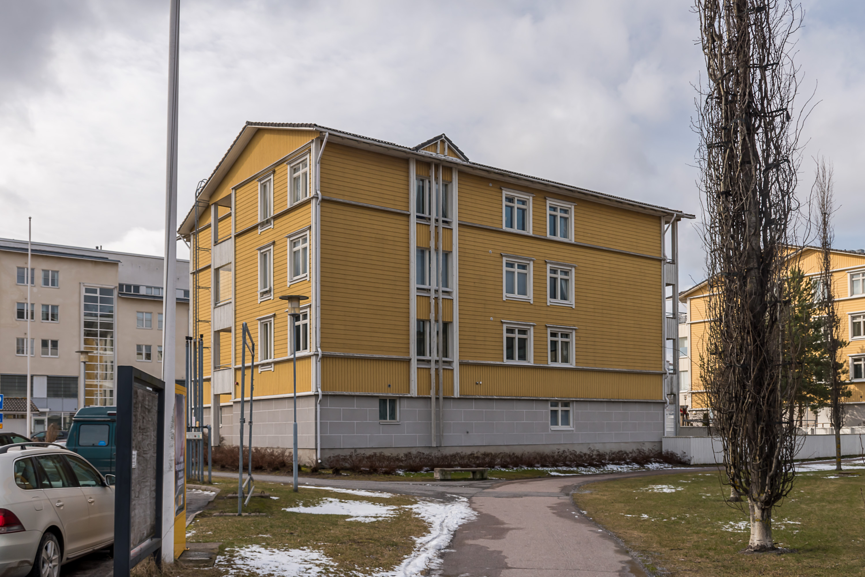 14. Дома-то, кстати, любопытные; нечасто увидишь жилые многоэтажки с деревянными фасадами. Три одинаковых здания, стоящие в таком месте, что вьезжающие в центр на машине обязательно их увидят, построены в 2000 году. Первый этаж бетонный, а вот вся остальная часть здания действительно деревянная, включая структурные элементы. Строить деревянные многоэтажки в Финляндии стало довольно модно особенно в последние годы. Как можно увидеть из этого списка таких зданий, для многих по виду особо и не понятно, что они деревянные.