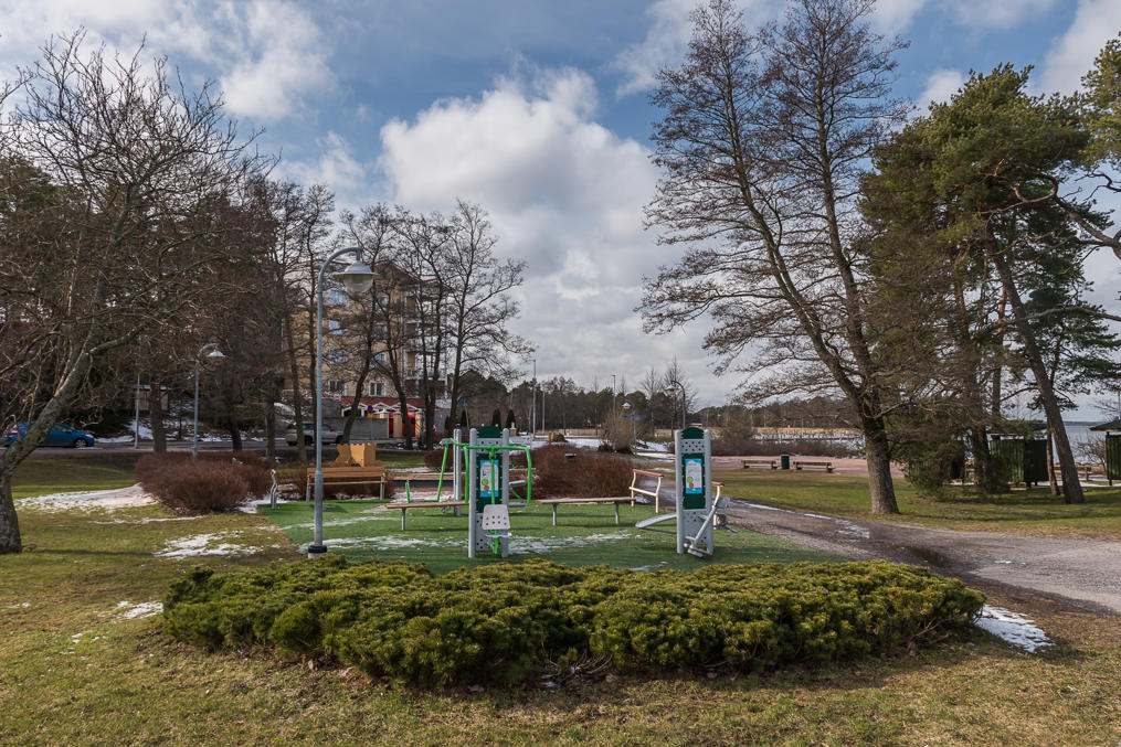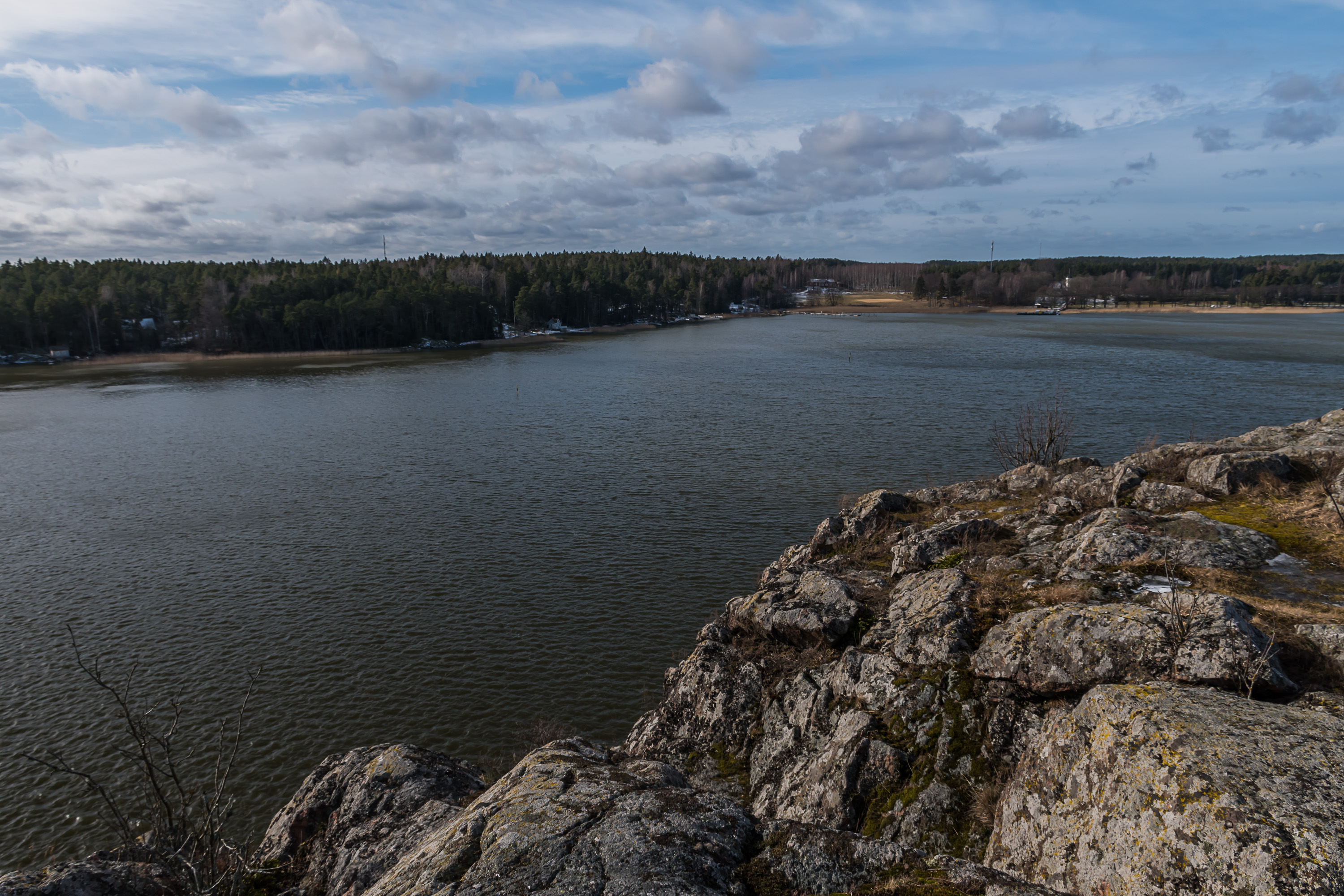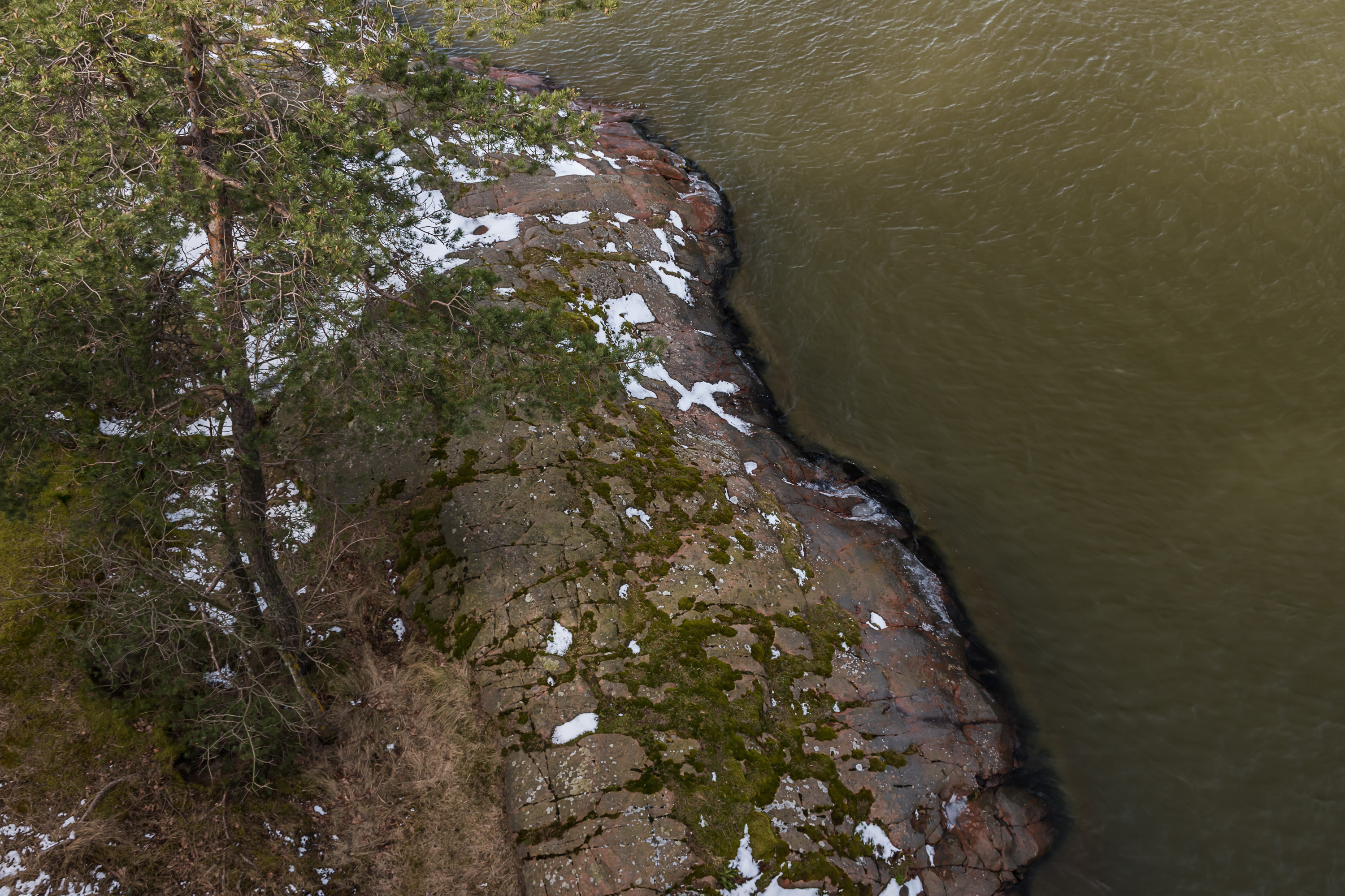 24. Если от спа-отеля и этих мноэтажек мы пойдем по берегу на запад, против часовой стрелки, то придем к церкви, мосту на Муми-мир и старому городу — всему тому, что уже видели в предыдущем посте. А если идти вдоль берега из старого города еще дальше, быстро упремся в Купаривуори (Kuparivuori, фин. Медная гора), невысокую (20-25 м), но крутую и обширную по площади скалу, поднимающуюся из моря местами почти вертикально. На Купаривуори легко забраться и насладиться видами с обрывов.