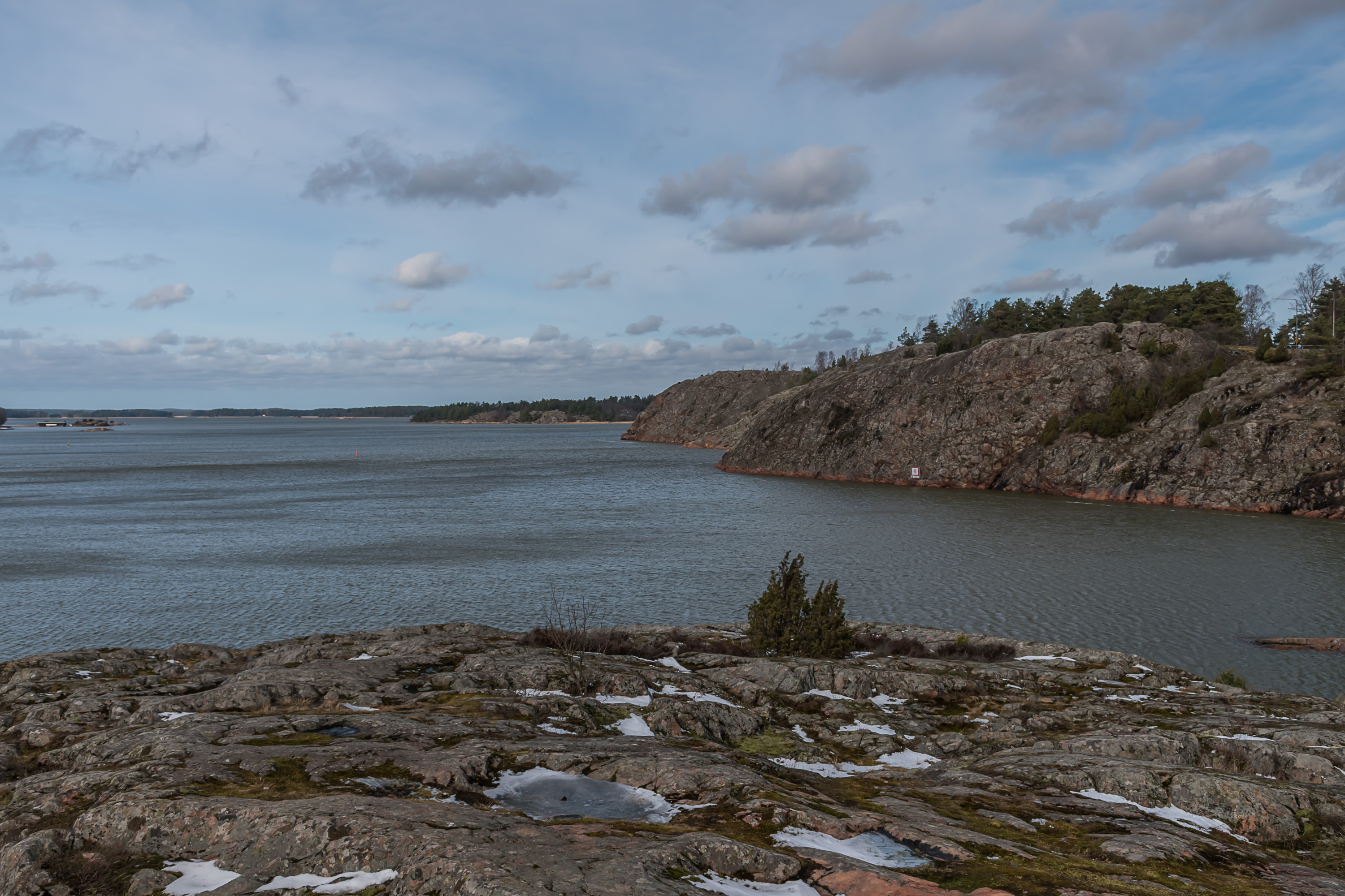 29. Вид со шхеры Раумакари. Сочетание каменных обрывов над морем и туннеля поблизости придает этому месту неожиданно норвежскую атмосферу; и то, и другое, в Норвегии встречается очень часто, а в Финляндии — редко.