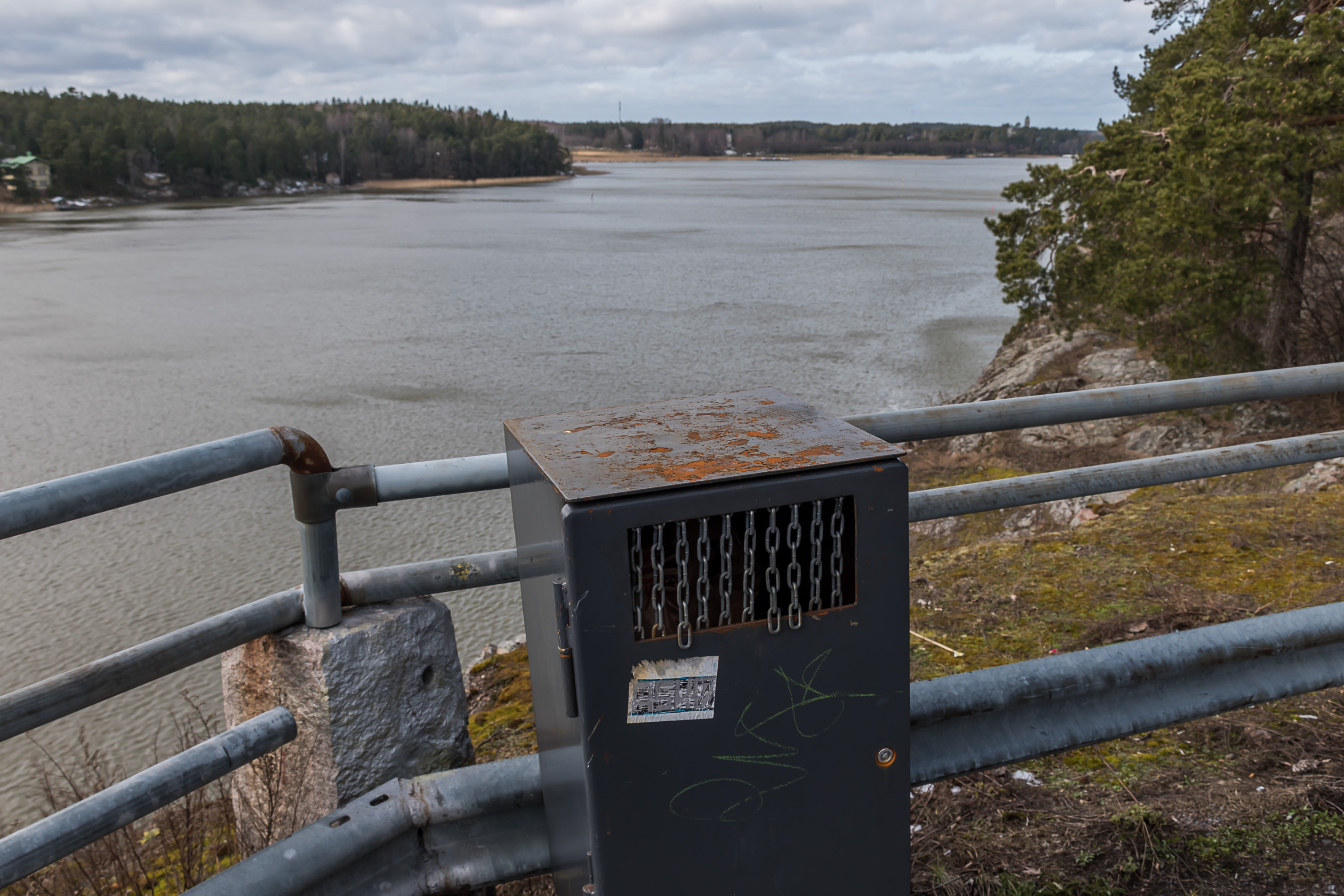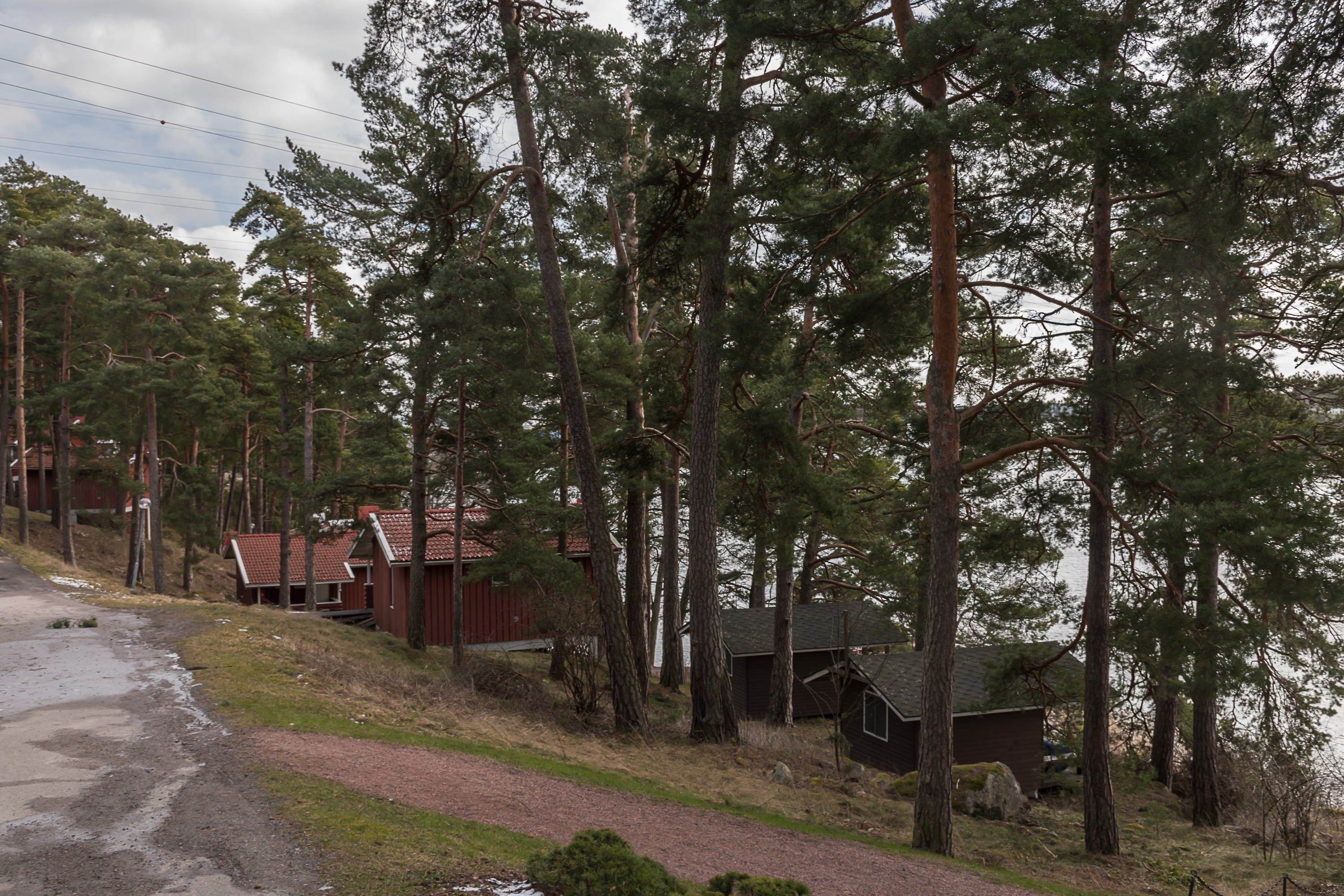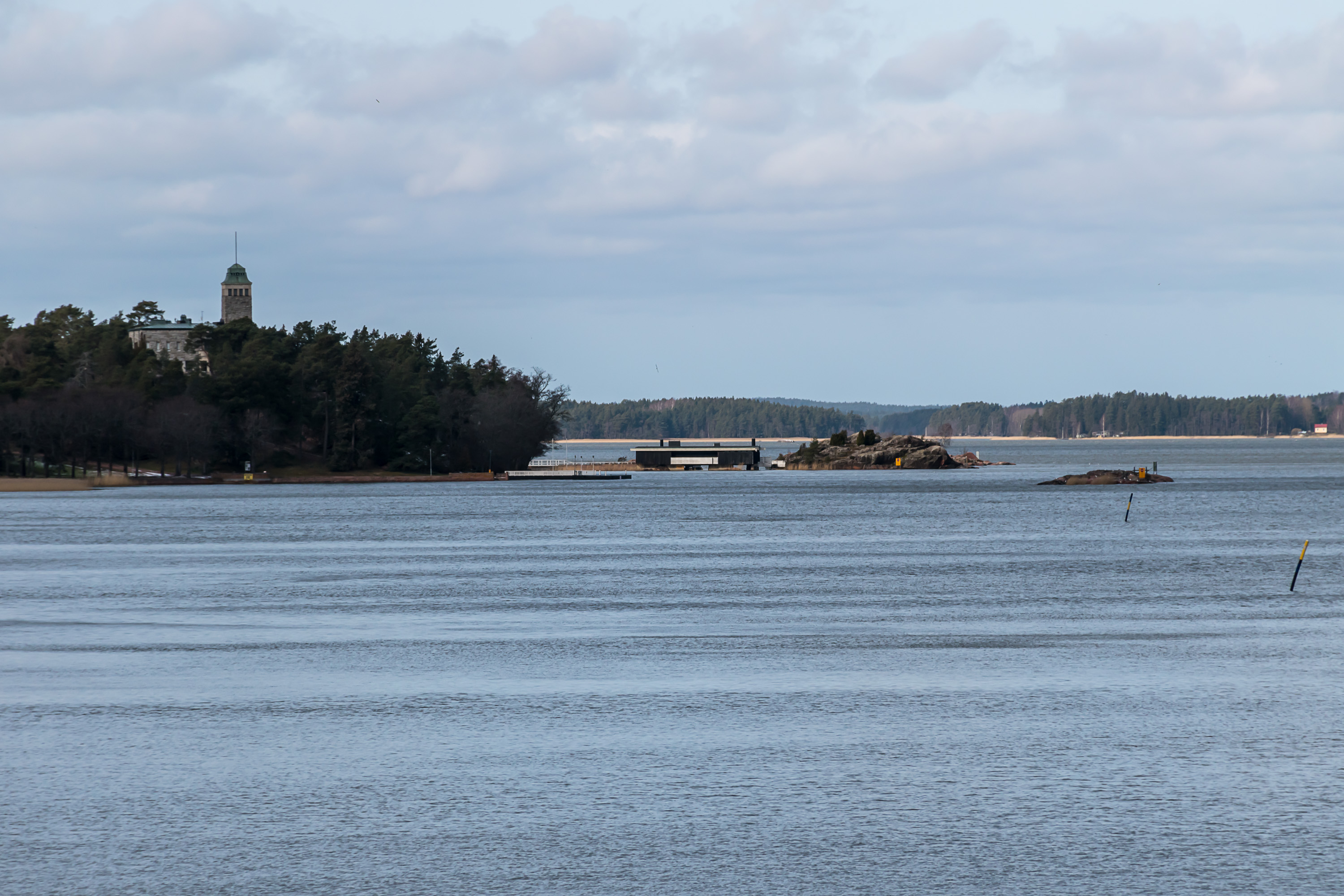 31. Вид на президентскую резиденцию Култаранта (Kultaranta, фин. Золотой берег) вдалеке с моста Укко-Пекки. Детали различить сложно, но на пирсе хорошо видна президентская сауна. А то какая же резиденция президента Финляндии может быть без сауны? К причалу рядом, вероятно, иногда швартуется президентский катер "Култаранта-VIII". Да, их действительно было до этого целых семь штук за историю независимой Финляндии. "Култаранта-VIII" построена в 2008 году на верфи Уусикаупунки, и обслуживается (и, вероятно, отстаивается вне сезона) на военно-морской базе Пансио неподалеко отсюда.