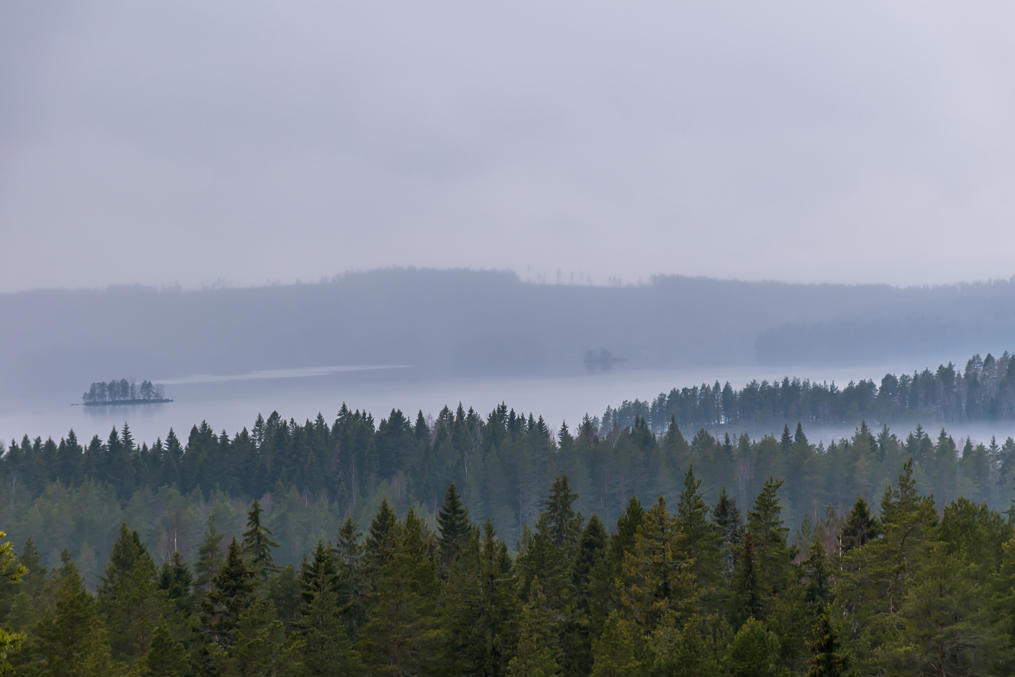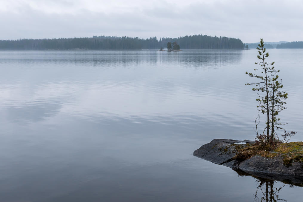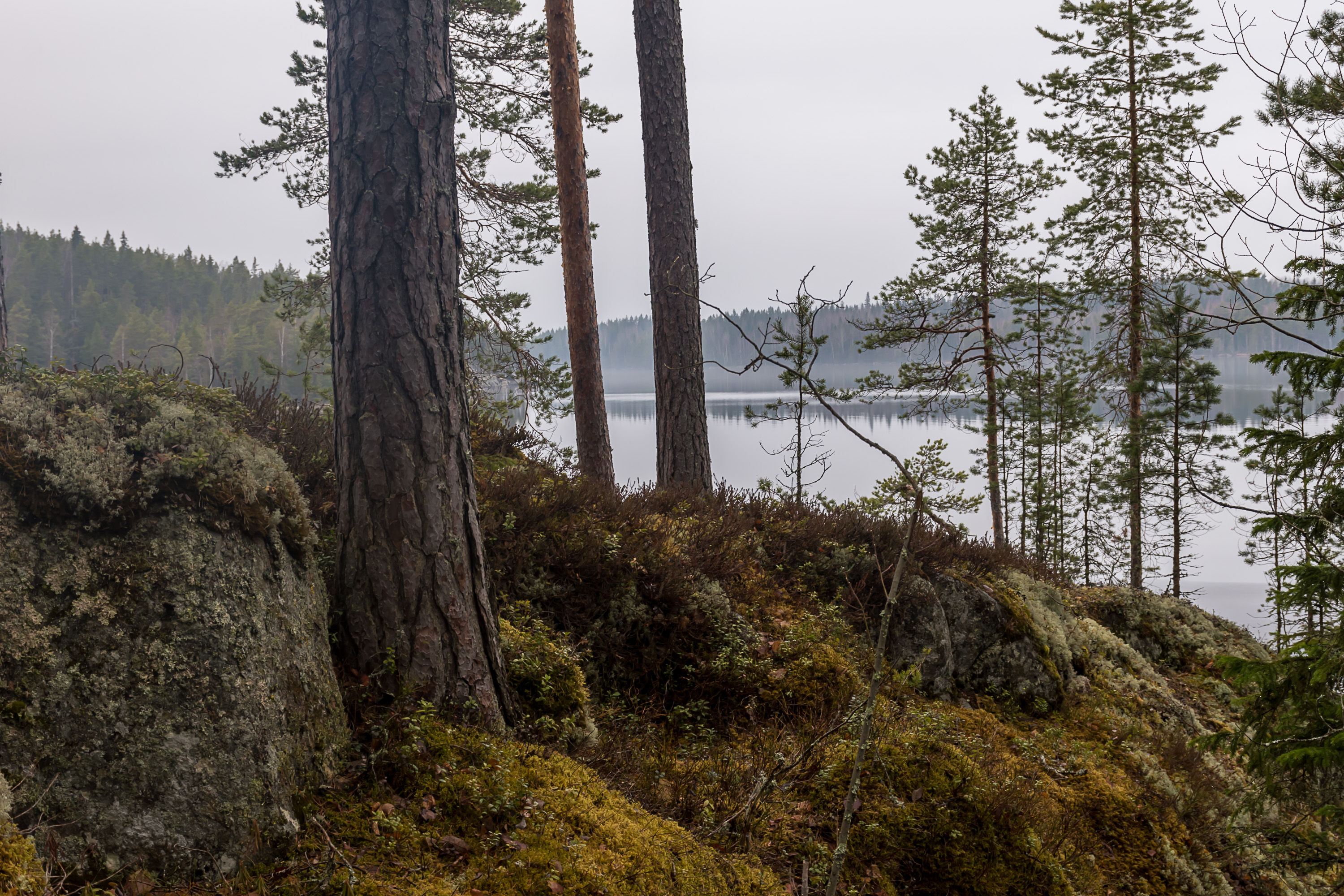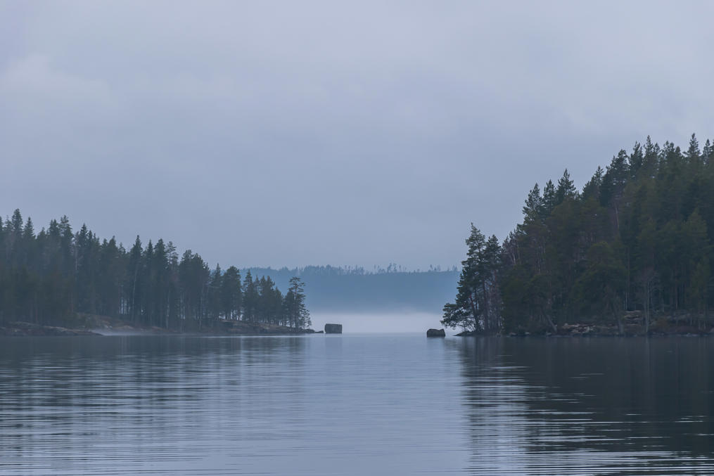По Южному Конневеси мы в итоге прошли около 17.5 км, по сути самый длинный возможный маршрут. Хотя с утра погода выглядела неважной, обещало быть пасмурно и моросить целый день, на самом деле к тому времени, когда мы добрались до тропы, дождь почти прекратился, и стал опускаться легкий туман. Озерные пейзажи в тумане выглядели прекрасно, и мне удалось сделать несколько хороших фотографий, даже, я бы сказал, лучших за 2020 на этот момент, что и сподвигло меня написать пост. (Обычно я путешествую когда могу, вне зависимости от погоды, времени года и времени суток, с приоритетом просто увидеть максимально больше нового, а для пейзажных фотографий как раз нужно подбирать погоду, время года и время суток, чтобы вышло по-настоящему красиво. Многие свои лучшие фотографии я сделал совсем недалеко от Ваасы, живя там, просто потому, что там я часто гулял по окрестной природе в различных возможных условиях, и иногда случайно попадались красивые закаты, туманы и тому подобное.)