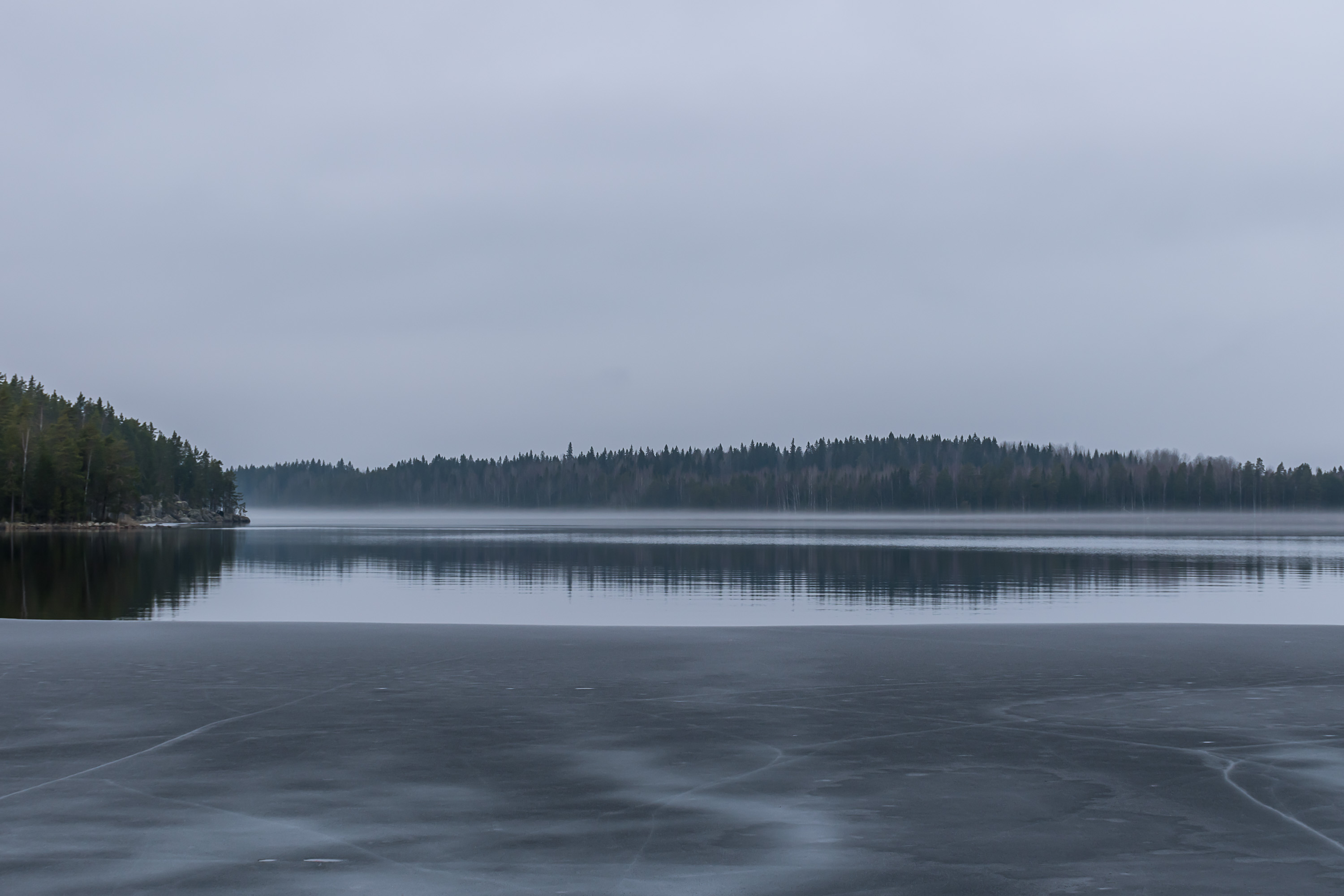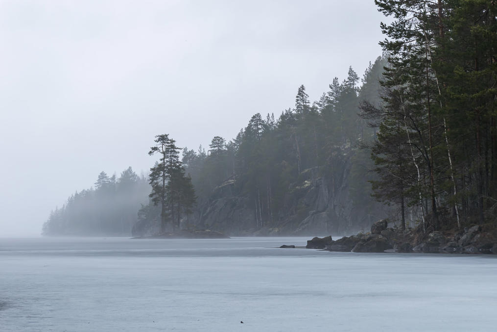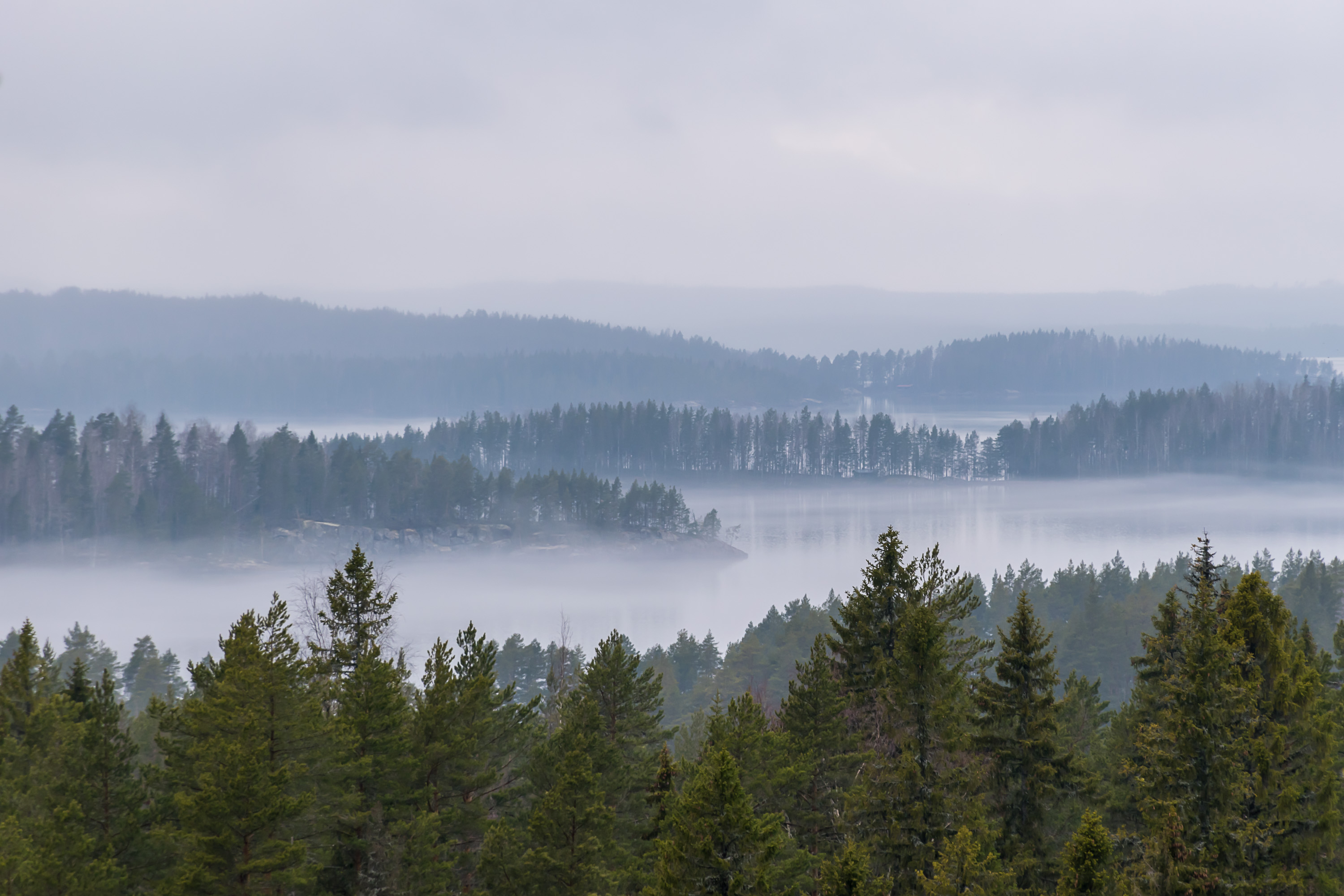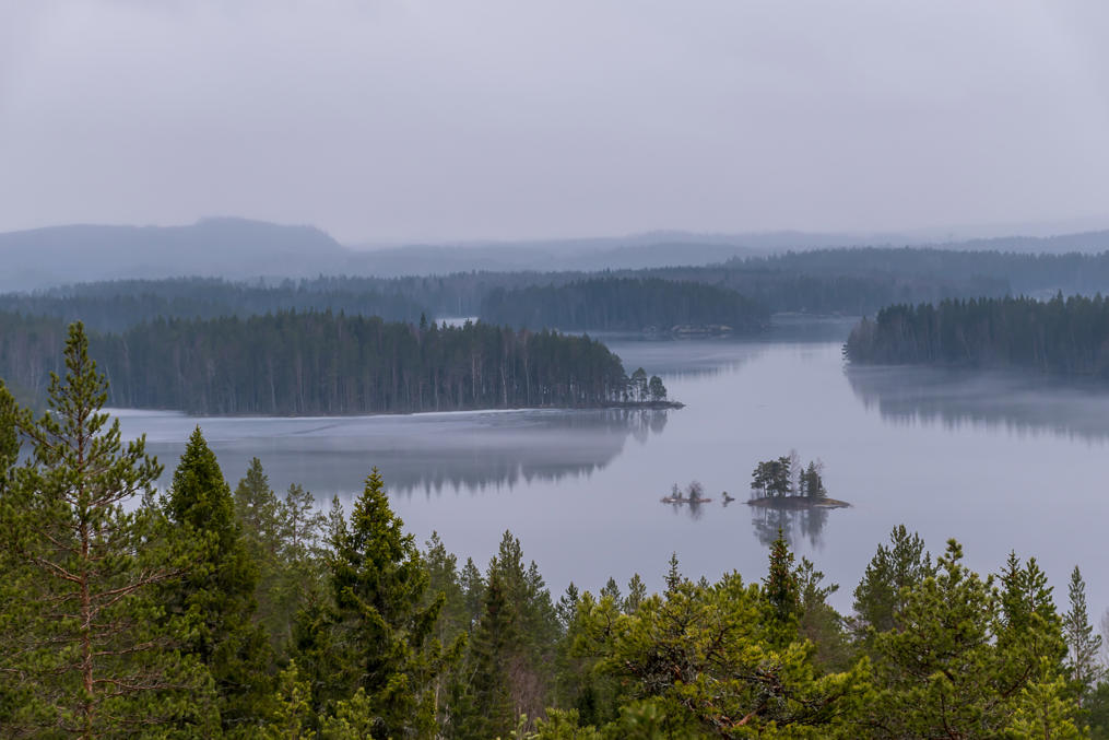 По Южному Конневеси мы в итоге прошли около 17.5 км, по сути самый длинный возможный маршрут. Хотя с утра погода выглядела неважной, обещало быть пасмурно и моросить целый день, на самом деле к тому времени, когда мы добрались до тропы, дождь почти прекратился, и стал опускаться легкий туман. Озерные пейзажи в тумане выглядели прекрасно, и мне удалось сделать несколько хороших фотографий, даже, я бы сказал, лучших за 2020 на этот момент, что и сподвигло меня написать пост. (Обычно я путешествую когда могу, вне зависимости от погоды, времени года и времени суток, с приоритетом просто увидеть максимально больше нового, а для пейзажных фотографий как раз нужно подбирать погоду, время года и время суток, чтобы вышло по-настоящему красиво. Многие свои лучшие фотографии я сделал совсем недалеко от Ваасы, живя там, просто потому, что там я часто гулял по окрестной природе в различных возможных условиях, и иногда случайно попадались красивые закаты, туманы и тому подобное.)