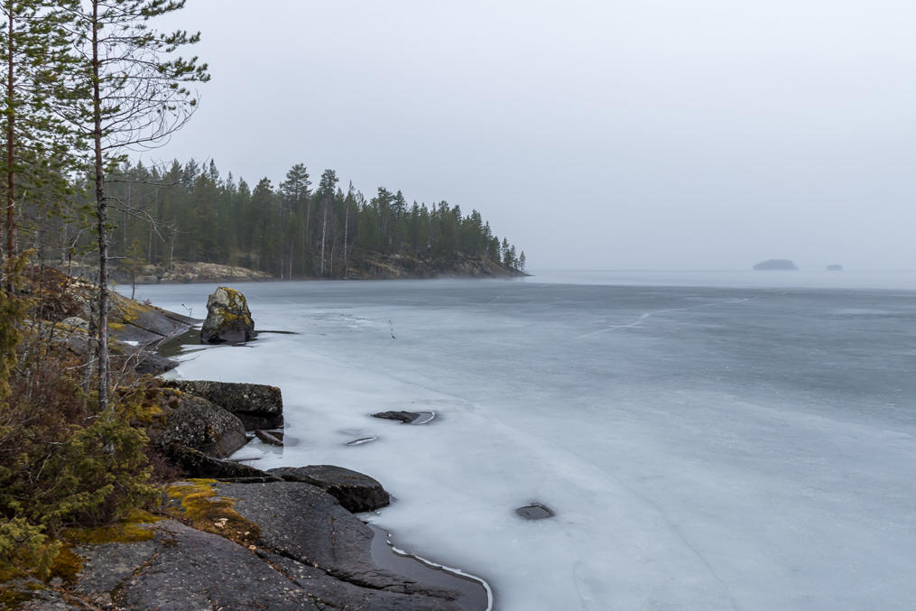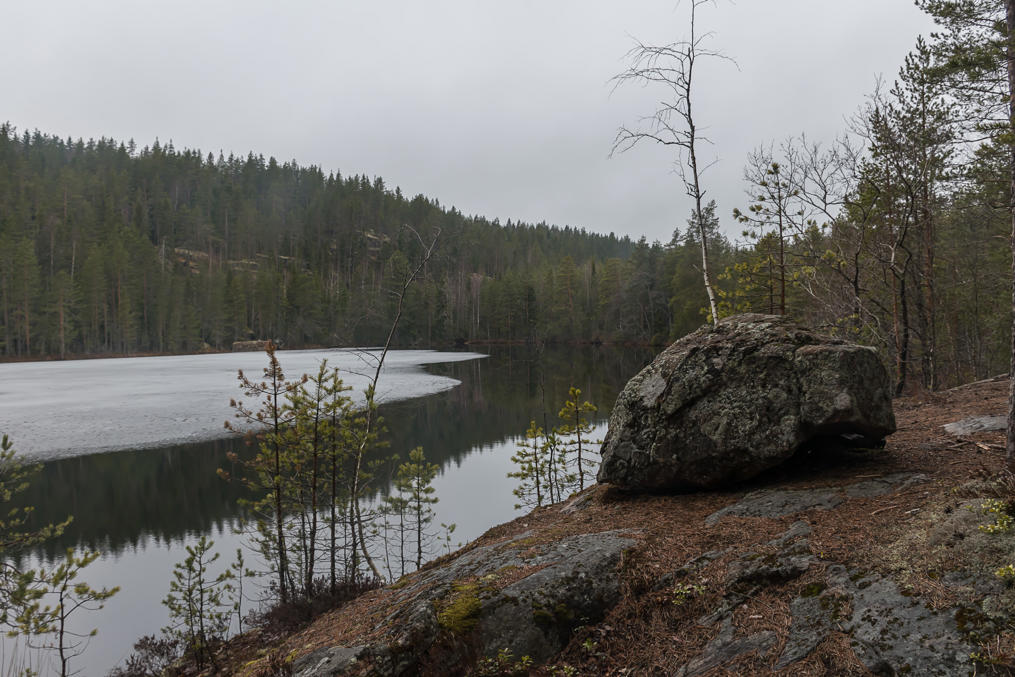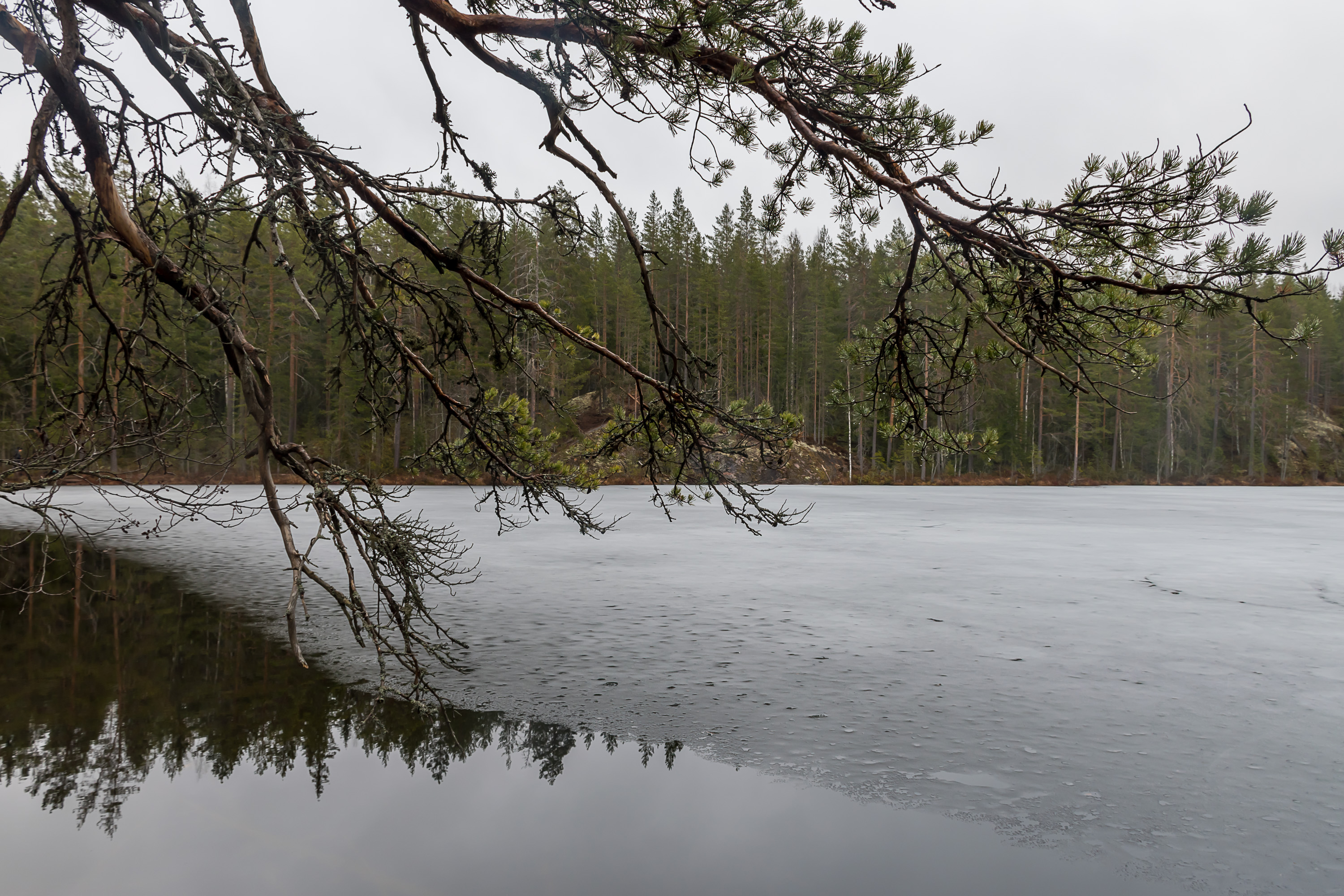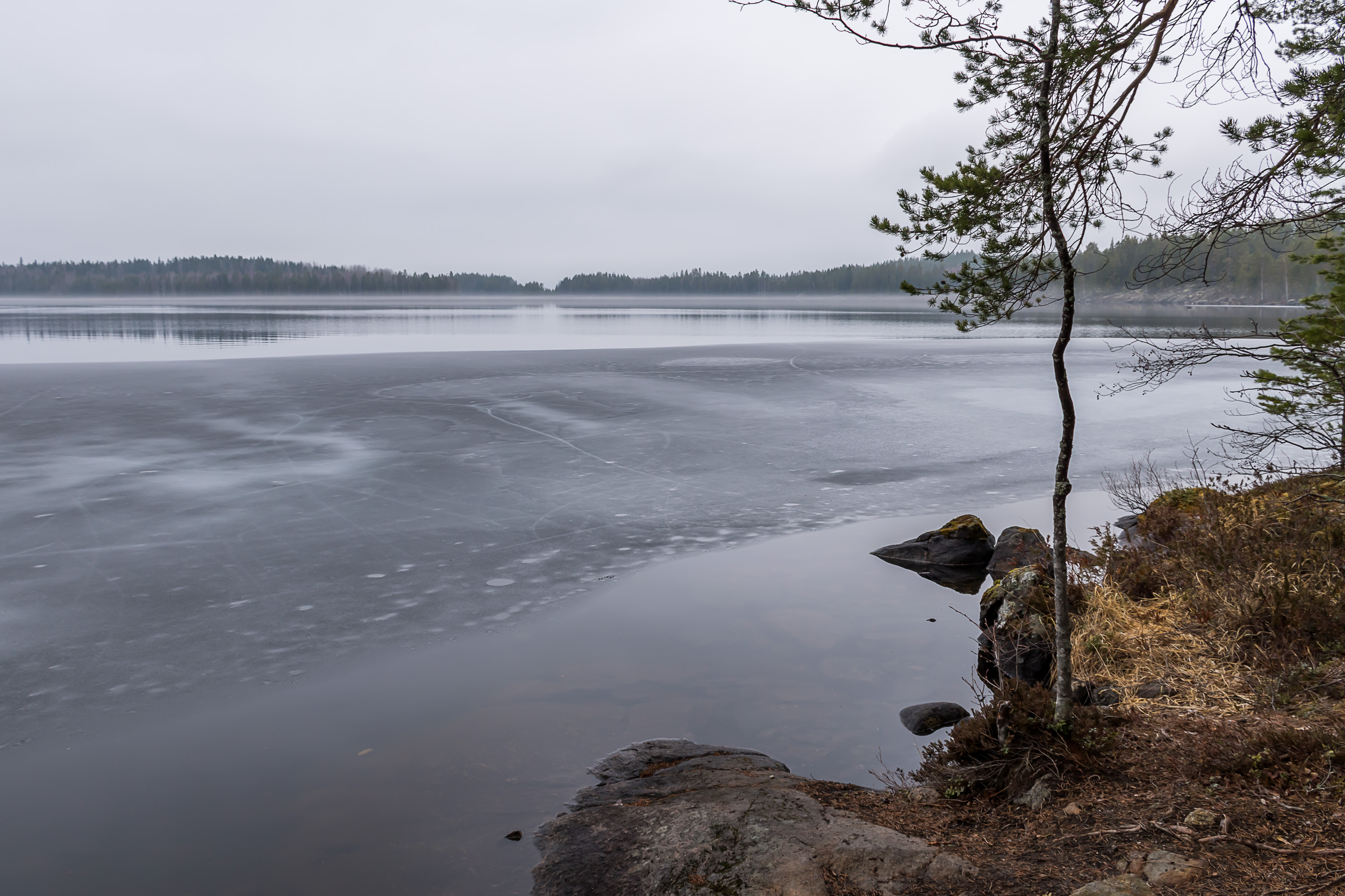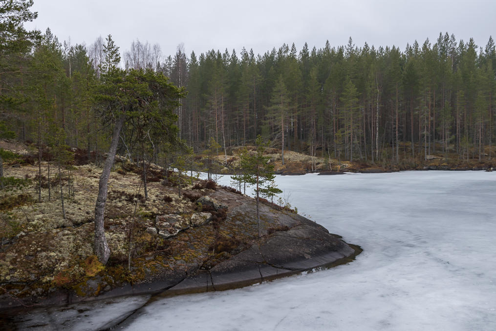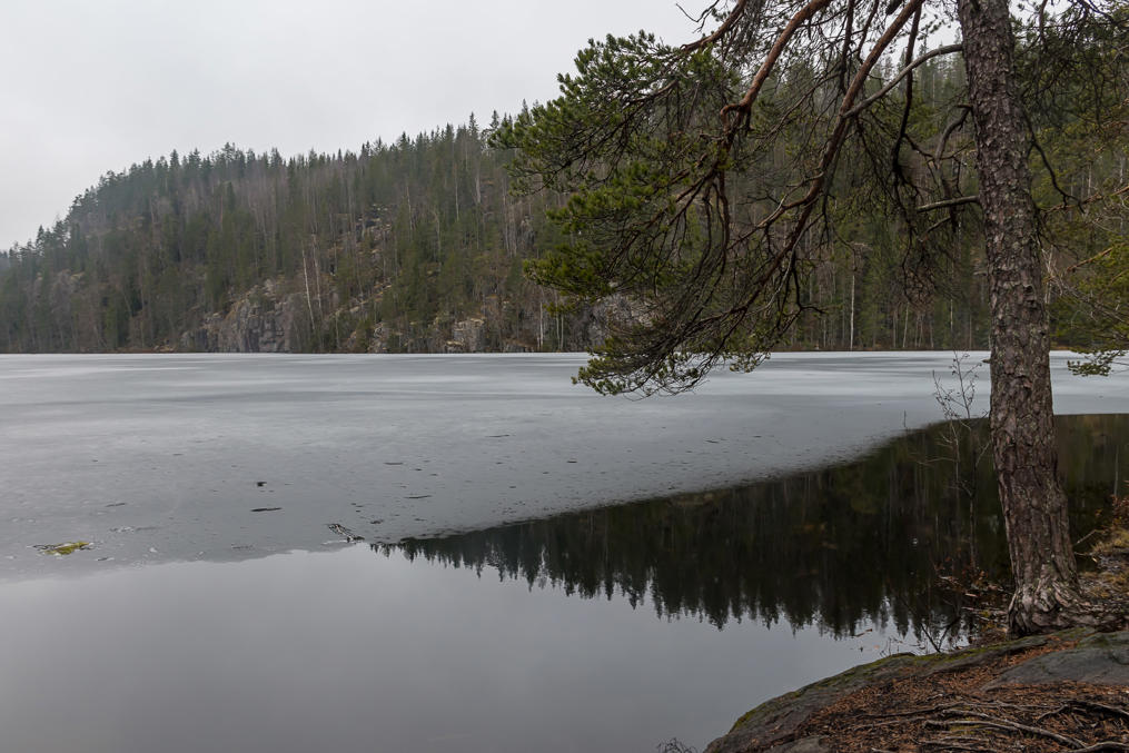 5. А это и есть озеро Вуори-Калайя. Все озера национального парка, незавсимо от размера, еще были частично под тающим льдом.