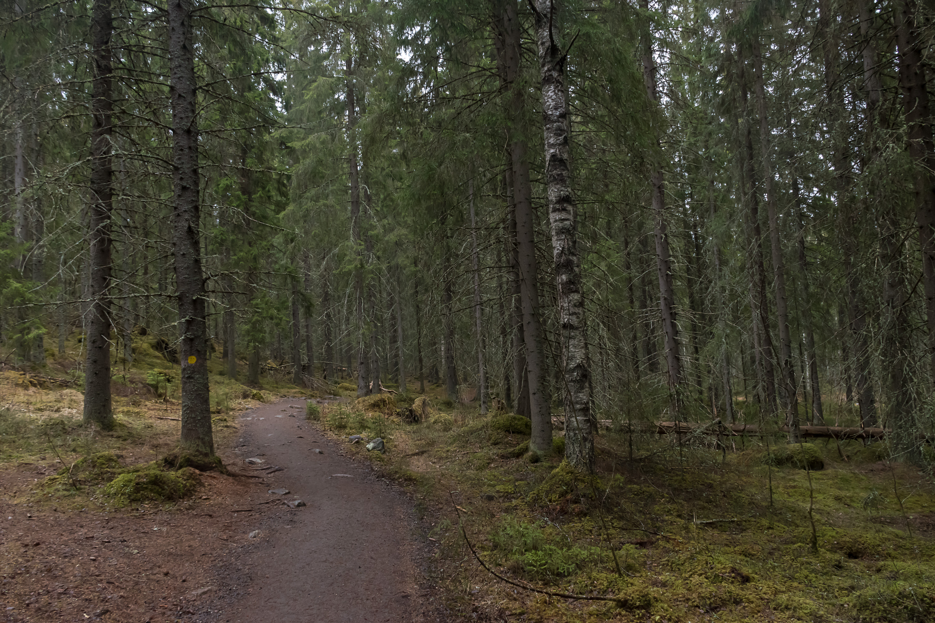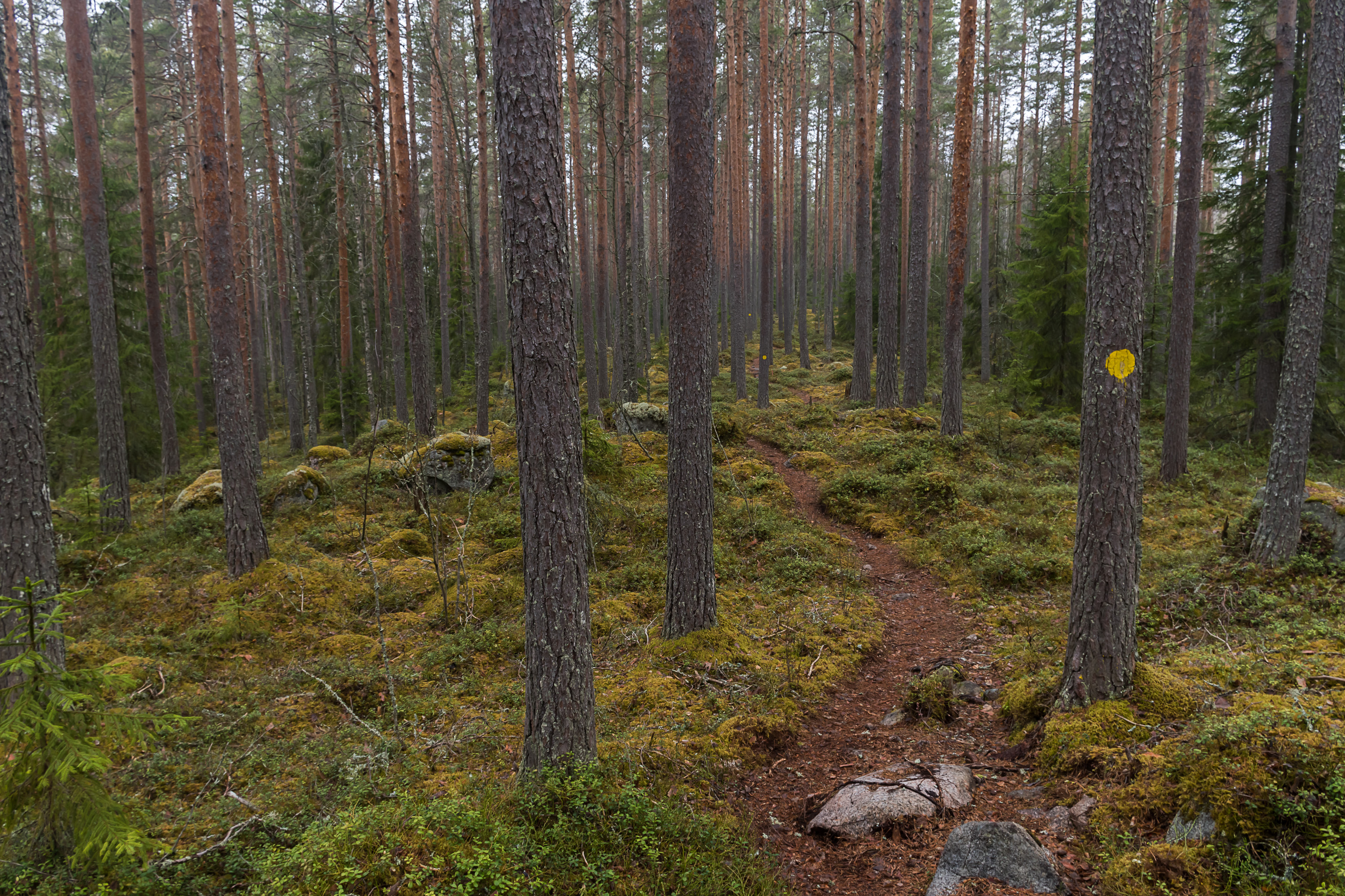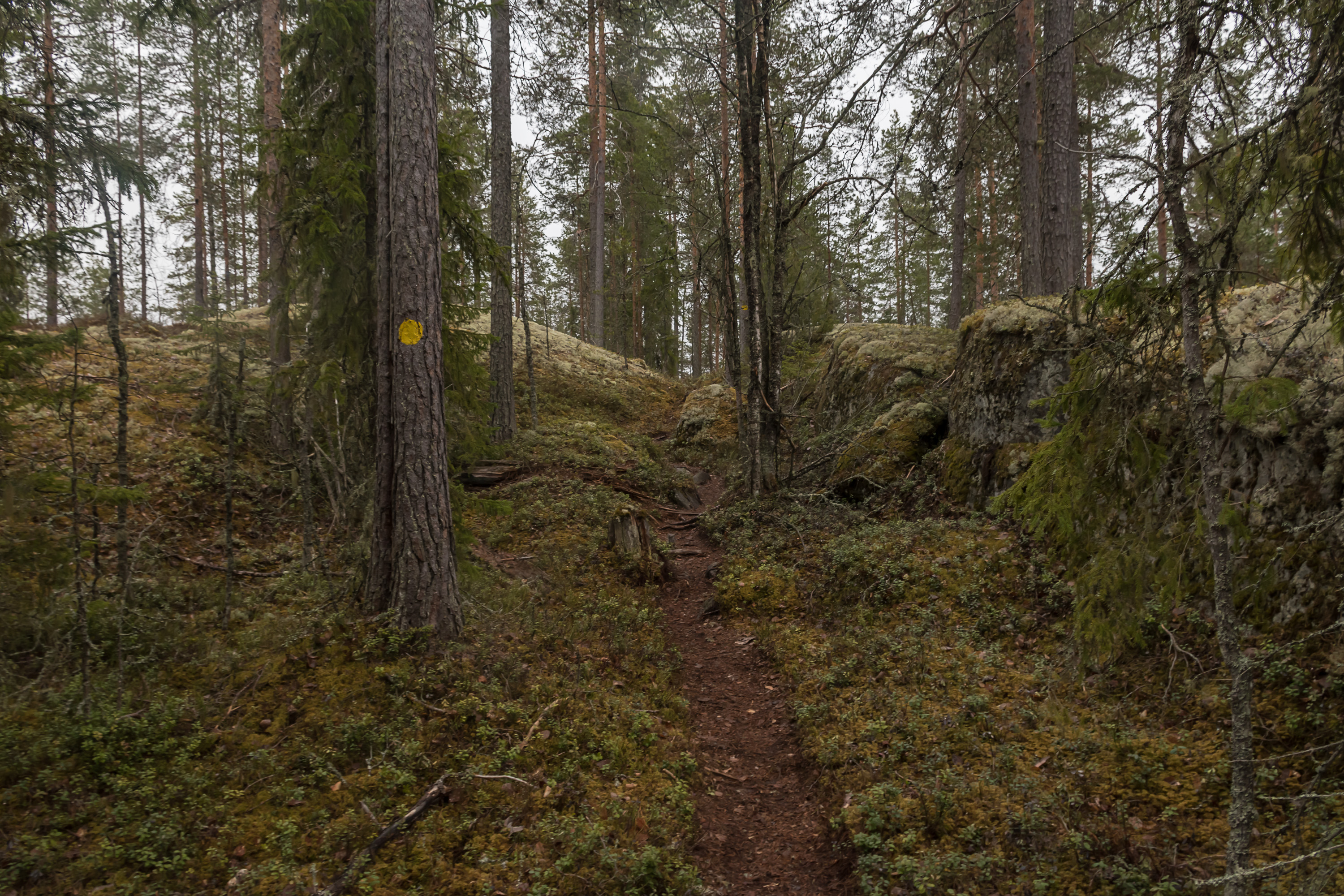 3. Тропа до Вуори-Калайя. Все тропы в этом национальном парке обозначены одной и той же круглой желтой отметкой на деревьях.