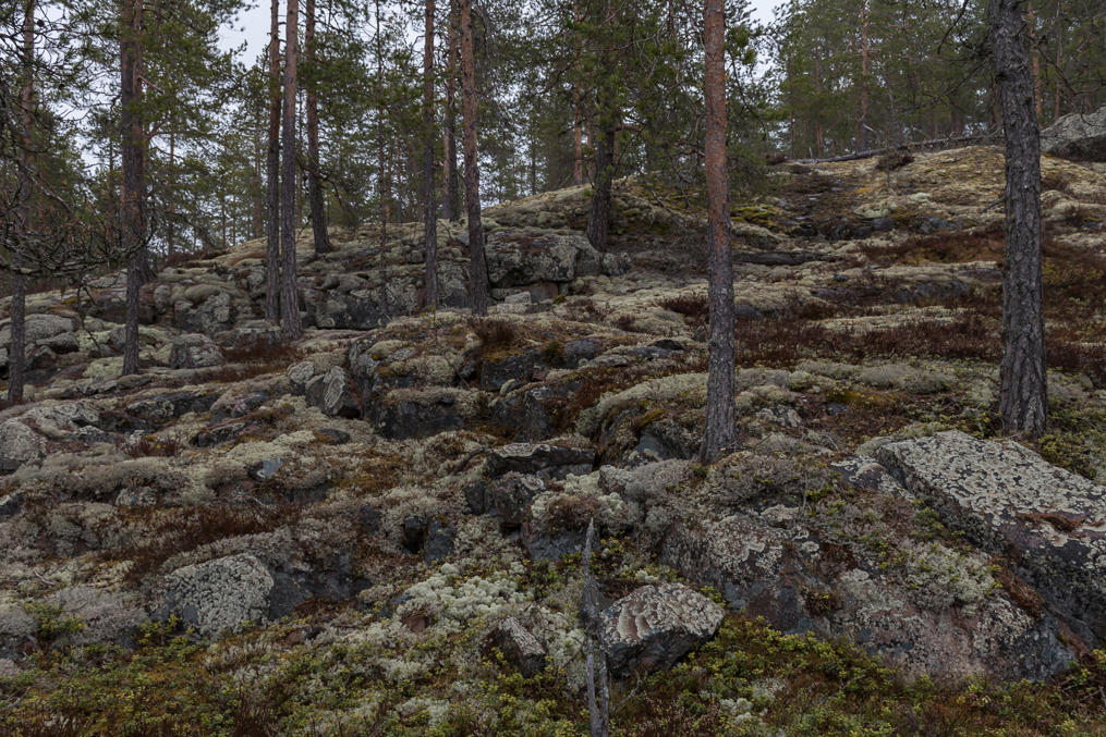 19. Дальше мы временно покидаем берег озера, чтобы забраться на Лоуккувуори (Loukkuvuori, фин. Ловушечная гора) в первый раз. Здесь тропа на самом деле заходит выше, чем потом во второй раз с другого края, но особых видов с этого места нет.
