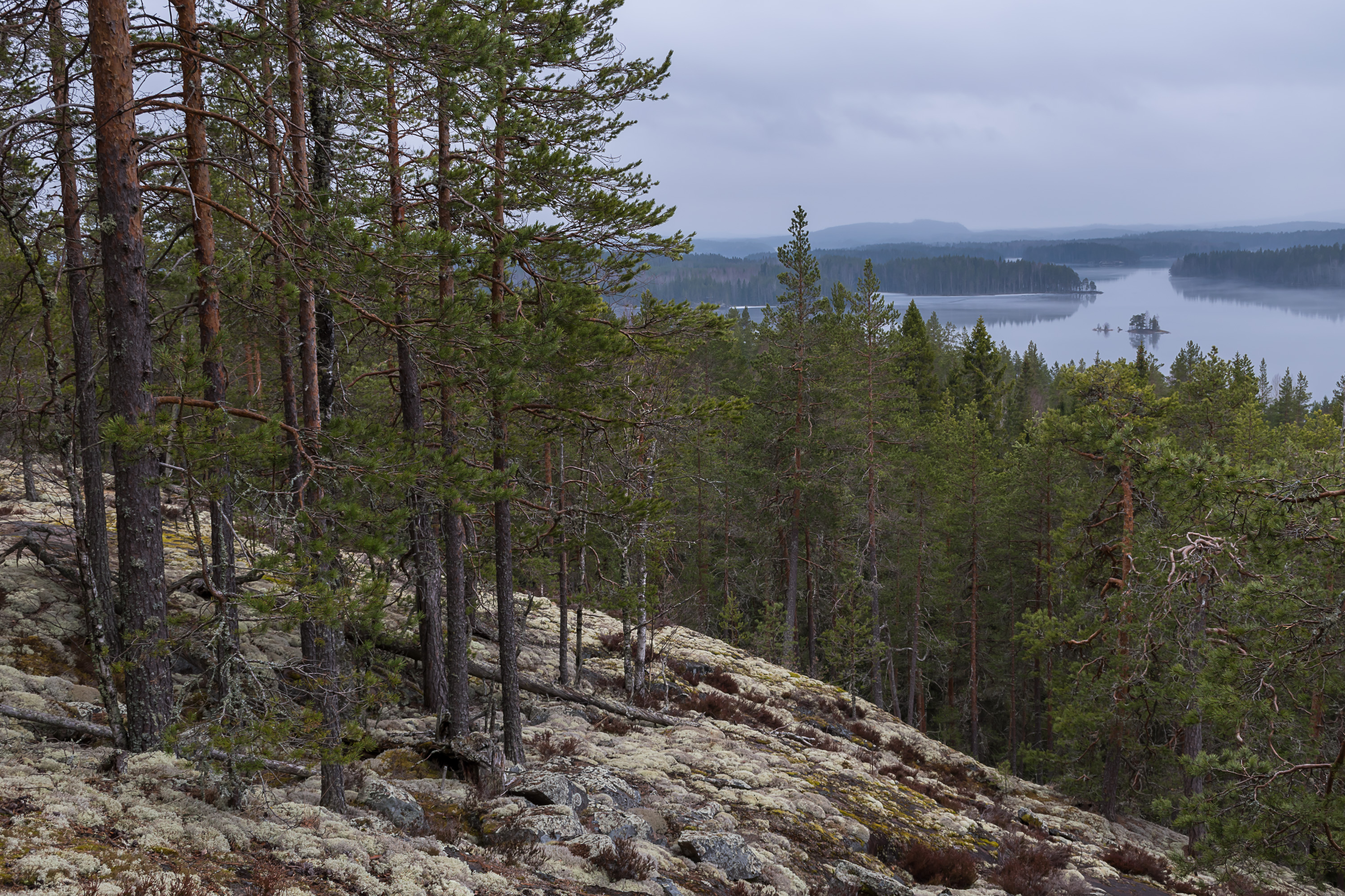 Этот национальный парк прекрасен тем, что он относительно велик, и здесь можно устроить длинный поход на целый день (не более, правда; дольше одного дня здесь ходить будет особо некуда), а его местность довольно разнообразна и он включает в себя много красивых видов, включая как длинные участки троп вдоль берега озера, с видами на прибрежные скалы и открытые просторы Конневеси, так и подъемы на довольно крутые холмы, с которых в нескольких местах тоже открывается прекрасный обзор. Мне он напомнил национальный парк Реповеси (Repovesi, фин. Лисьи воды), ближе к Коуволе на юго-востоке страны (туристам из Питера он может быть знаком; Реповеси расположен относительно недалеко от российской границы); в нем тоже есть длинные тропы, рельеф и много отличных озерных видов. Южное Конневеси, однако, выглядит более диким. Хотя до настоящей дикой местности, до Лапландии, отсюда еще сотни и сотни километров, эти земли все же заметно больше напоминают, как внутренняя часть Финляндии должна была выглядеть раньше, до того, как люди ее заселили и все испортили.