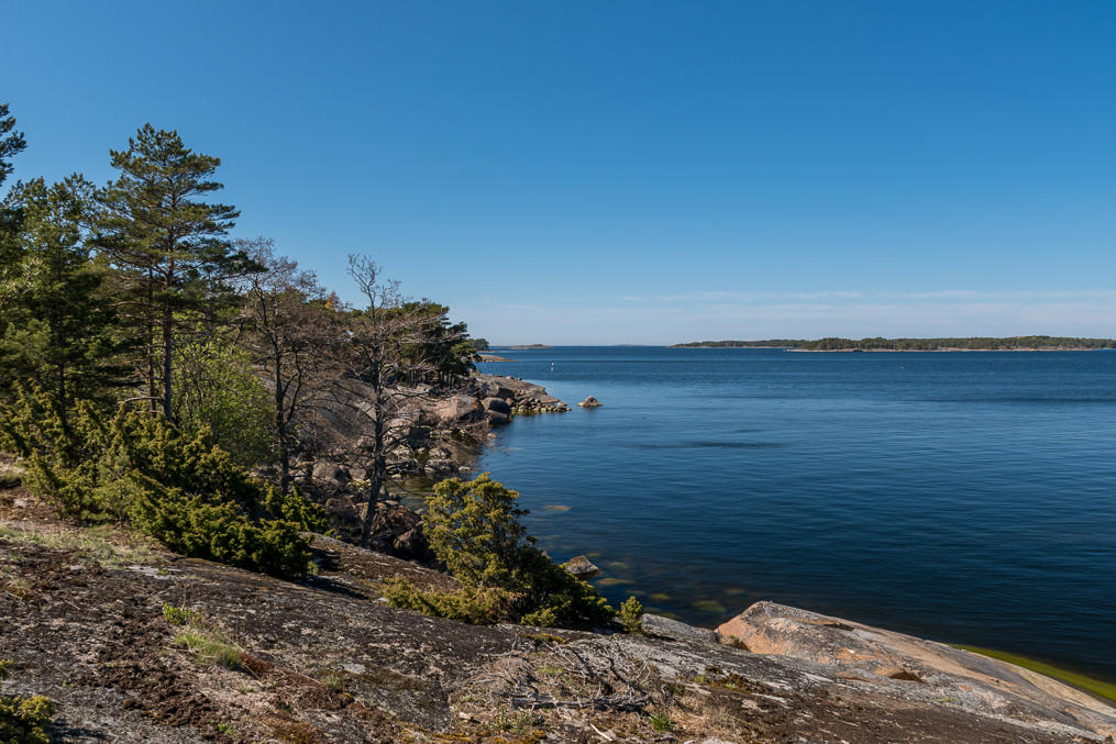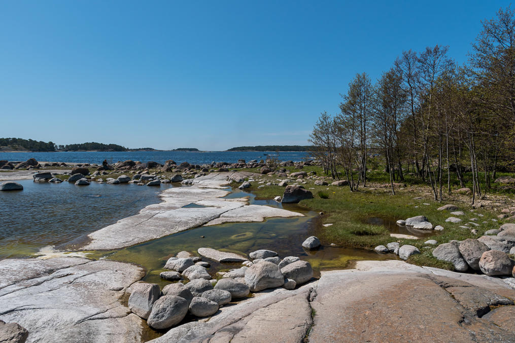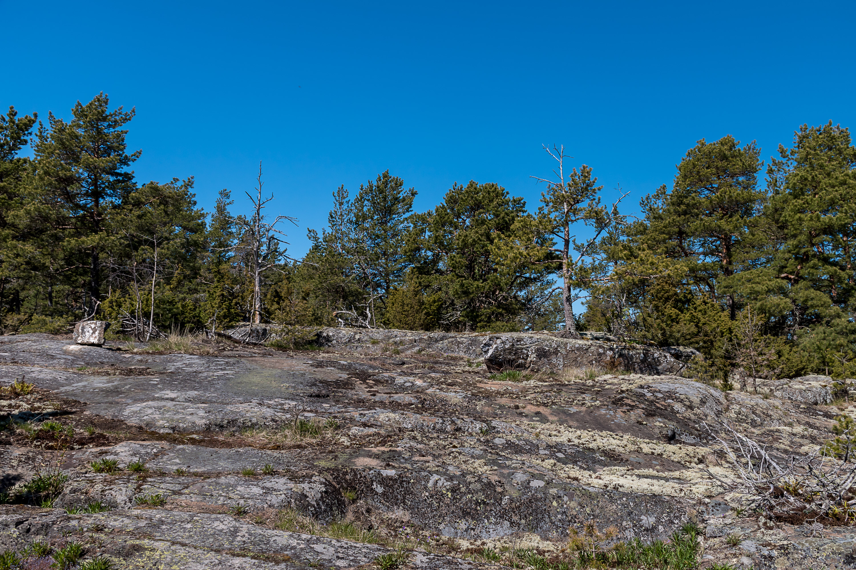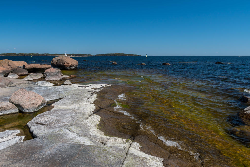 36. Самый красивый берег Хаапасаари, на мой взгляд, северный, крутой и скалистый. Я посидел здесь, перекусил прихваченной с собой едой и полюбовался на море. Рядом шмыгнул в кусты заяц, я не успел сфотографировать. Заяц вызвал у меня много вопросов. Хаапасаари достаточно велик, чтобы поддерживать собственную заячью популяцию (без хищников тут, конечно, им раздолье), или это просто одинокий заяц, который прибежал сюда по льду зимой и не может выбраться? Надеюсь, что не второй вариант. Да в принципе и зачем бы зайцу 25 км по льду бежать на остров посреди моря. Но опять же, если здесь есть своя заячья популяция, это все равно означает, что какие-то зайцы когда-то именно это и сделали...