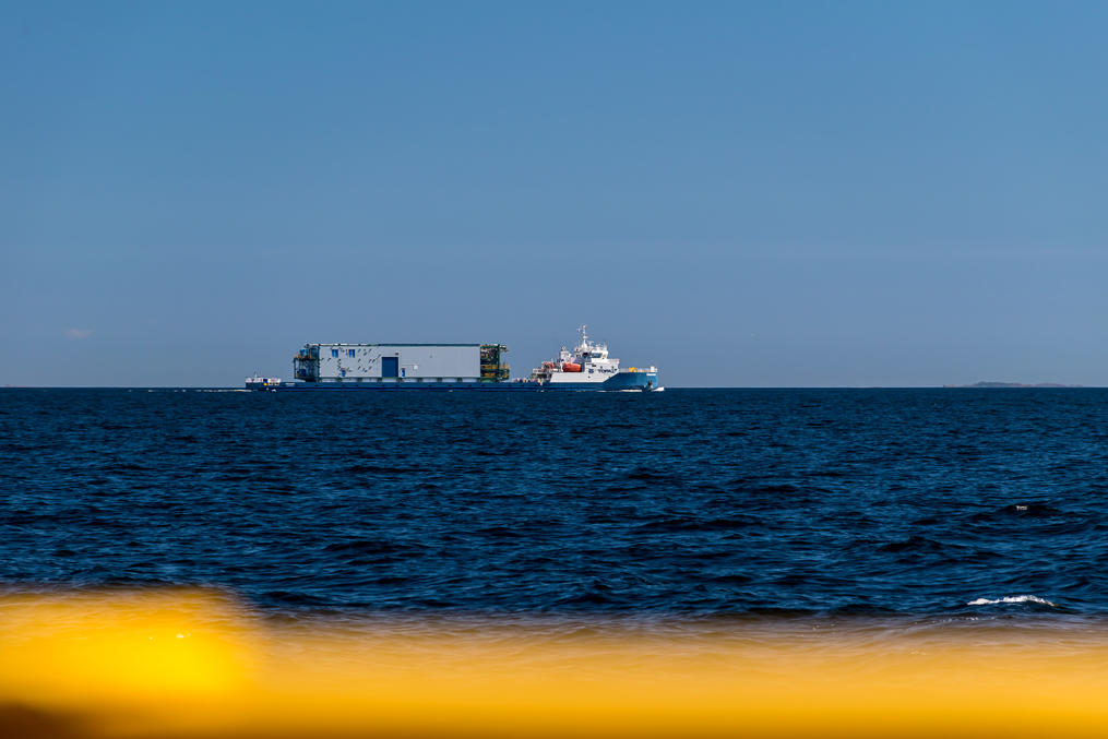 14. Мы выходим довольно далеко в Финский залив, и в такой поездке сложно не встретить хотя бы одно судно, направляющееся в Санкт-Петербург или из него. Это "Топаз-Руза", к примеру — так называемое судно для транспортировки модулей (module carrier vessel), предназначенное для перевозок больших заранее собранных конструкций прямо на палубе. Это одно из 17 судов проекта VARD 9 21, заказанных российской компанией для перевозки таких грузов через внутренние водные пути России (Волго-Балтийский водный путь и вся Волга) в Каспийское море, на стройку инфраструктуры для огромного нефтяного месторождения в Казахстане, на восточном берегу Каспия. Исполинская там, должно быть, стройка, если столько судов для нее нужно.