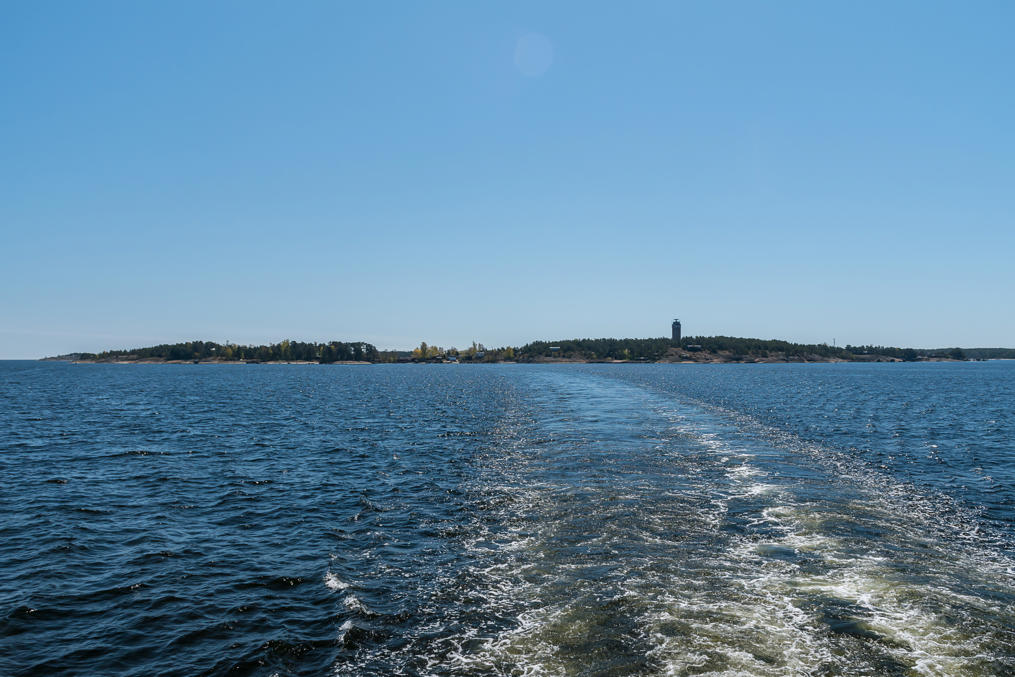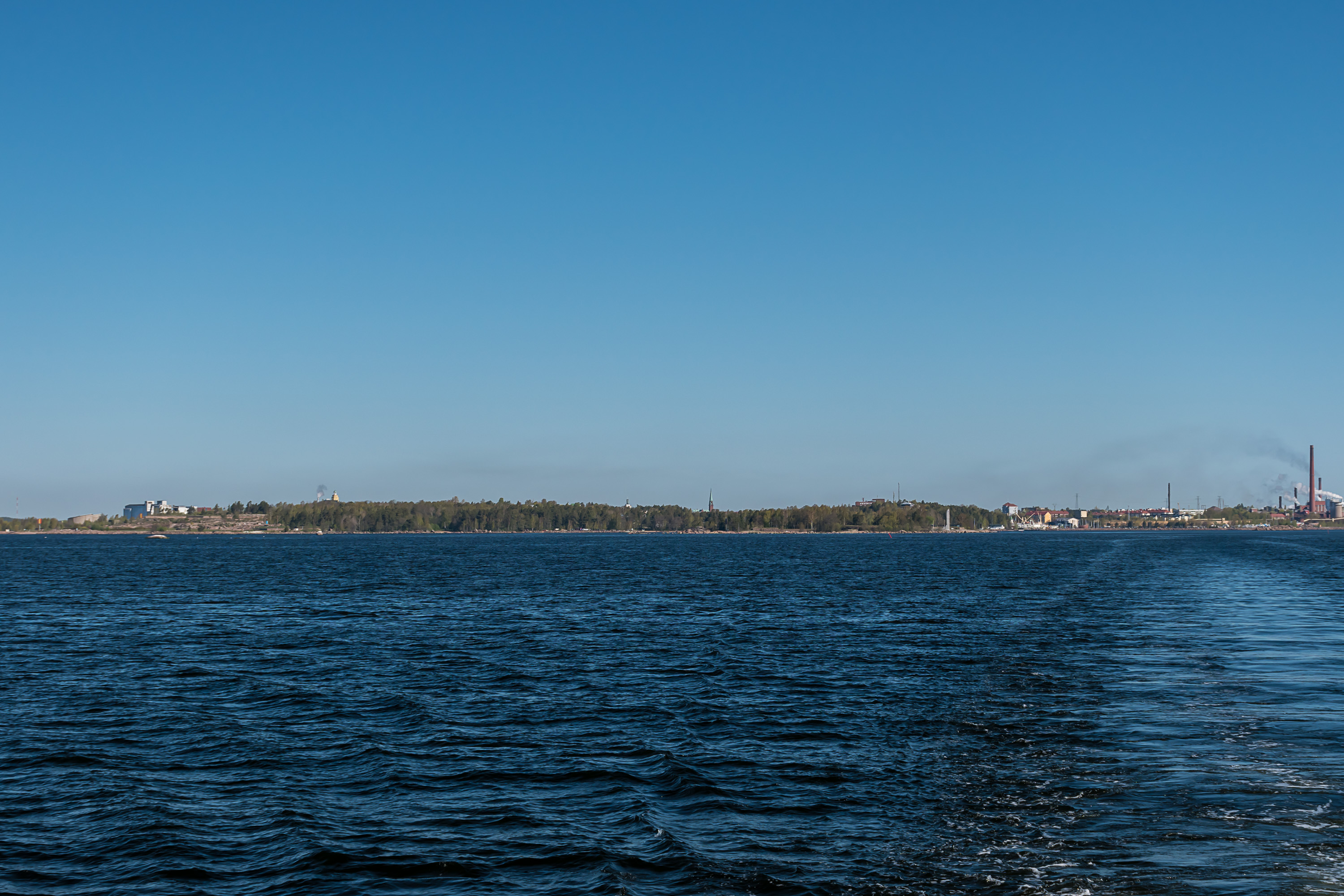 7. Теплоход идет не очень быстро, но Коткансаари, остров, на котором находится центр Котки, быстро остается позади. Хотя это один из самых морских городов Финляндии, к открытому морскому берегу застройка тут не подходит. Низкие стены слева — руины роченсальмского форта Екатерина, одного из трех русских фортов и единственного, доступного сейчас по суше. Рядом с ним в последнее десятилетие разбит прекрасный парк на мест старой нефтяной гавани. Рядом — лесопарк и остров Вариссаари, а правее — гавань Сапокка и кое-какая коткинская промышленность.