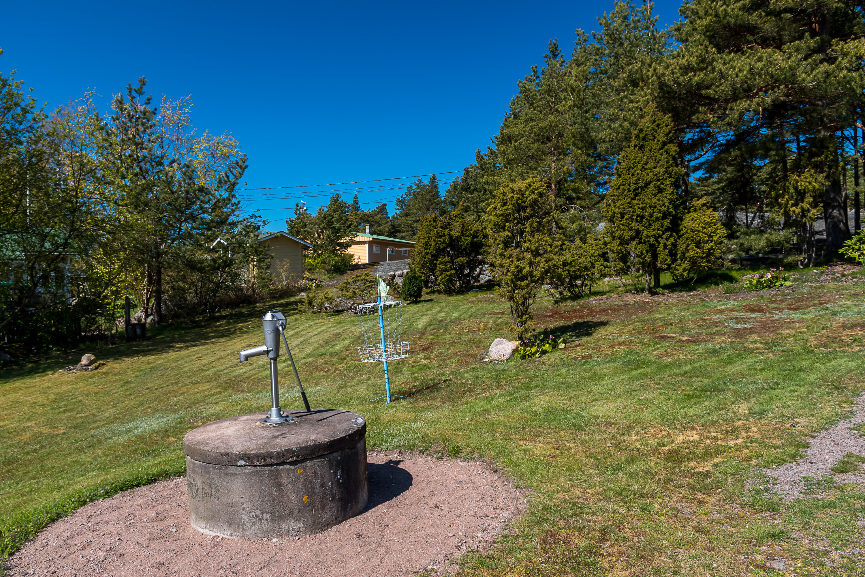 35. В этом сквере есть колодец и корзина для диск-гольфа, потому что ну куда ж без корзины для диск-гольфа. (Диск-гольф в Финляндии как-то необычно популярен, что меня всегда несколько забавит.)