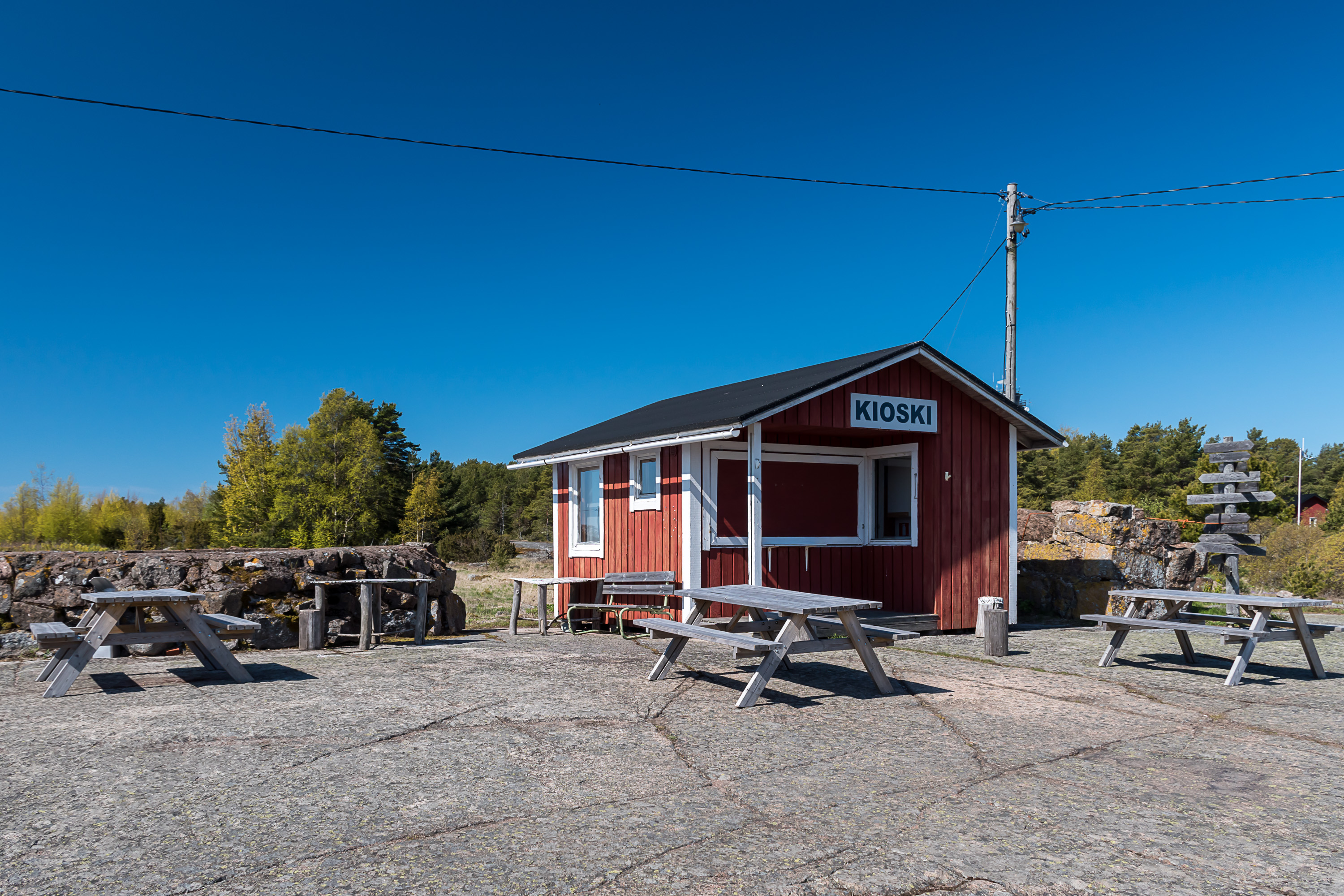 40. Возвращаемся к центру острова. Это хаапасаарский продуктовый магазин. Кооперативный магазин непрерывно действует c 1907 года — наверняка островитяне им очень гордятся. Он открыт и зимой тоже, хотя и не каждый день недели и всего по несколько часов. Лавочки у магазина служат местом, где островитяне могут сидеть и болтать как, собственно, бабки на лавочках; там сидело с десяток человек на протяжении всего моего визита на остров, хотя фотографировать их специально я, конечно, не стал.