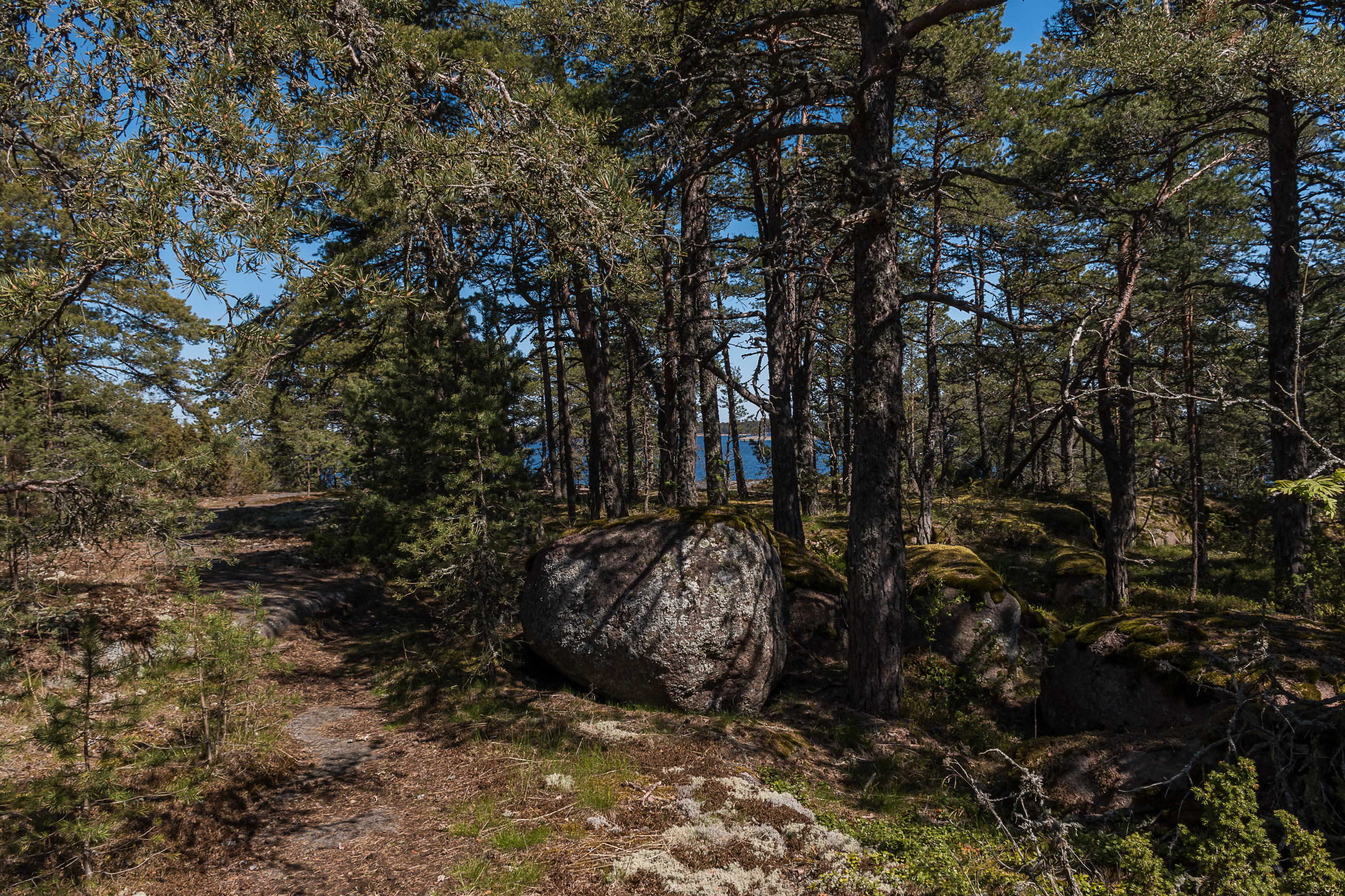60. Эта белая отметка на камне слева, очень вероятно, является старым навигационным знаком. Такие знаки по-фински зовутся kummeli — обычно они представляют собой пирамиды из камней, покрашенных в белый, но иногда бывает и просто белая отметка на прибрежной скале.