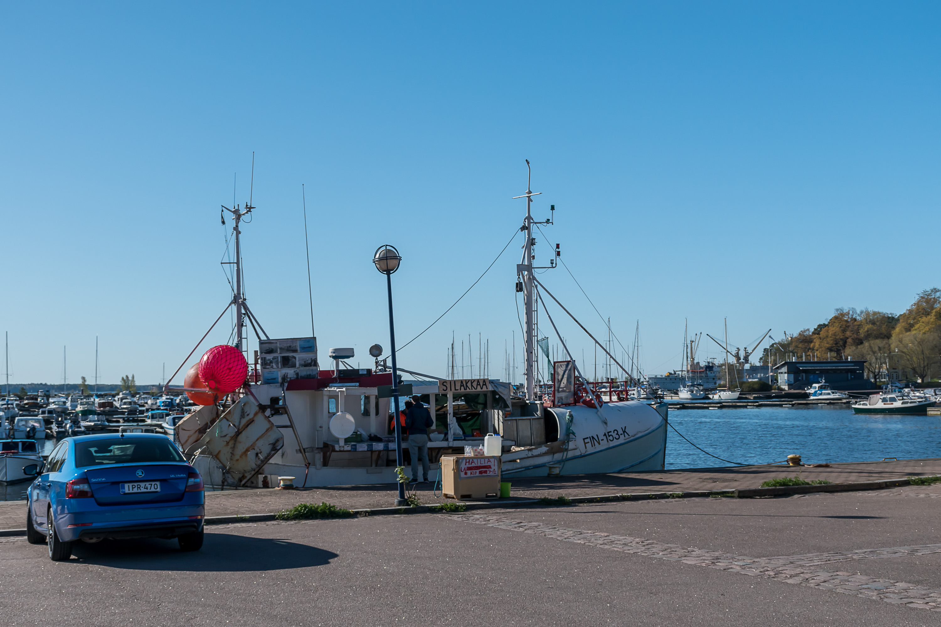 1. Я встал в полвосьмого утра в AirBnB-квартире, где я ночевал в эту поездку, в районе Кархувуори, на западной окраине Котки; до центрах добрых 8 км. Котка не самый большой город, с населением чуть больше 50 тыс., но довольно раскидистый при этом. Я доехал до центра и оставил машину в гавани Сапокка. Тут уже продавали свежую селедочку прямо с рыболовецкого судна, душевно!