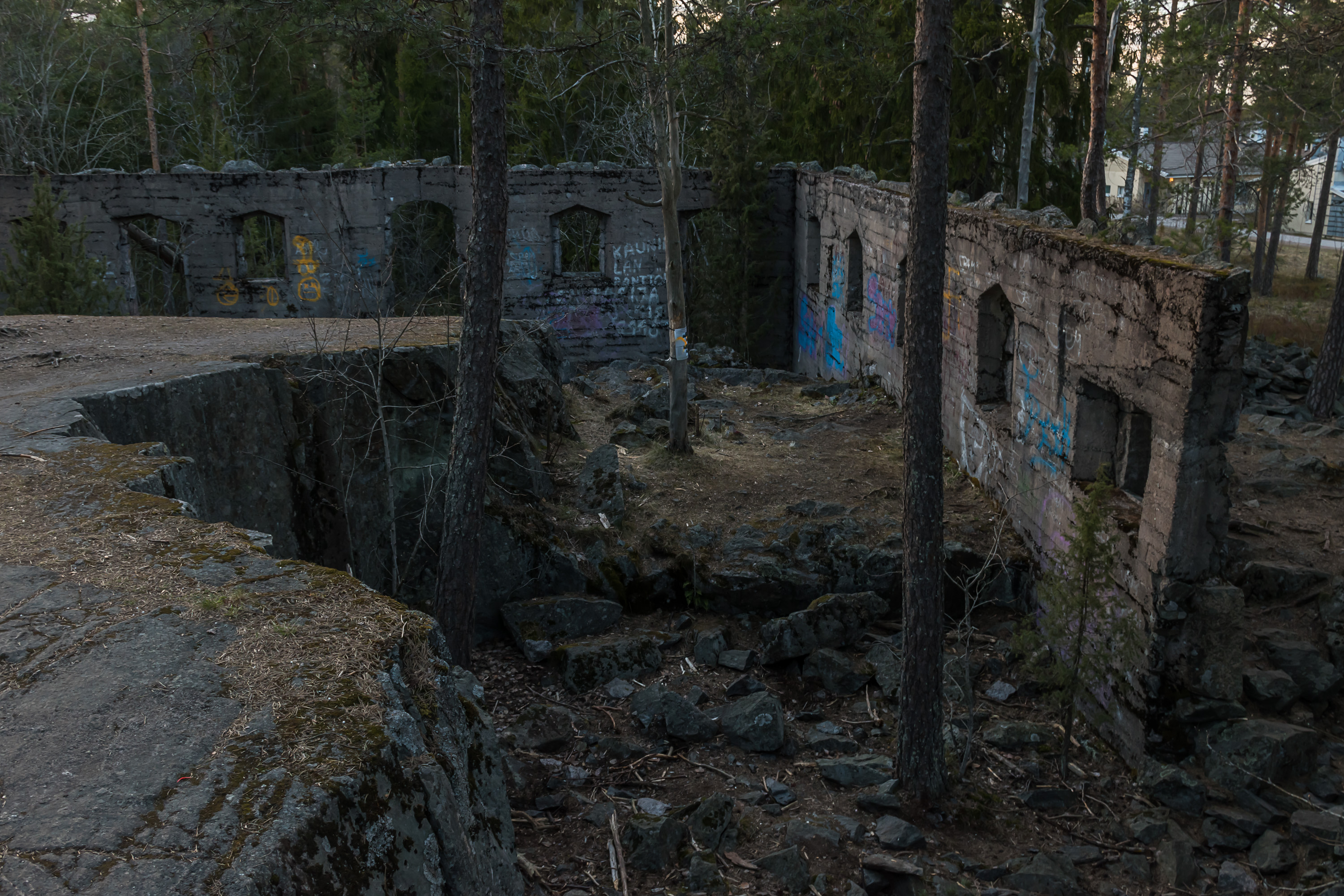 23. Неподалеко от Кауниальской больницы можно найти любопытного вида руины, если знать, где искать. Это на самом деле не разрушенное, а недостроенное здание — так называемые руины Стокманна. Если вы сейчас подумали про знаменитый универмаг "Стокманн", то подумали совершенно верно; Франс Стокманн (Frans Stockmann), сын основателя "Стокманна", купил когда-то участок в Гранкулле и хотел тут построть особняк, наряду с коллегами-богачами. Начал строить в 1918, но, к сожалению, в 1920 он скончался от эпидемии гриппа-испанки, вместе с женой, и особняк осталася недостроенным. Узнать об этом случае именно сейчас, во времена коронавируса, было как-то несколько иронично.