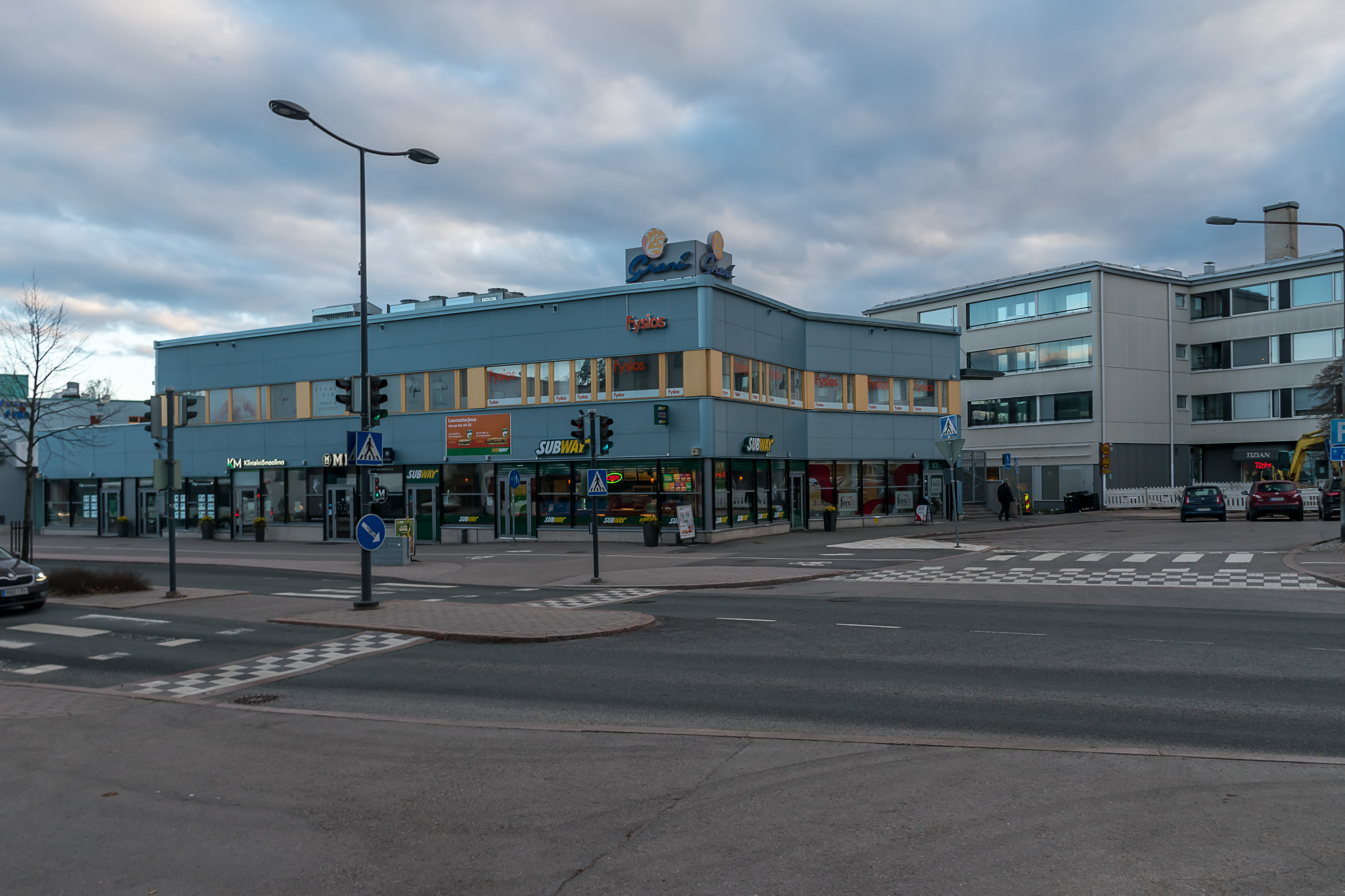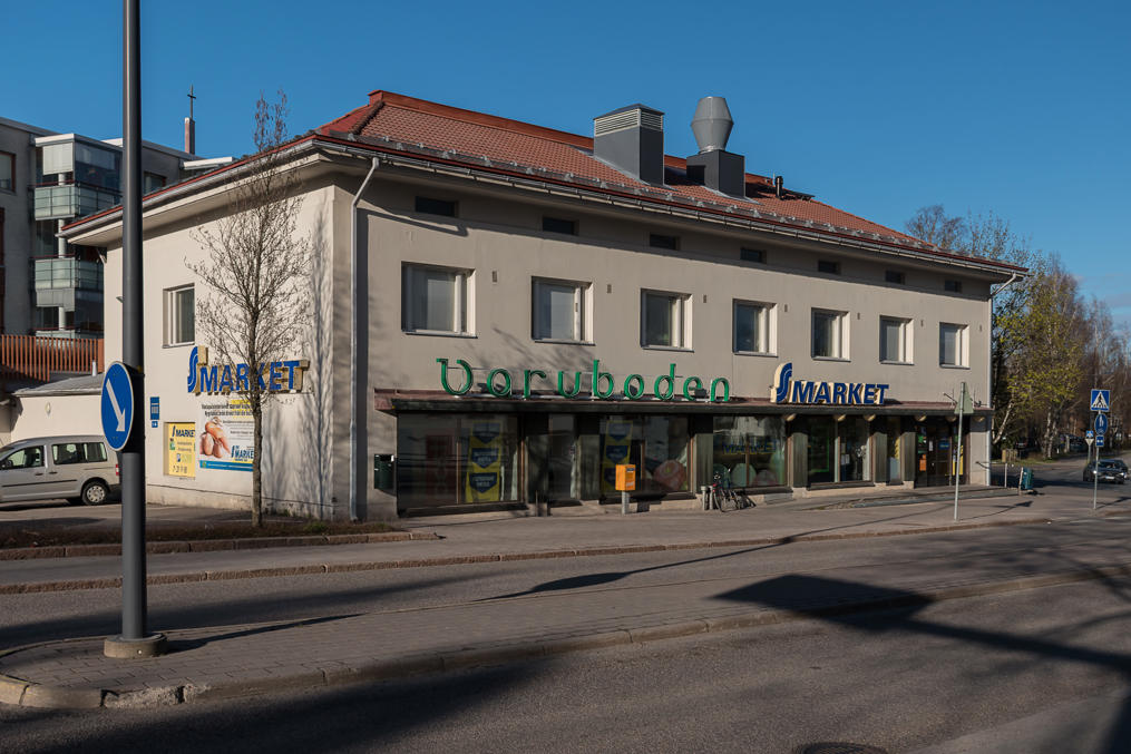 9. На старом магазине осталась вывеска Varuboden. S-группа, к которой относятся сети магазинов S-Market, Prisma, Sale/Alepa и ряд других бизнесов, — на самом деле не какая-то единая сущность; несмотря на общие брэнды, на самом деле это объединение 19 независимых кооперативов. Самым старым кооперативом S-группы был Varuboden, основанный в 1889 году и действовавший в двуязычных/шведоязычных районах Западного Уусимаа. В 2011 он объединился с кооперативом Osla, который действовал, соответственно, в двуязычных/шведоязычных районах Восточного Уусимаа; так что сейчас кооператив зовется Varuboden-Osla (VBO). Остальная часть pk-seutu, а также Центральный Уусимаа относятся к кооперативу HOK-Elanto, так что магазины Varuboden-Osla в Кауниайнене — маленький островок. С относительно недавних пор этому кооперативу также принадлежат магазины на Аландских островах.