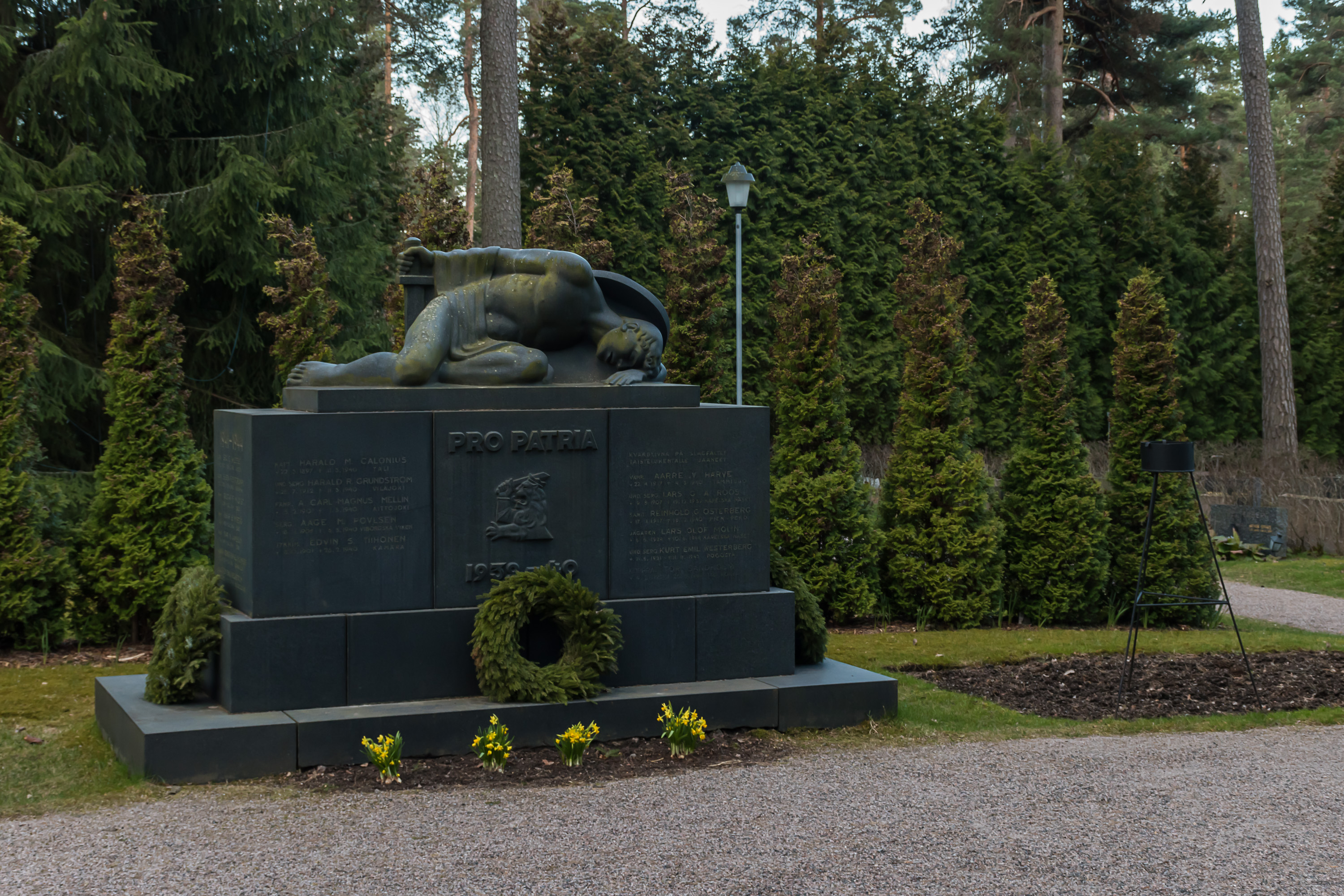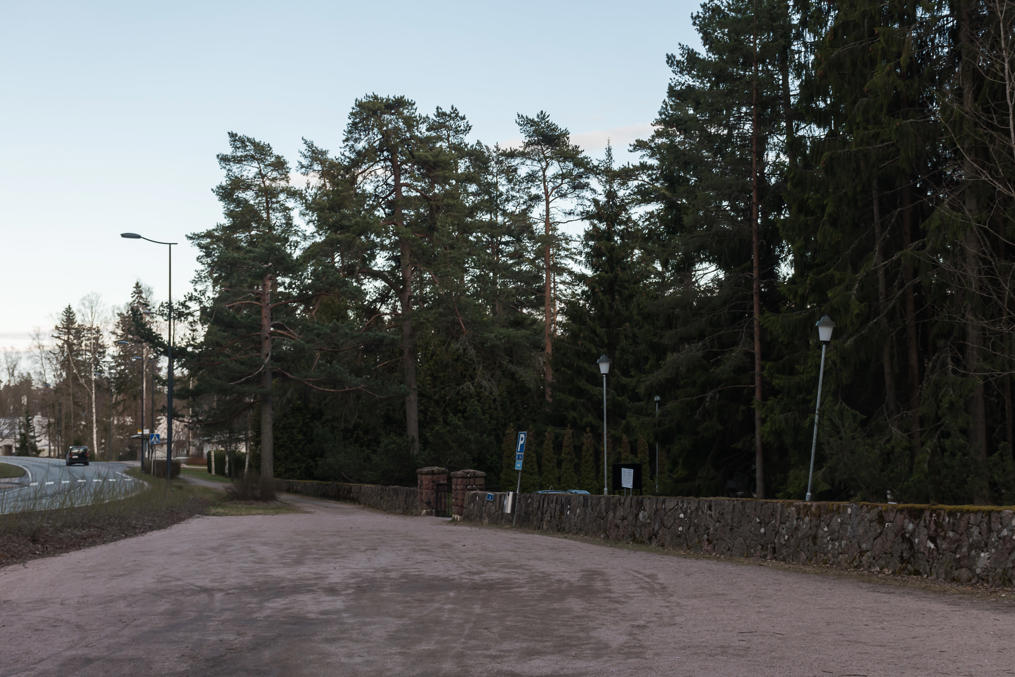 25. Рядом у нас кауниайненское кладбище. Любопытный факт про него: это одно из всего двух муниципальных кладбищ во всей Финляндии (второе в Турку, не знаю, почему). Кладбища в Финляндии традиционно принадлежат церкви и обслуживаются ею. (Это не означает, что нужно быть членом церкви, или хотя бы верующим, чтобы тебя похоронили, но членам церкви это обойдется значительно дешевле.) Но, как мы уже узнали выше, в Кауниайнене не было собственной церкви до 1980-х, поэтому и кладбище здесь стало муниципальным.