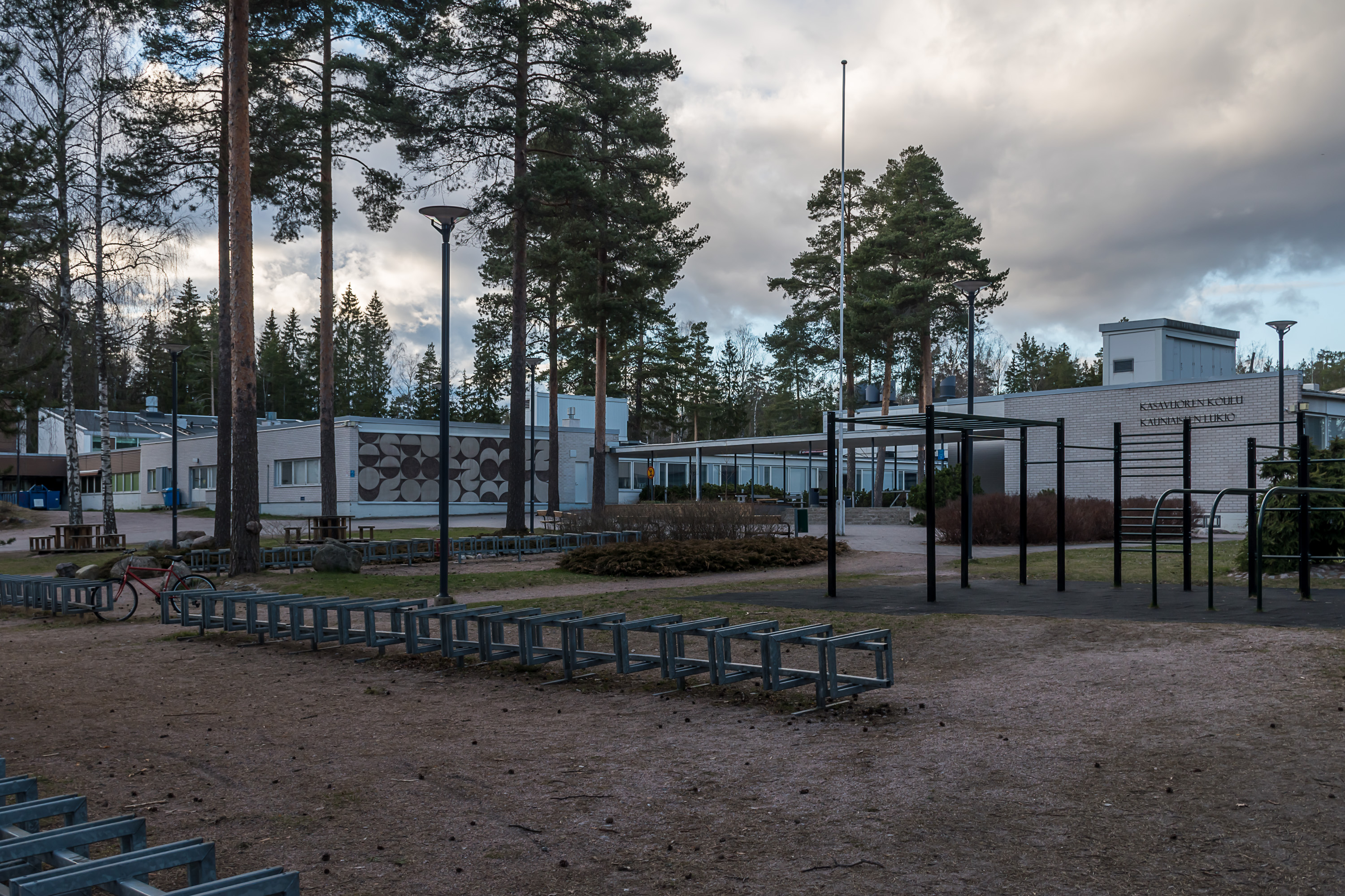 Я живу сейчас в Эспоо довольно близко от Кауниайнена, в Кило, в 4 км и двух остановках на электричке. Хотя я пару раз гулял там и ранее, фото в этом посте сняты все на одной прогулке этой весной, в конце апреля. Я дошел до Кауниайнена пешком от дома, вечером после работы, и это, наверное, единственный случай в моей жизни, когда я могу просто вечером после работы выйти из дома и пешком дойти до другого города и осмотреть его почти целиком. Пропустил я из примечательного разве что холм Касавуори да горнолыжные склоны на другом холме (да, хотите верьте, хотите нет, но в Кауниайнене есть даже целые лыжные склоны).