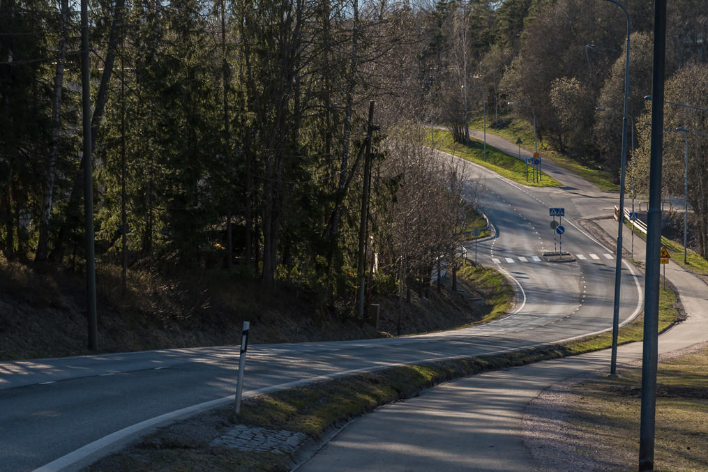 22. Холмистая дорога из Кауниайнена на северо-запад. Совсем рядом на стороне Эспоо находится больница Йорви — центральная больница Эспоо. Но нам туда не надо, так что поворачиваем в другую сторону.