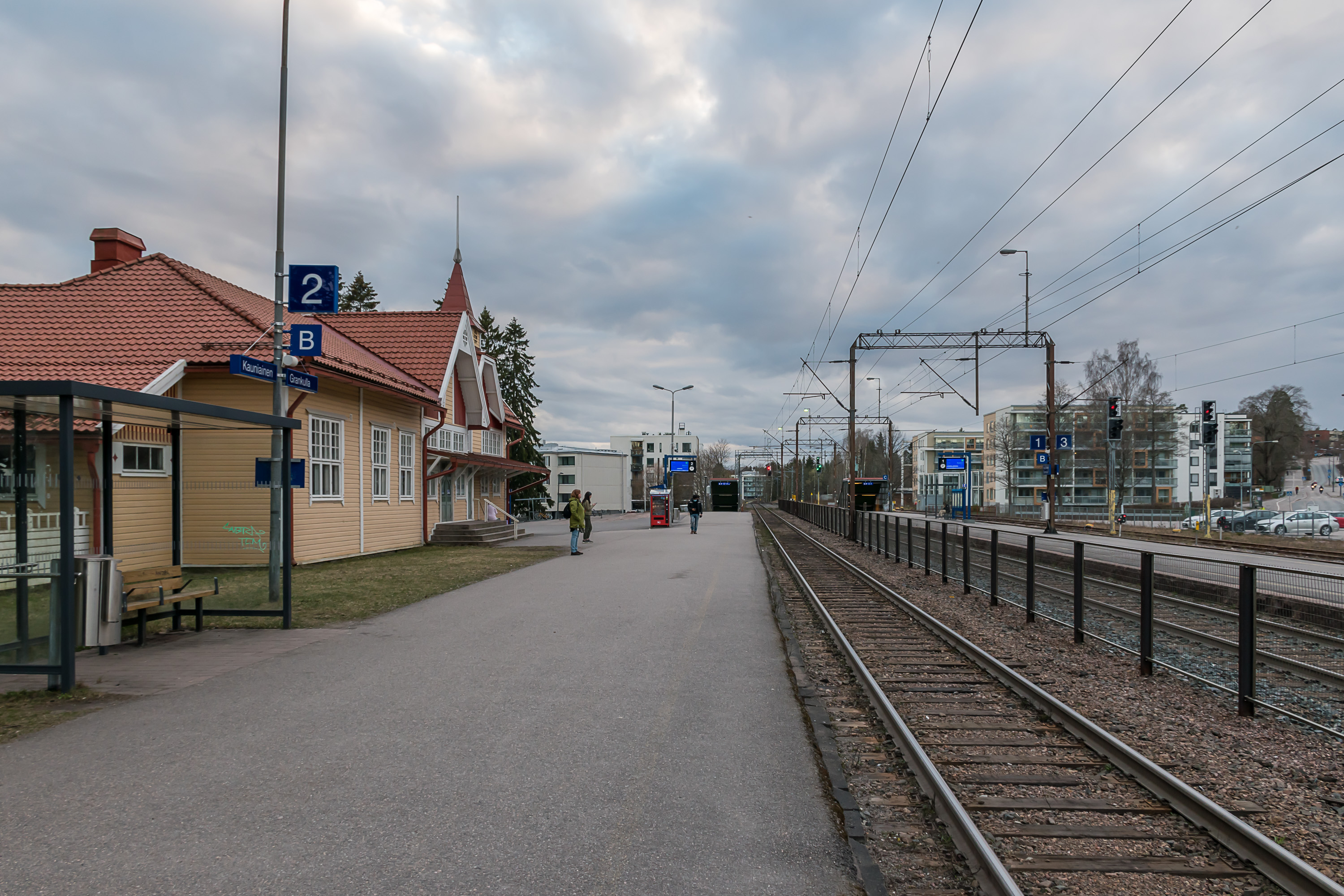Здание вокзала было почти уничтожено пожаром в 2008, но полностью восстановлено в своем оригинальном облике. Однако, настолько я знаю, здание на самом деле сейчас вовсе не используется. На станции останавливаются только электрички (маршрутов E и U), с интервалом 15 мин, так что даже зал ожидания тут особо не нужен. До вокзала Хельсинки электрички идут отсюда 18 минут.