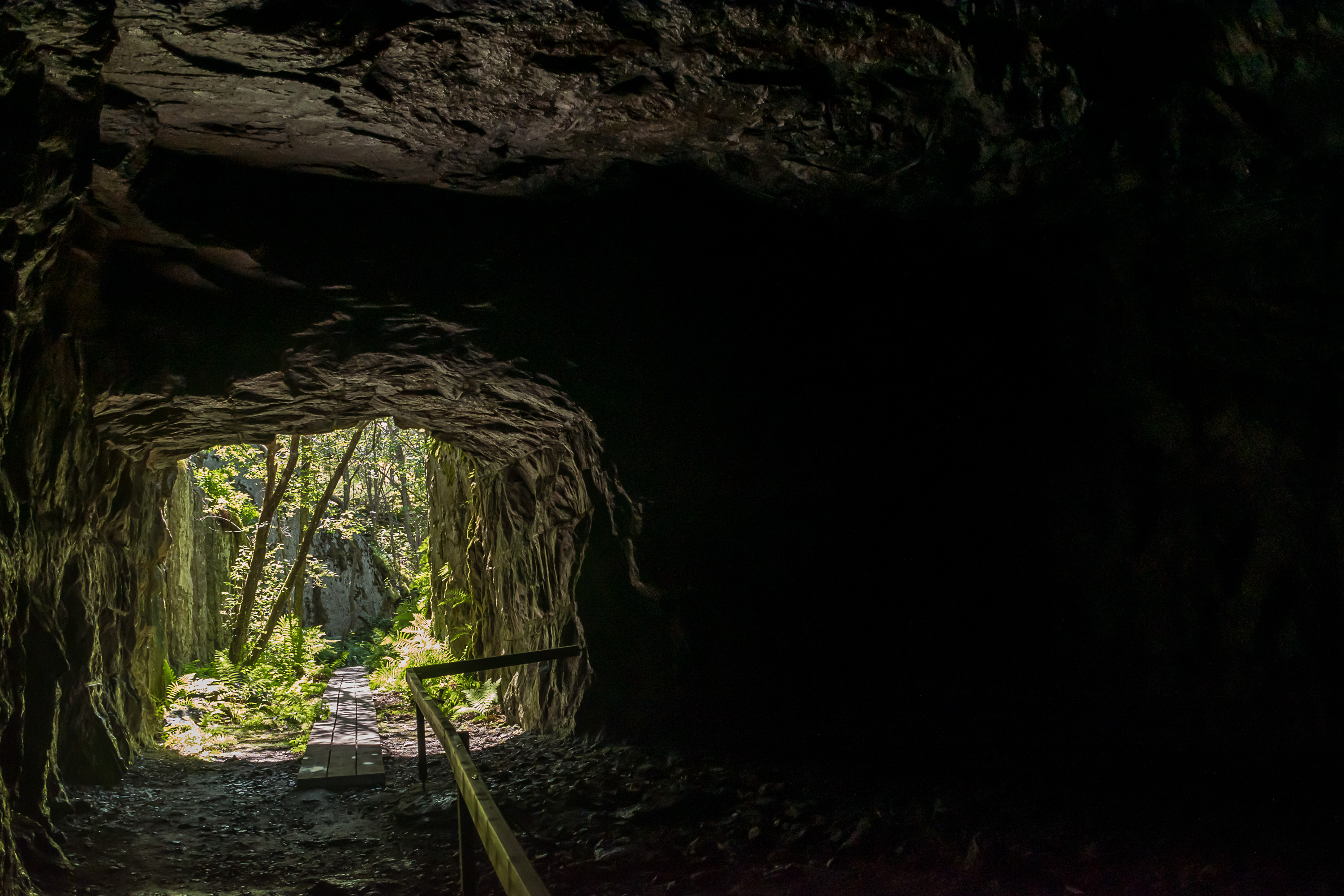 49. Внутри. В 1970-х здесь испытывали какое-то новое средство для пожаротушения, для чего в туннель привезли большое количество горючего материала и подожгли. Но что-то пошло не так, огонь вышел из-под контроля, пострадали люди, и пожар в туннеле горел несколько дней. Я не заметил никаких следов огня, но на момент моей поездки я еще не знал об этой детали, а с фонариком на телефоне все равно мало что разглядишь.