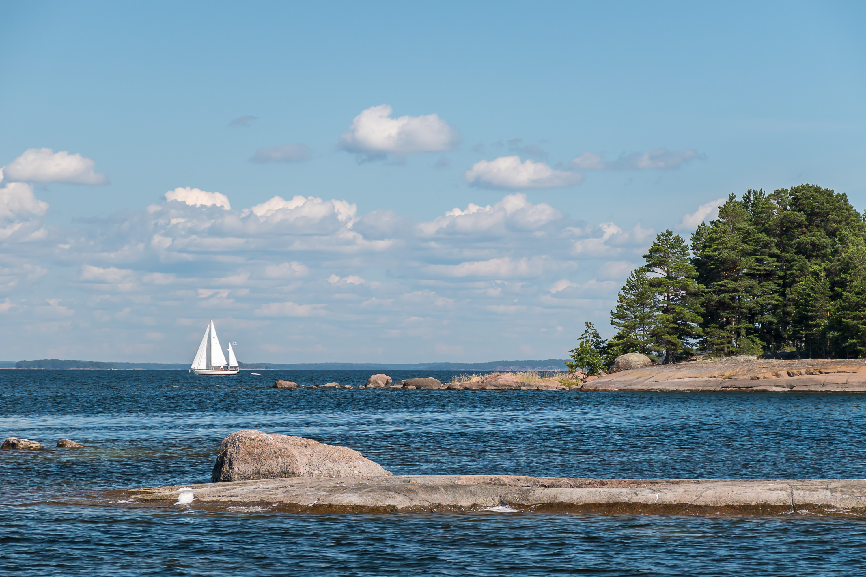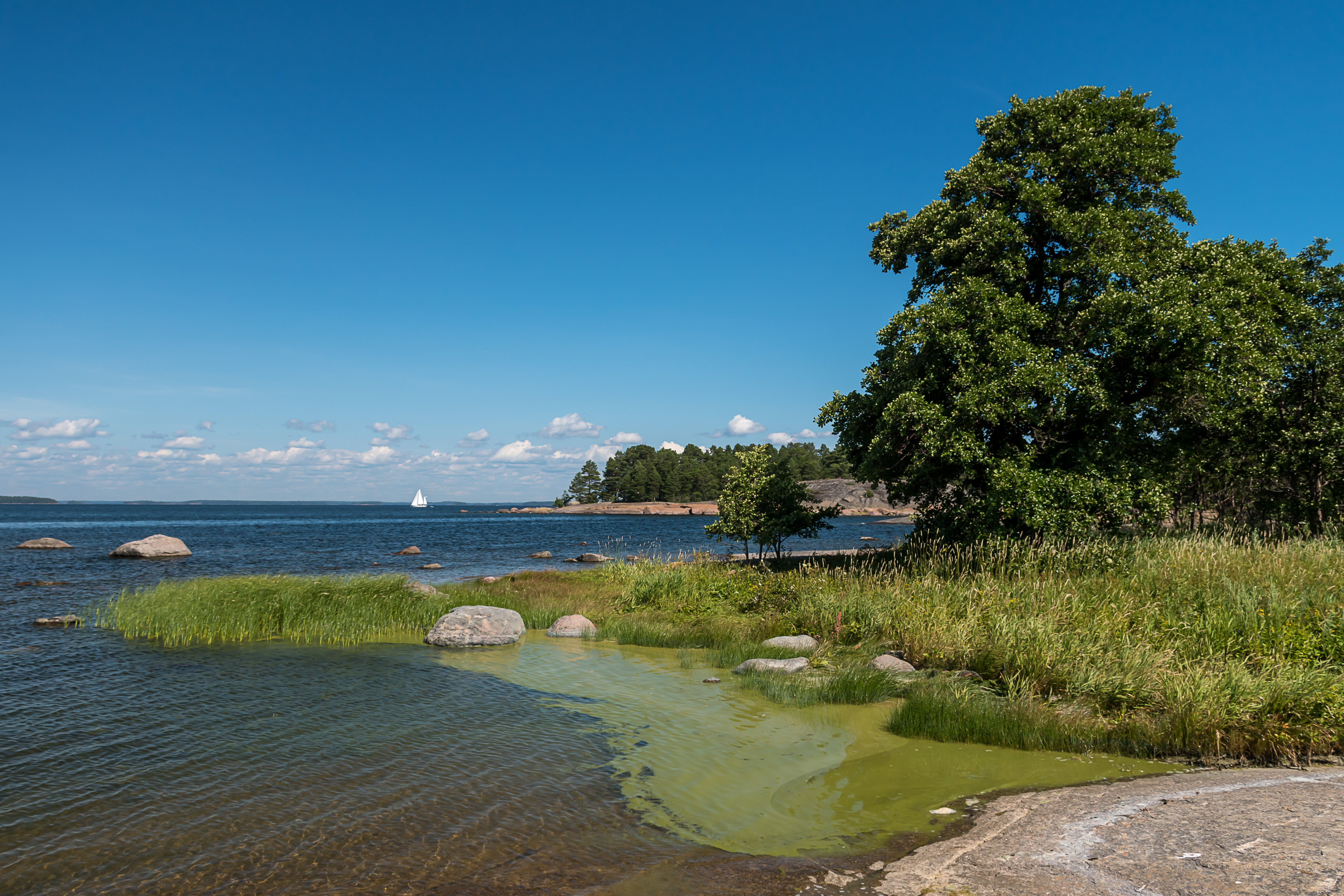 Но даже и на него попасть не так просто. Этот рейсовый теплоход на Улко-Таммио почему-то ходит только по выходным в июле, так что, например, в 2020 всего пять рейсов получается. Раньше теплоход ходил из города Хамина, ближайшего к российской границе прибрежного города, весьма любопытного самого по себе. В этом году, однако, они почему-то переехали в Котку, город чуть западнее и существенно крупнее. Также раньше теплоход останавливался на Таммио (Tammio). Это остров существенно крупнее и ближе к материку, чем Улко-Таммио ("Улко-Таммио" собственно и означает "Внешний Таммио"), и к национальному парку не относится; на Таммио была рыбацкая деревня, но постоянного населения она больше не имеет, используется только как дачи. По крайней мере в 2020 году на Таммио и Улко-Таммио отправляются разные рейсы. Официально из-за коронавируса, чтоб на борту не толпились, хотя на самом деле все равно народа много даже так; в Yle, финских государственных новостях, как раз написали даже на следующий день после моей поездки про то, что посетителей на Улко-Таммио рекордное количество. Раньше остров и национальный парк были довольно малоизвестны (около 17 тыс. посетителей в год), но этим летом внутренний туризм бьет рекорды, опять же, из-за коронавируса — с поездками за границу до сих пор непросто. Я считаю, это очень хорошо; меня всегда раздражало, что большинство финнов свою родину плохо знают и мало ценят.