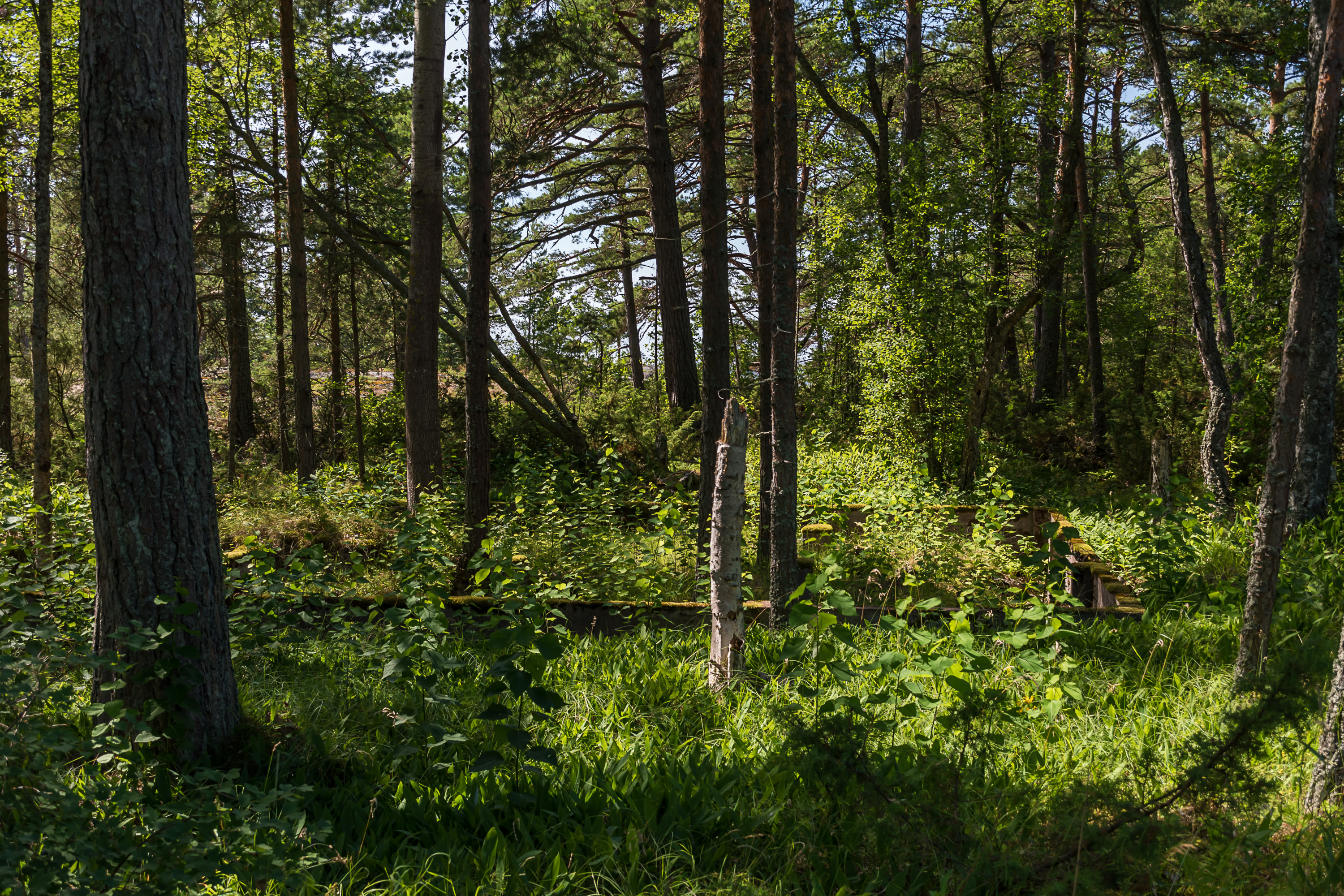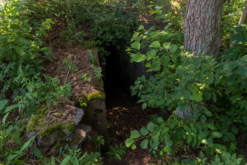20. Рядом с пушкой есть несколько маленьких бункеров (я увидел один, но вроде как должно быть три) для хранения боеприпасов. Крупных бетонных бункеров для личного состава, характерных для крупных островов-крепостей типа Эрё, на Улко-Таммио почти нет.