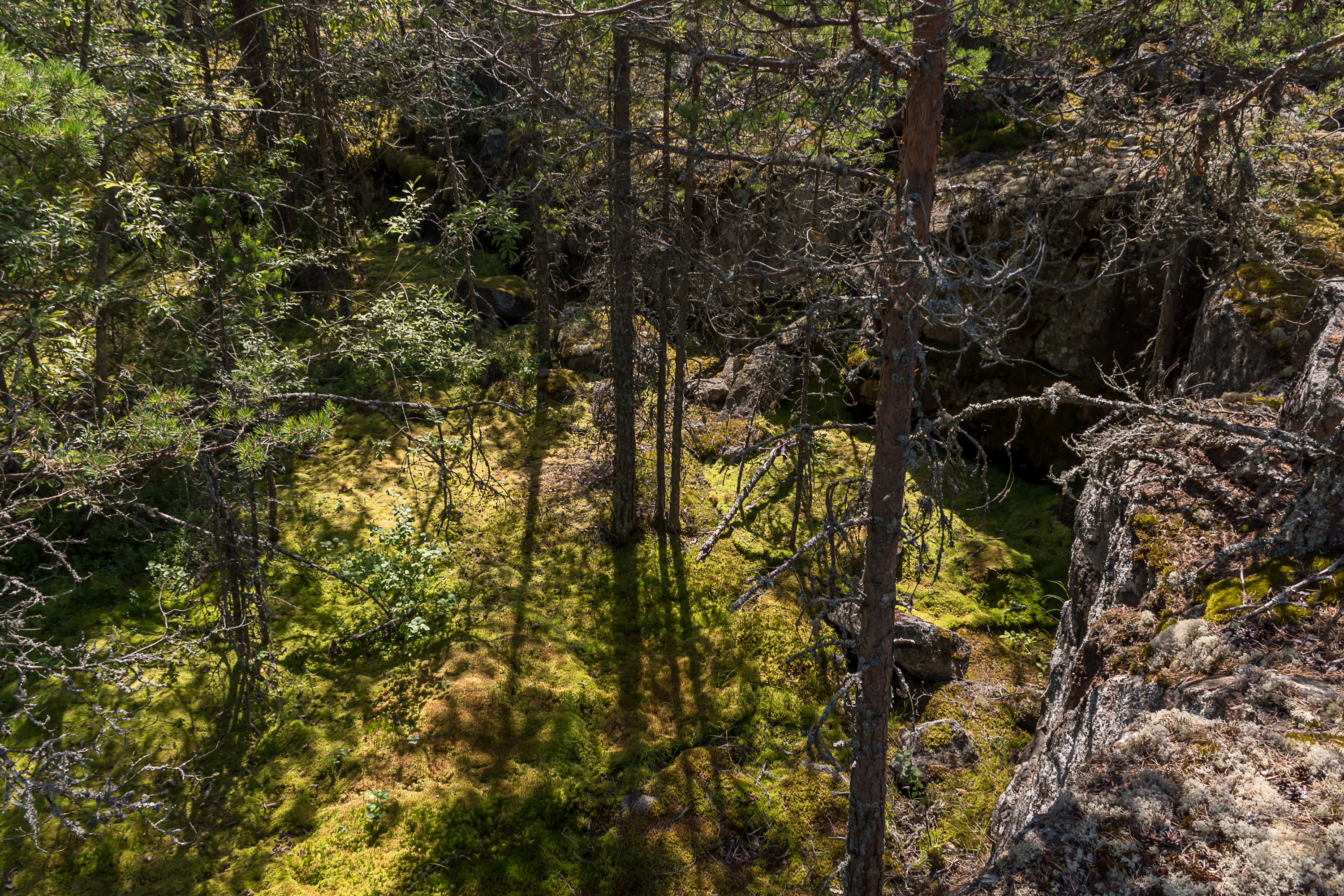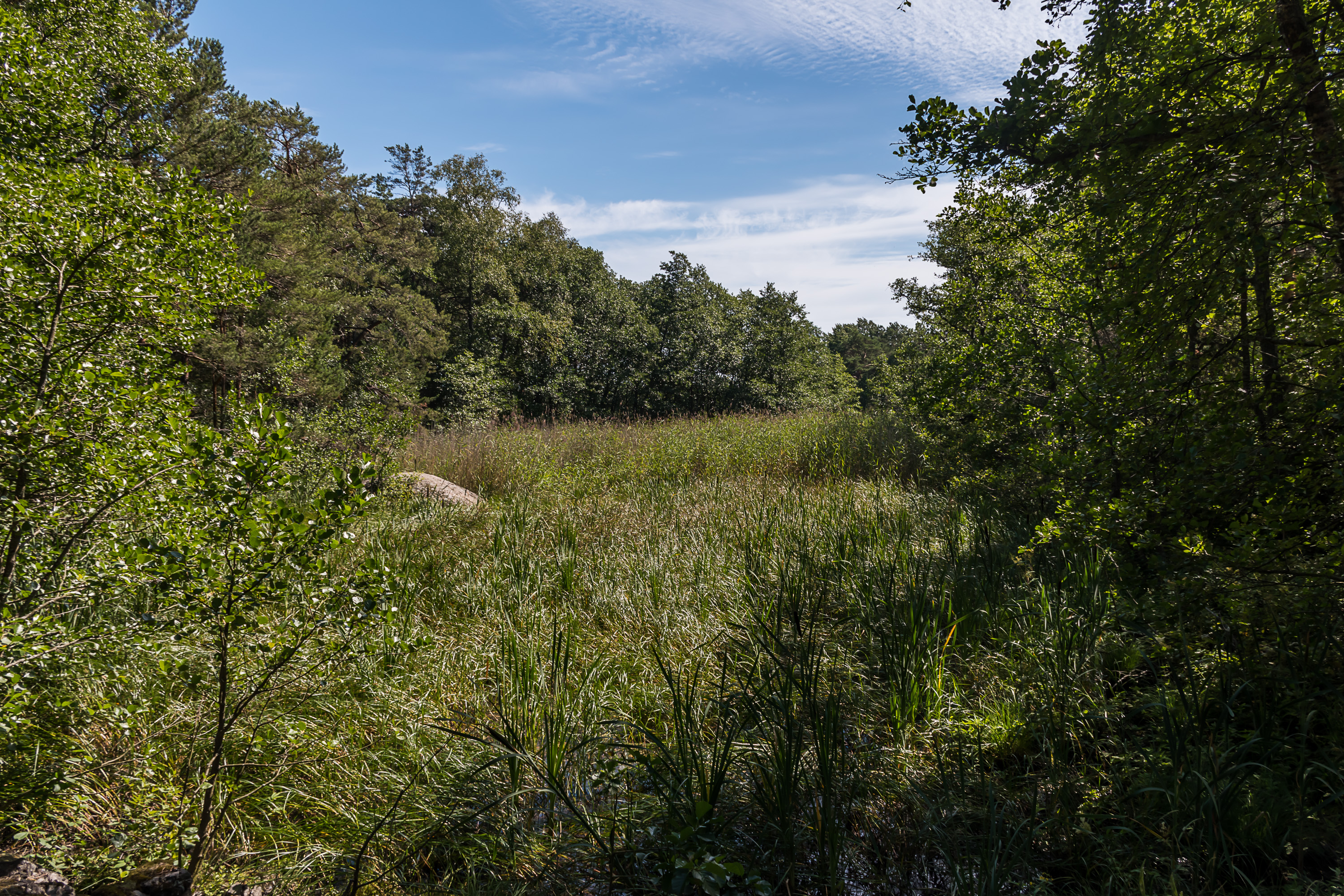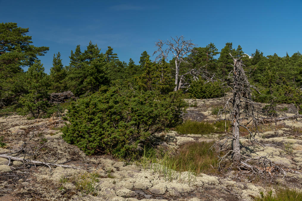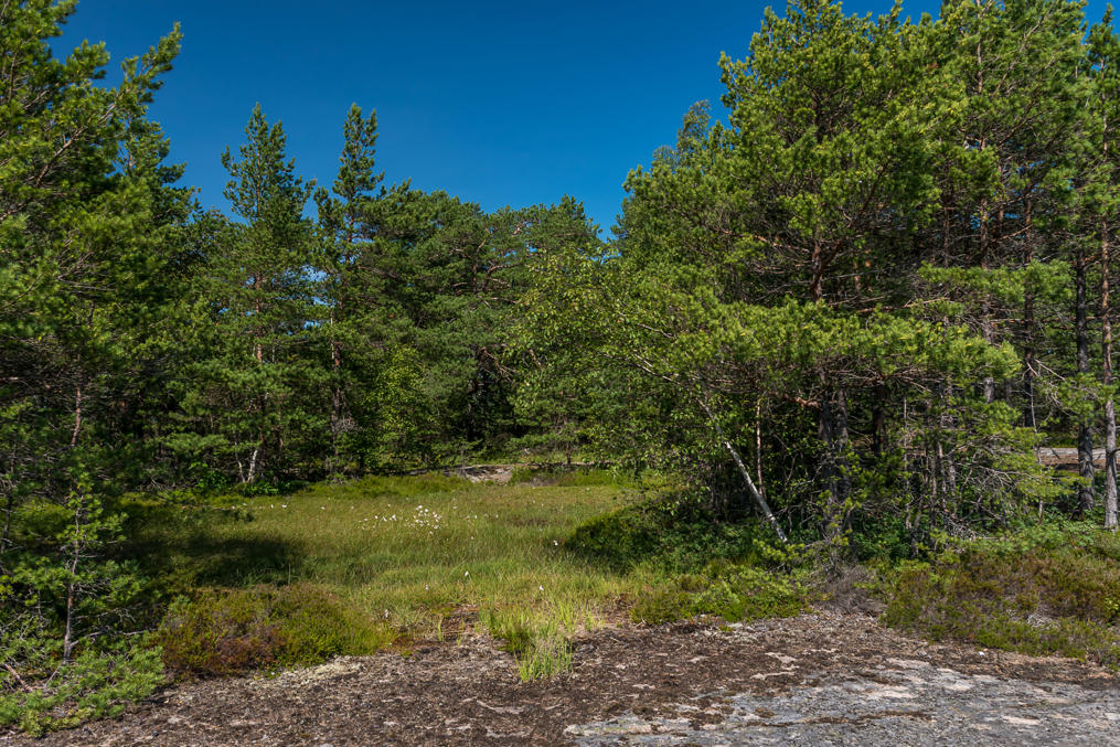 16. Не считая берегов, остров почти полностью покрыт лесом, в основном, как и можно ожидать, сухим светлым сосновым бором, растущим почти на голой скале. Но есть и густые лиственные рощи, и даже несколько крошечных болот, таких, как это. Водоемы или ручьи отсутствуют.