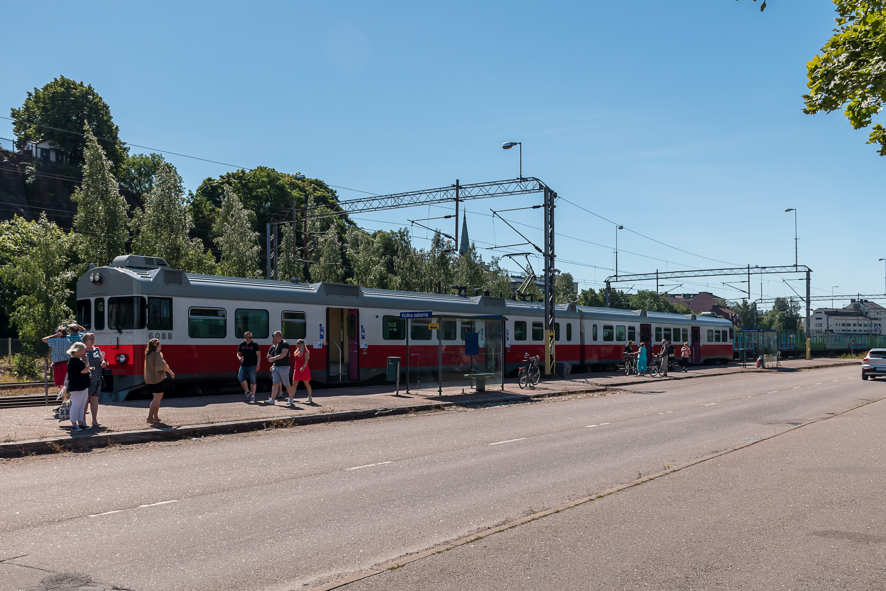 На фото поезд Sm2 только что прибыл на станцию Котка-Порт (Kotka satama), конечную. В Котке у поездов целых пять остановок — абсолютный рекорд для Финляндии за пределами хельсинкской городской агломерации. Котка-Пассажирская (Kotka) находится всего в нескольких сотнях метрах до портовой станции.