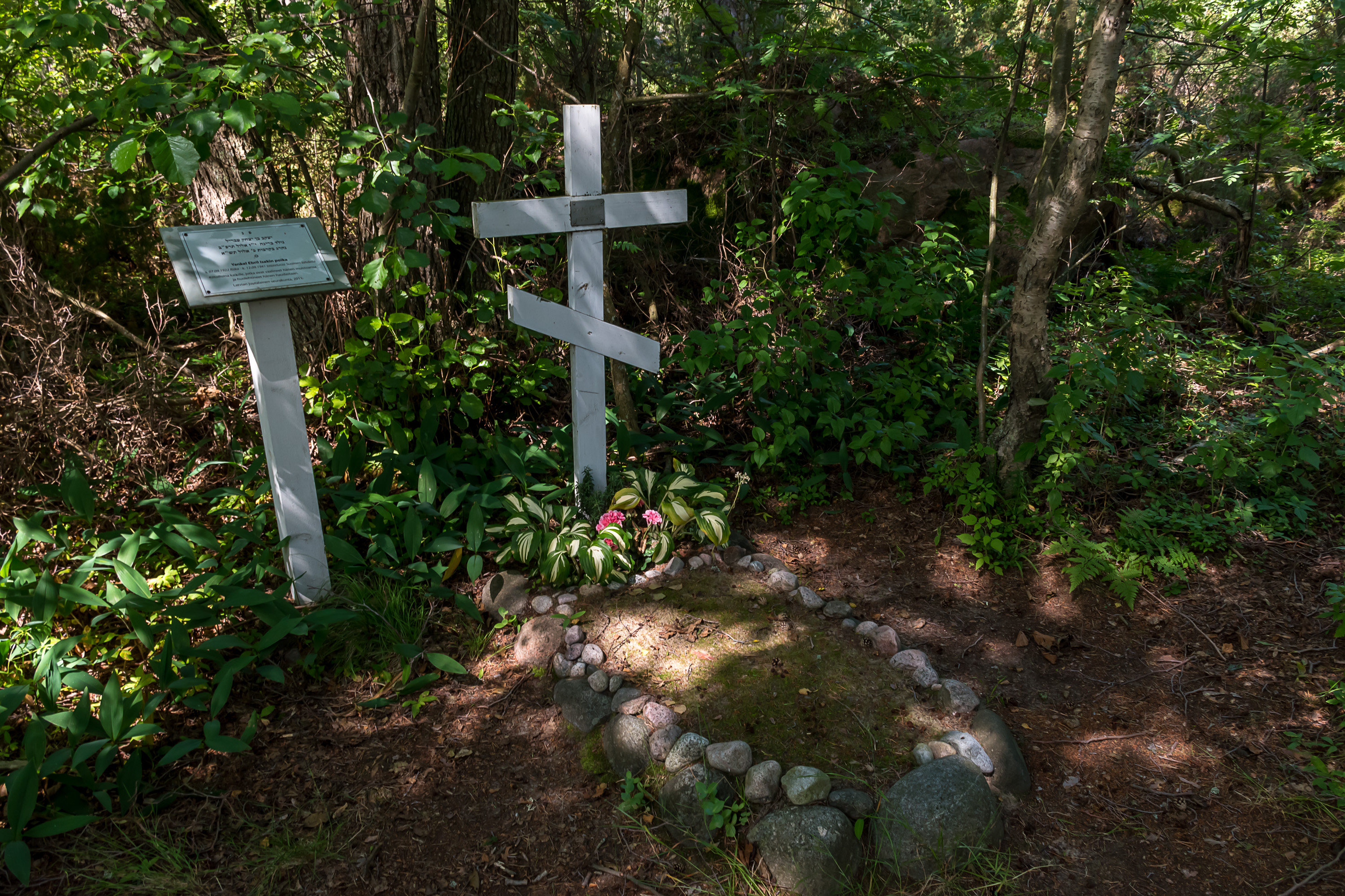 41. Могила советского солдата. Его тело прибило к берегу 12.9.1941, с потопленного в этих местах советского корабля. При нем были документы, согласно которым его звали Янкель Ебрил, и родился он в Риге в 1922. Несмотря на очевидно еврейское имя, его почему-то похоронили под православным крестом. Подробную информацию про этого солдата нашли лишь в 2010; оказалось, он и впрямь был иудейской веры (внезапно), так что рядом с крестом поставили другую табличку. История на самом деле грустная; он же был евреем из оккупированной нацистами Латвии, и вся его семья погибла в лагерях смерти, скорее всего в конце 1941. Никаких родственников в живых у него не осталось.