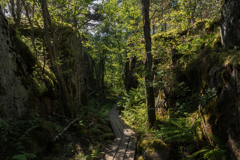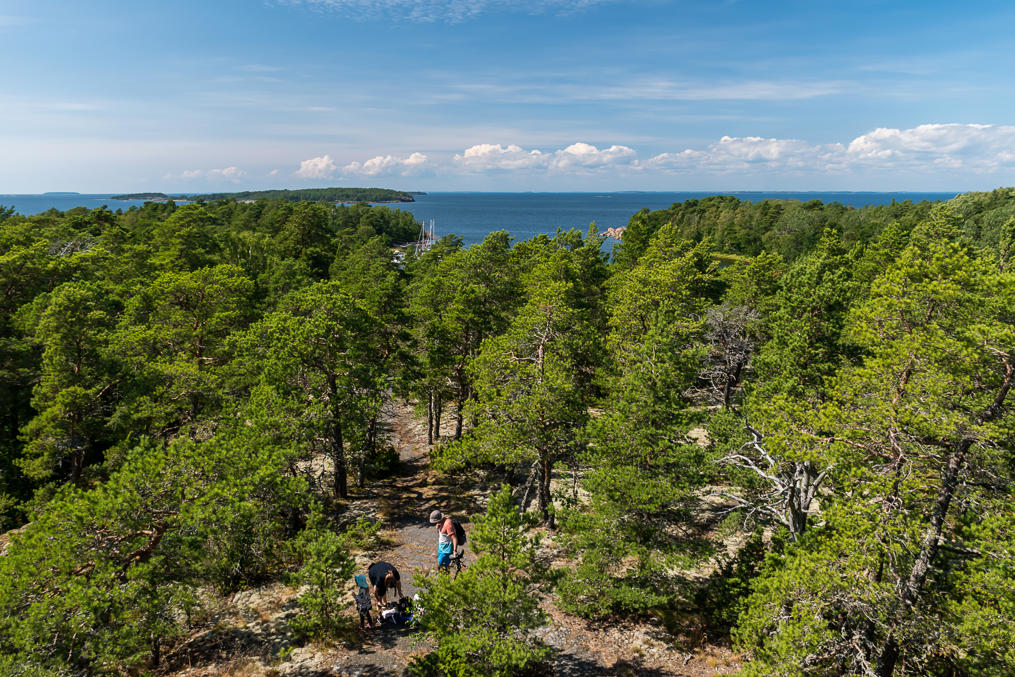 8. Большинство туристов, как обычно, никуда далеко не уходит. На острове есть небольшая сеть тропинок с указателями, ведущих ко всем нужным местам (гавани, смотровая вышка, места для палаток и т. п.), а также кольцевая природная тропа длиной 3 км, обозначенная колышками с белой верхушкой. Все равно подзаблудиться несложно; используйте, например, OpenStreetMap, там почти все тропинки отмечены. На болеее маленькой северной части острова тропинок почти нет. По острову, конечно, разрешено передвигаться и за пределами троп, если вы не слишком повреждаете этим природу (правило номер один, не ходи по ягелю).