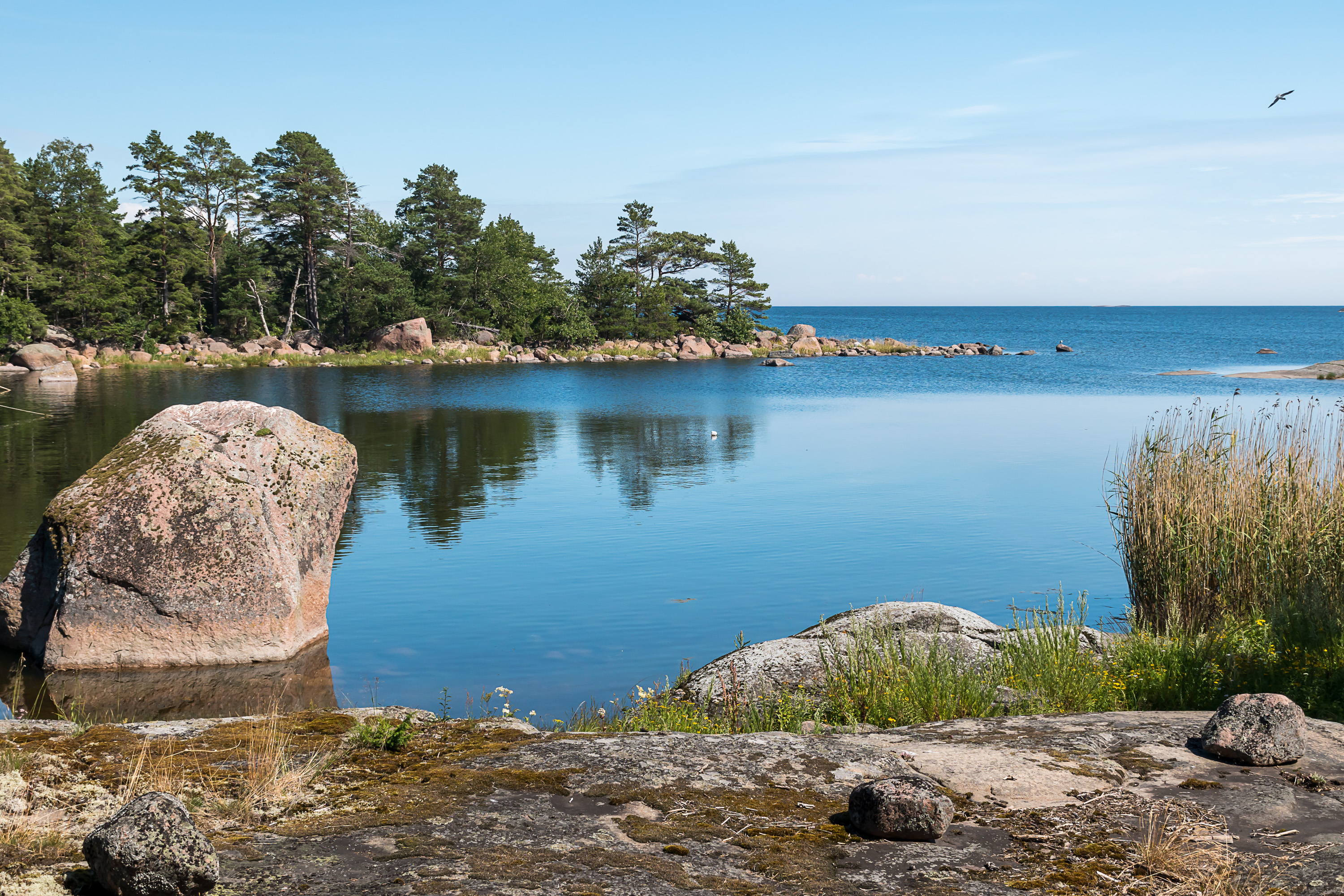 53. Другие российские острова тоже наверняка отсюда видны. С 2017 года большинство внешних российских островов в этом районе моря тоже отнесены к охраняемой территории — заповеднику "Восток Финского залива". Громада Гогланда (Суурсаари) в почти 40 км отсюда едва различима в дымке на горизонте, на фото не увидеть.