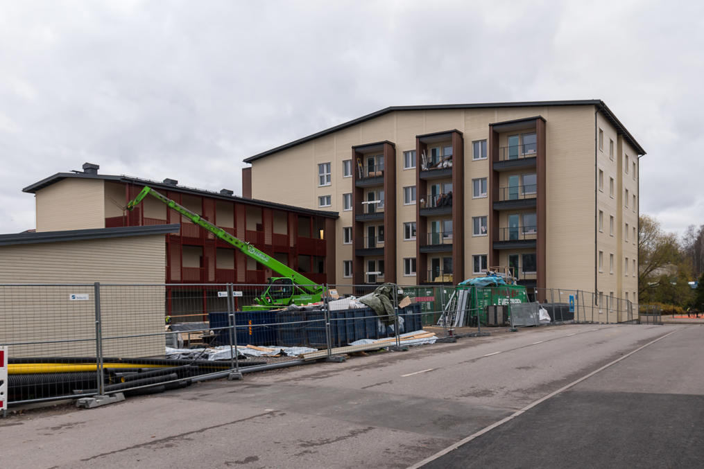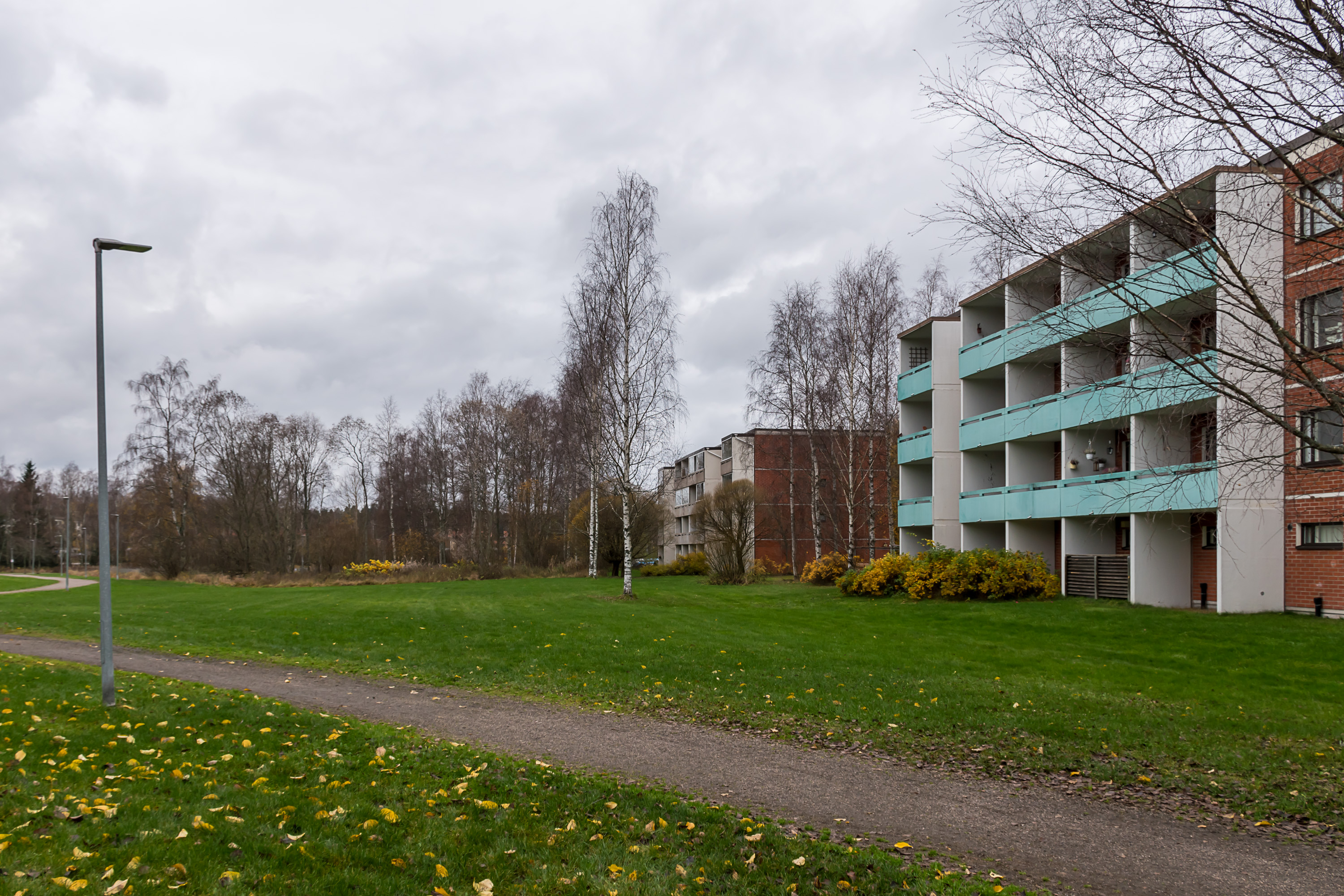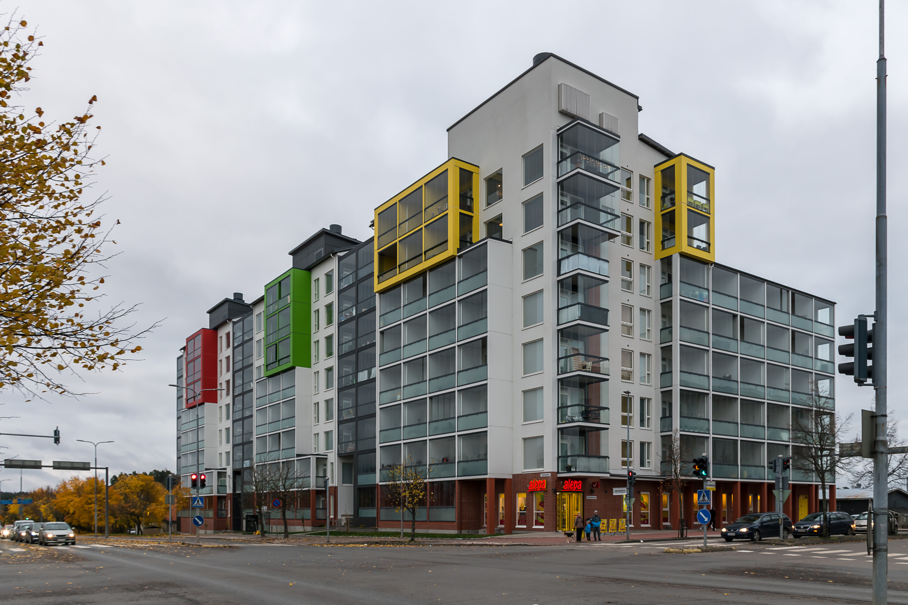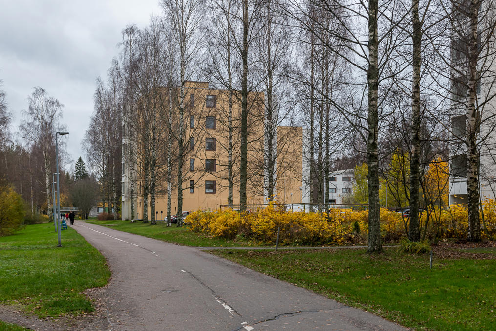 18. Основная доминанта центра Керавы, находящаяся прямо у центральной рыночной площади — квартал из нескольких немолодых многоэтажек, по высоте резко выделяющийся из окружающей застройки. С 16 этажами и высотой в 60 м они входят в число самых высоких зданий Финляндии, а на момент постройки (1975) так и вовсе были самыми высокими жилыми зданиями страны. Невысокое здание на переднем плане к жилым башням не относится — это городская администрация.