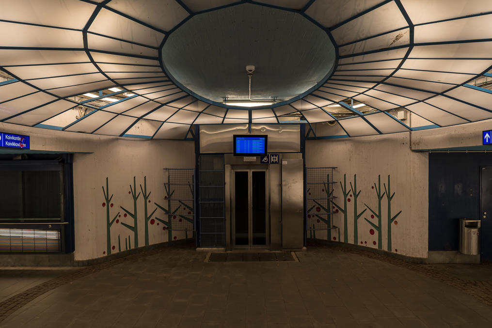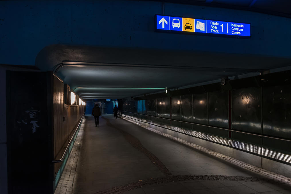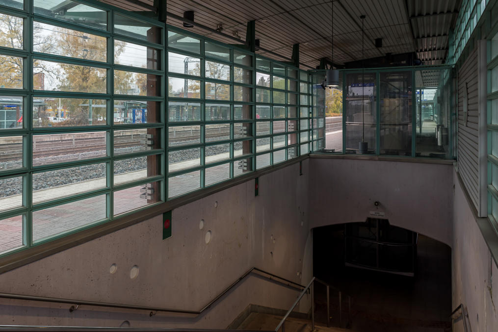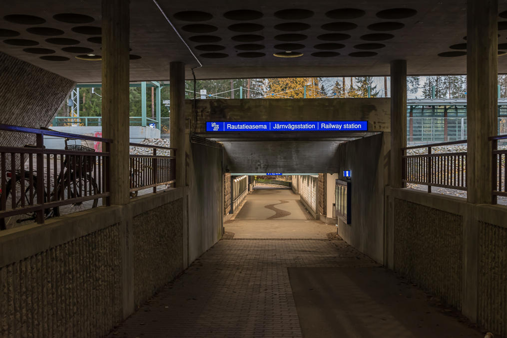 7. Вид на станцию с путепровода. Слева направо: путь 1 для дальних электричек в сторону Хельсинки; пути 2-3 для поездов дальнего следования и товарных поездов, проходящих без остановки; путь 4 для дальних электричек в стороны Рийхимяки/Тампере и Лахти; путь 5 для городских электричек, у которых тут конечная; путь 6 используется только музейными поездами на Порвоо. На 1-м пути стоит электричка Рийхимяки-Хельсинки (маршрут R). Для этих дальних маршрутов используется подвижной состав Sm2 и Sm4, отличающийся от обычных городских Stadler FLIRT (Sm5).