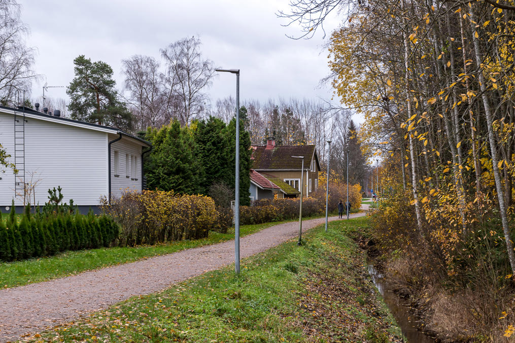 Так как в Кераве ничего особенного нет, мы просто пройдемся по ней без какой-либо определенной цели и посмотрим на обычный финский городок пасмурным, но приятным осенним днем. Вообще к Кераве у меня даже есть некоторый корыстный интерес — я присматриваюсь, не переехать ли мне туда из Эспоо — жилье в Кераве заметно дешевле, до Хельсинки ехать на электричке немногим дольше (да я и до сих пор работаю удаленно из-за гребаной короны), да и Керава вполне себе создает ощущение цельного города, в отличие от спальных районов Эспоо.