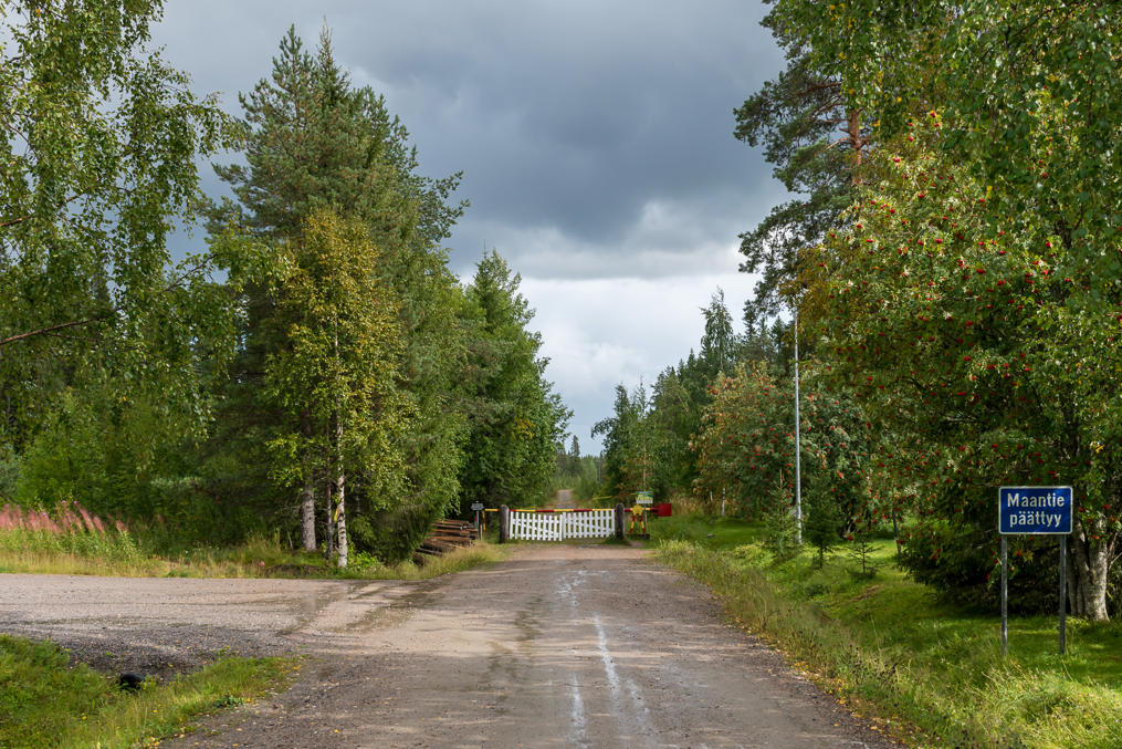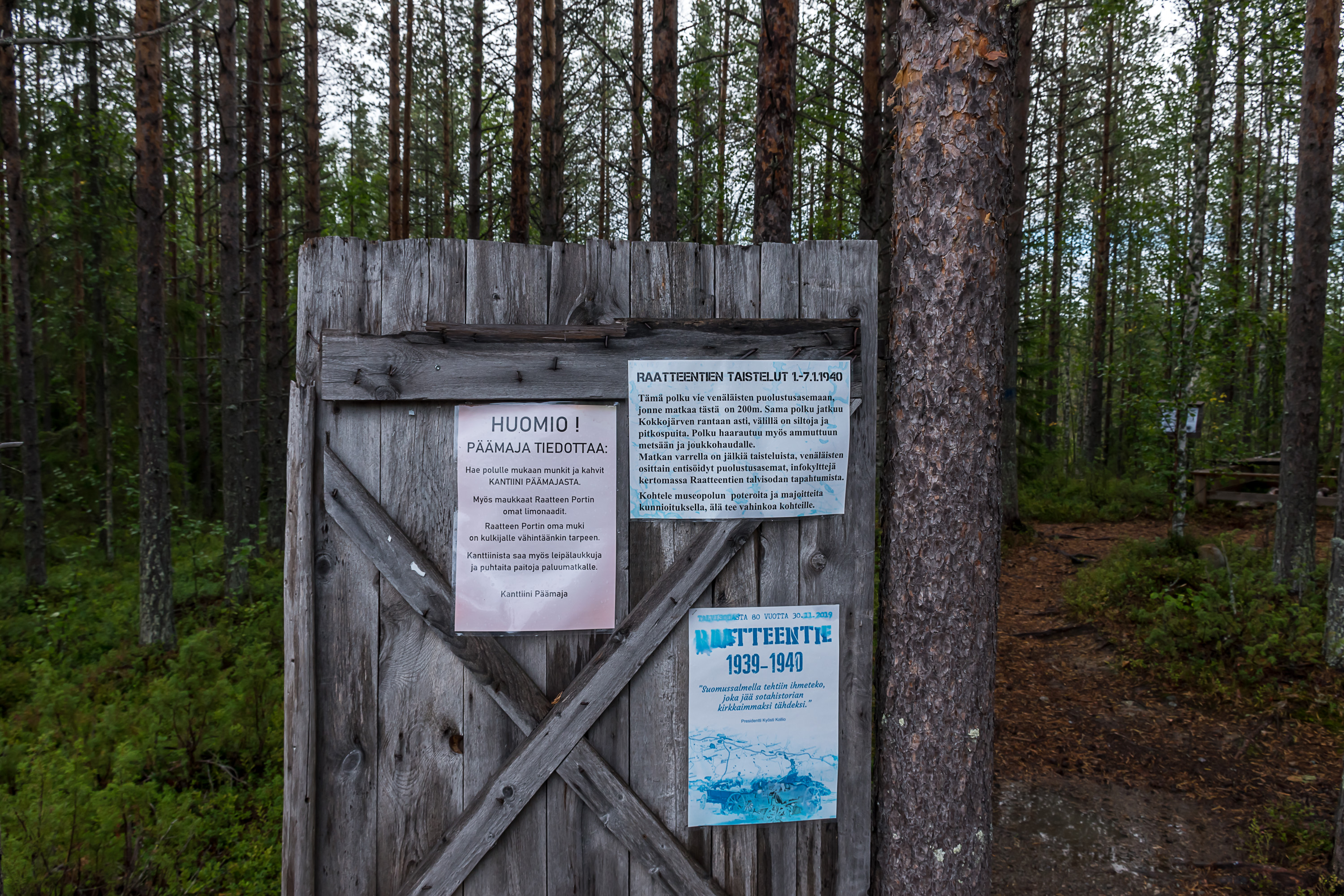 1. Раатская дорога (Raatteentie), она же ныне дорога 9125, была объявлена музейной дорогой в 1982 году. Она до сих пор сохраняет изначальную трассировку и гравийное покрытие, да и зачем бы кому-то ее тут улучшать. 18 км — расстояние до шлагбаума в конце дороги; до собственно границы ближе к 20 км.