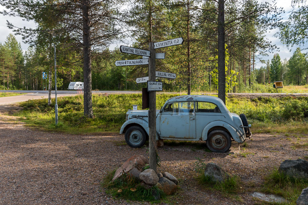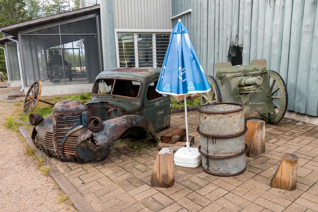 11. Знаки у хорошо сохранившегося Опеля Кадет 1938 года показывают на "столовую", каменное поле (мемориал), границу, "тропу к линии фронта", а в 450 км — на Коллаа. Сражение при Коллаа (Kollaa) — еще одно знаменитое сражение Зимней войны; оно происходило в Ладожской Карелии, в Суоярви, на утраченных территориях. Битва продолжалась почти всю войну до самого последнего дня, но советские войска за три месяца так и не сумели сломать финскую оборону и перейти реку Коллаанйоки. Именно под Коллаа сражался Симо Хяюхя (Simo Häyhä, 1905-2002), финский снайпер-«Белая смерть», в последние десятилетия вновь ставший знаменитым благодаря Интернету; на самом деле его достижения были явно преувеличены финской пропагандой (хотя и по консервативным оценкам все равно впечатляют), и в самой Финляндии он относительно малоизвестная фигура, во всяком случае, никто с ним, как с каким-то великим героем, не носится. А вот поговорка Kollaa kestää — "Коллаа выстоит" — родилась в этом сражении, вошла в широкий оборот и известна и по сей день.