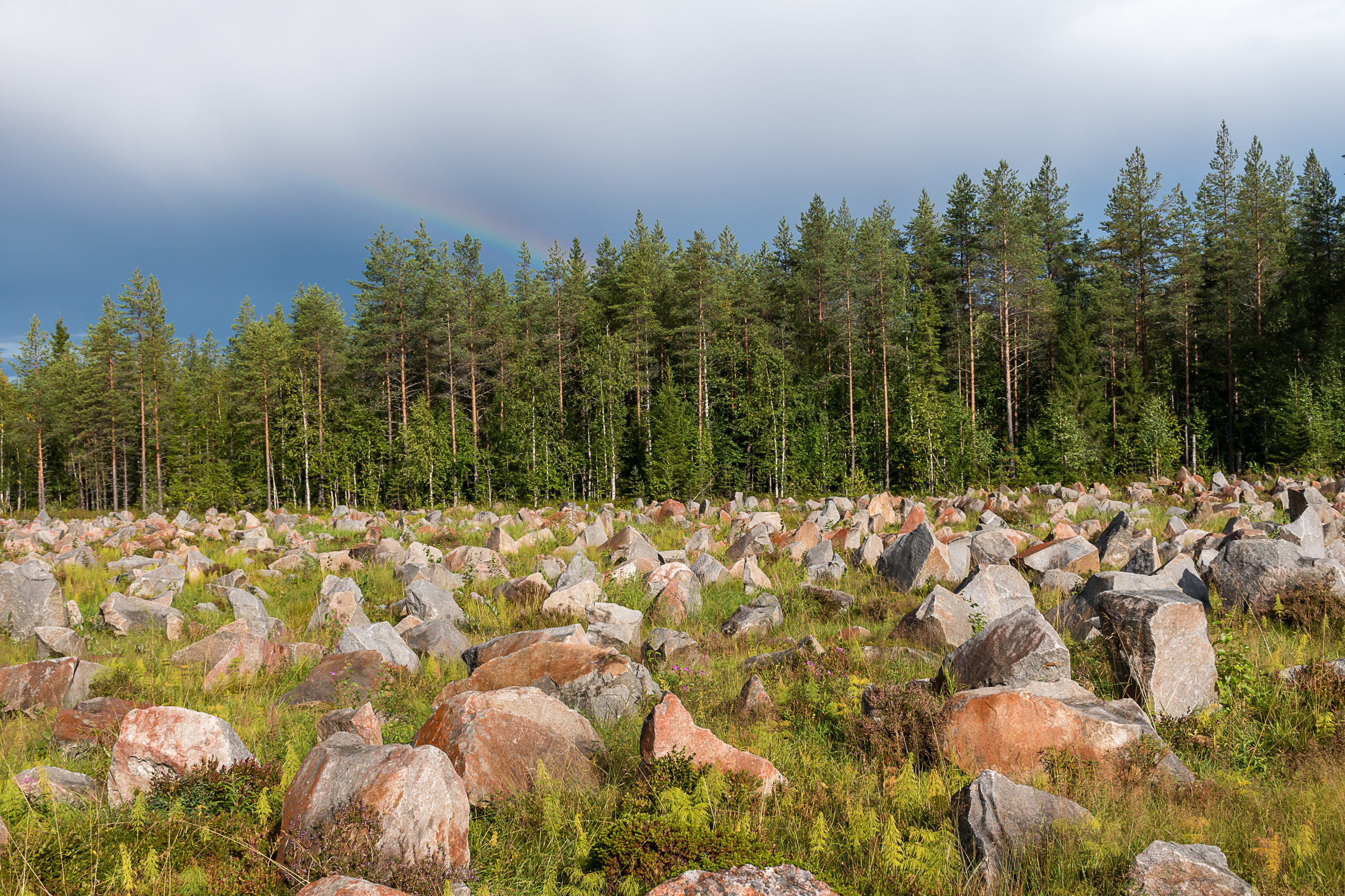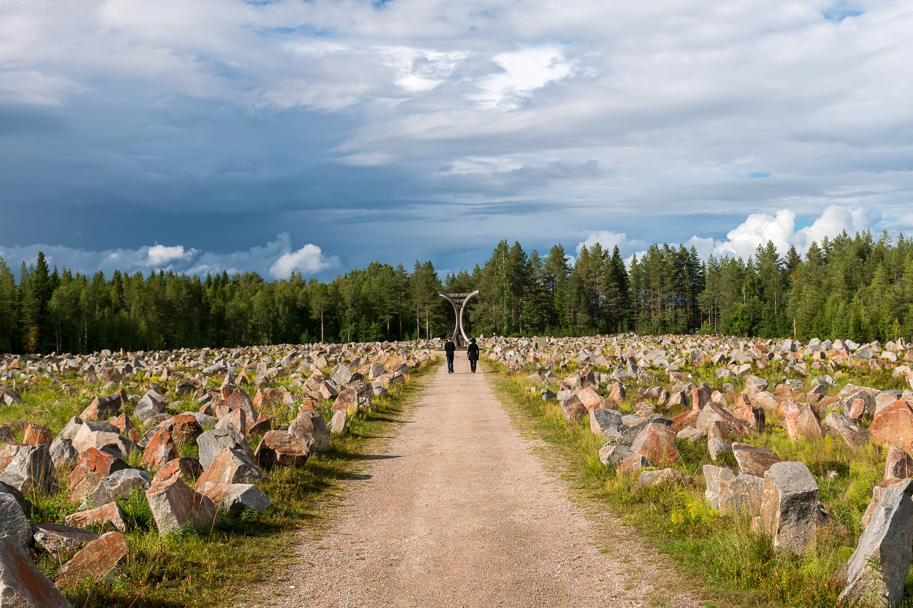 3. Самый большой памятник с большим отрывом располагается тут в самом начале музейной дороги. Он называется попросту мемориалом Зимней войны (Talvisodan monumentti) — он посвящен всей войне, а не только сражению на Раатской дороге. Он построен в 2003 году и занимает площадь около трех гектар. Иногда утверждается, что каждый из 17 тыс. валунов памятника соответствует одному убитому в войну солдату. На самом деле потери в войну были еще намного больше; погибло около 26 тыс. на финской и 127 тыс. на советской стороне (некоторые российские историки утверждают, что эти оценки неверны, но пока что я не видел никаких убедительных аргументов за это). Так что валуны просто для примерного масштаба.