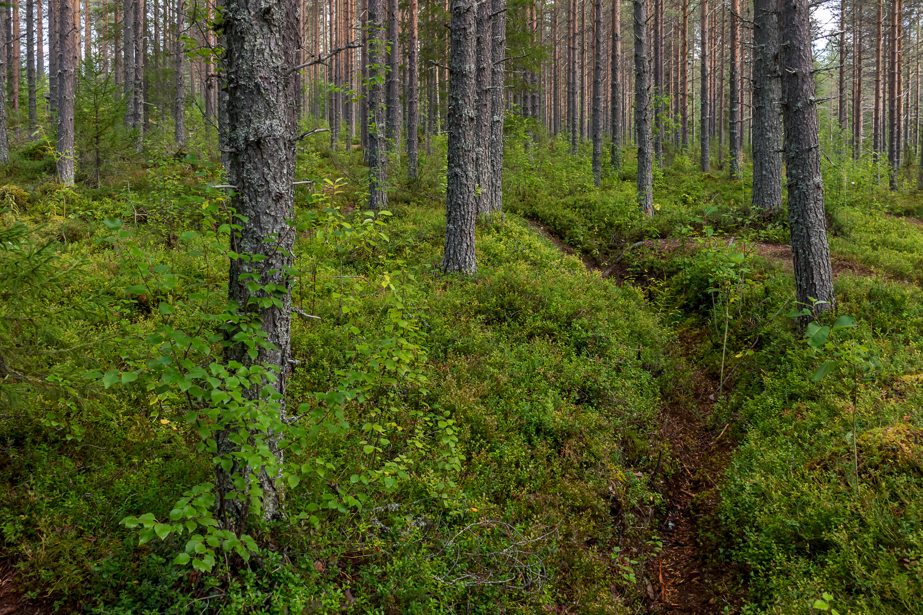 47. Пеший маршрут Восточной границы (Itärajan retkeilyreitti) проходит через заставу Раате. Это тропа для больших походов, общей длиной около 160 км. Она проходит в основном через глухие леса Суомуссалми невдалеке от российской границы (конечно, она проложена так, чтобы не заходить в небольшую пограничную запретную зону). Тропа начинается от муниципальной границы Суомуссалми и Кухмо невдалеке от погранперехода Вартиус (Vartius), либо чуть дальше, от собственно погранперехода; и заканчивается в национальном парке Хосса (Hossa) на муниципальной границе Суомуссалми и Куусамо. Это весьма малоизвестная и редкопосещаемая тропа, но все же она одна из довольно немногих больших троп, за которыми ухаживает государственное Лесное управление (Metsähallitus). Впрочем, в 2019 они объявили, что тропа больше не будет обслуживаться по крайней мере "в нынешнем виде". Ну, тут уже даже знаки вон явно далеко не молоды :) Описание маршрута доступно только на финском на официальном сайте Luontoon.fi и на сайте энтузиастов.