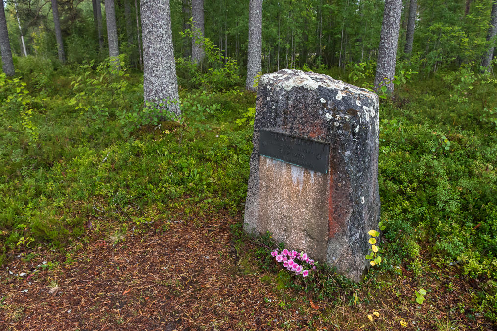 30. Памятник карельским добровольцем в "Племенных войнах" (Heimosodat) 1918-1922, в которых отряды финских добровольцев совершили ряд походов на советскую Карелию, пытаясь вдохновить карелов на мятеж против советской власти и присоединение к Финляндии. Эти походы в конечном итоге успеха не имели, хотя кое-какие карелы действительно в итоге бежали в Финляндию. Будучи несомненным актом агрессии со стороны Финляндии, эти стычки, несмотря на свой довольно-таки местечковый характер, не очень-то способствовали строительству мирных советско-финских отношений, а в наши дни в России их с удовольствием именуют "Первой" и "Второй" советско-финскими войнами (дескать, Зимняя-то уже "Третья", а в первых двух финны нападали, так что вроде бы как получается не агрессия, а восстановление справедливости). На памятнике написано: "Памяти братских воинов Беломорской Карелии. Слава тем добровольцам, что по своим убеждениям храбро пошли за знаменем свободы. Раатская дорога была важным путем для братских воинов и беженцев из Беломорской Карелии".