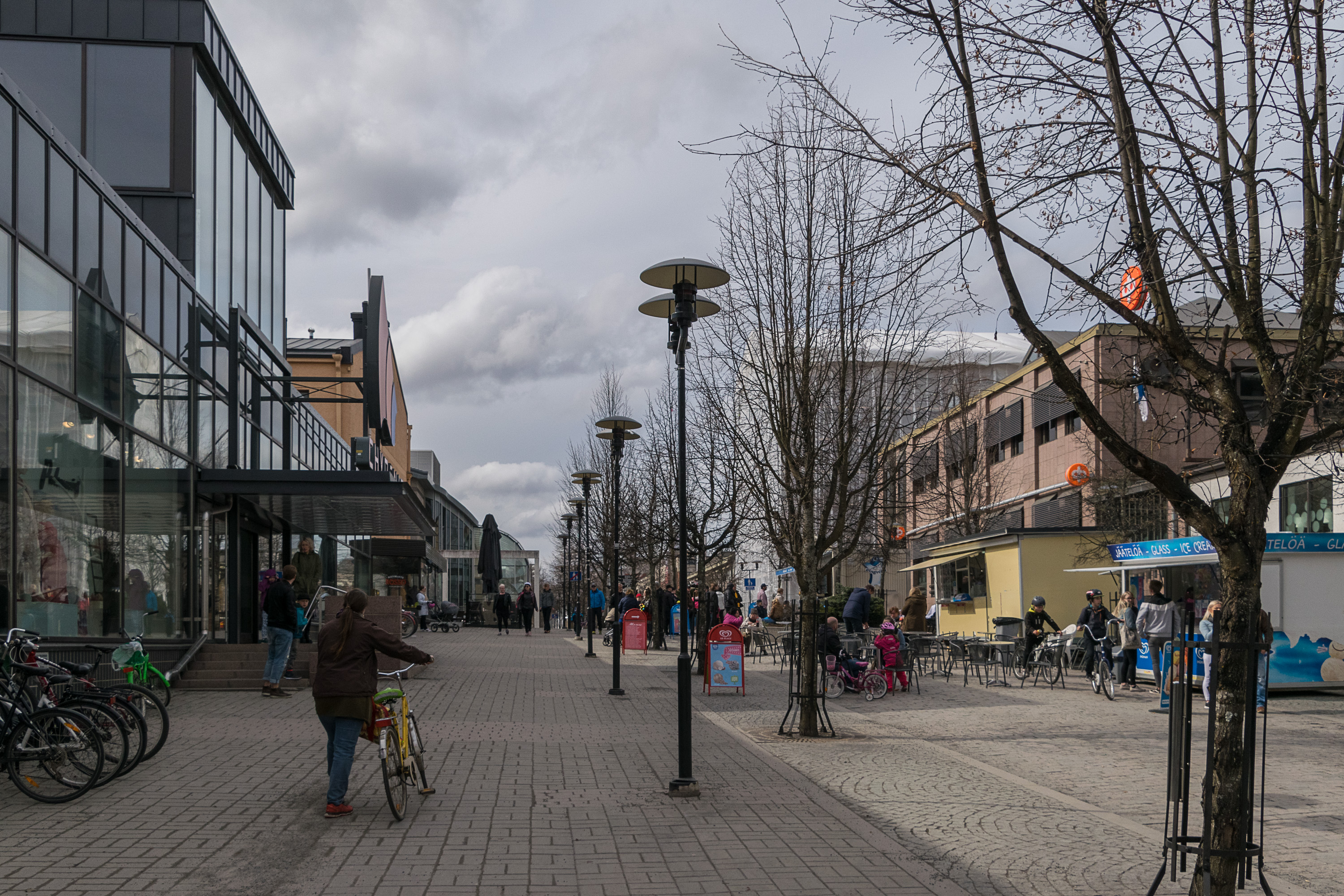 11. Небольшая пешеходная улица в центре. Называется Техтаанкату (Tehtaankatu), Фабричная улица — в честь табачной фабрики, которая когда-то в 1763 году действовала прямо тут в центре. Фабрика проработала до конца 20 века, хотя, надо думать, к тому времени уже в каком-то другом месте, а не в центре, да и она проигрывала более крупной фабрике в близлежащем Якобстаде. В Финляндии в целом было когда-то довольно много табачных фабрик, но в 2000-х все отечественное производство прекратилось. Хотя и курят финны сейчас намного меньше, чем раньше; курит ежедневно лишь 14% населения в рабочем возрасте.
