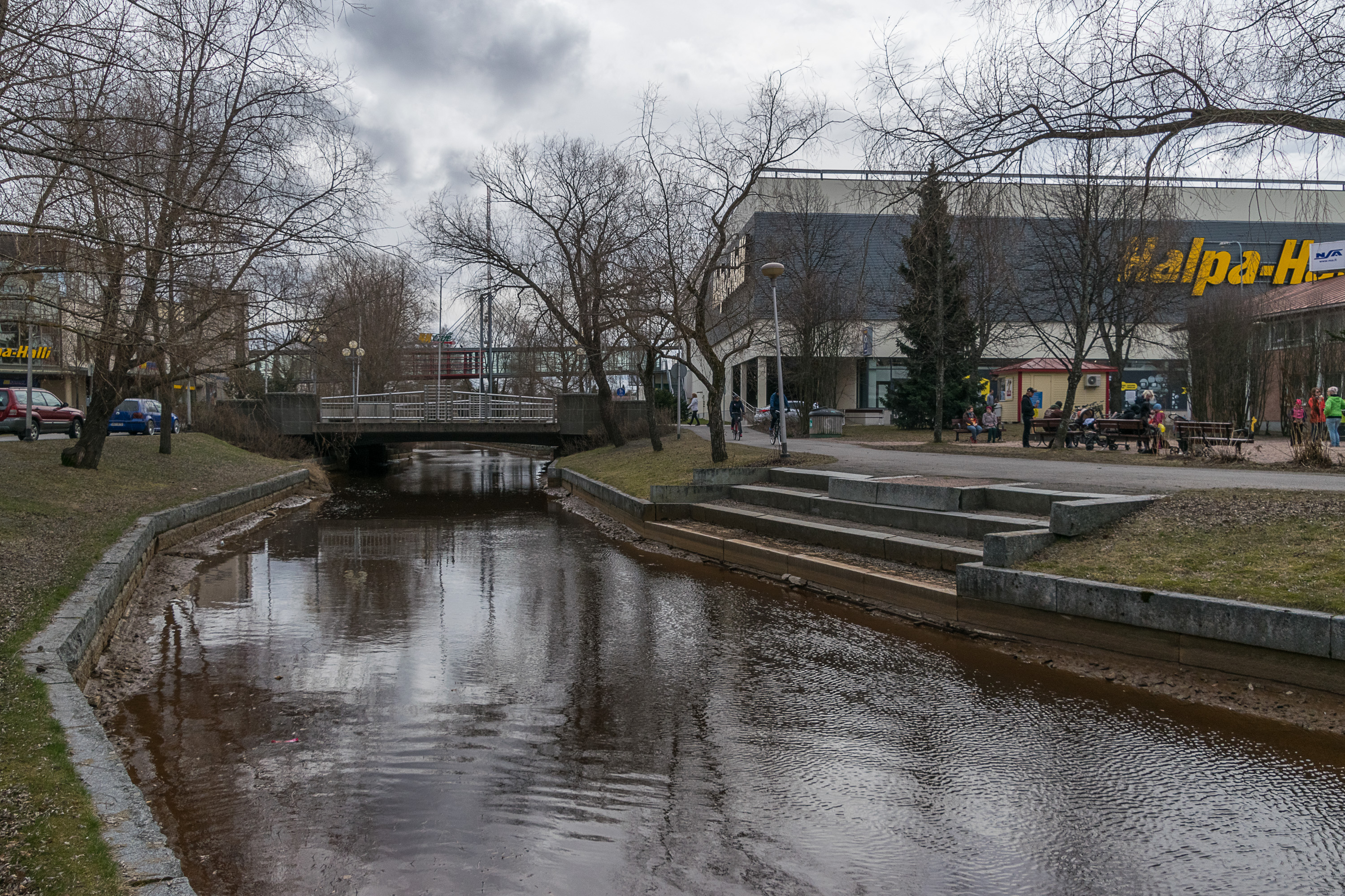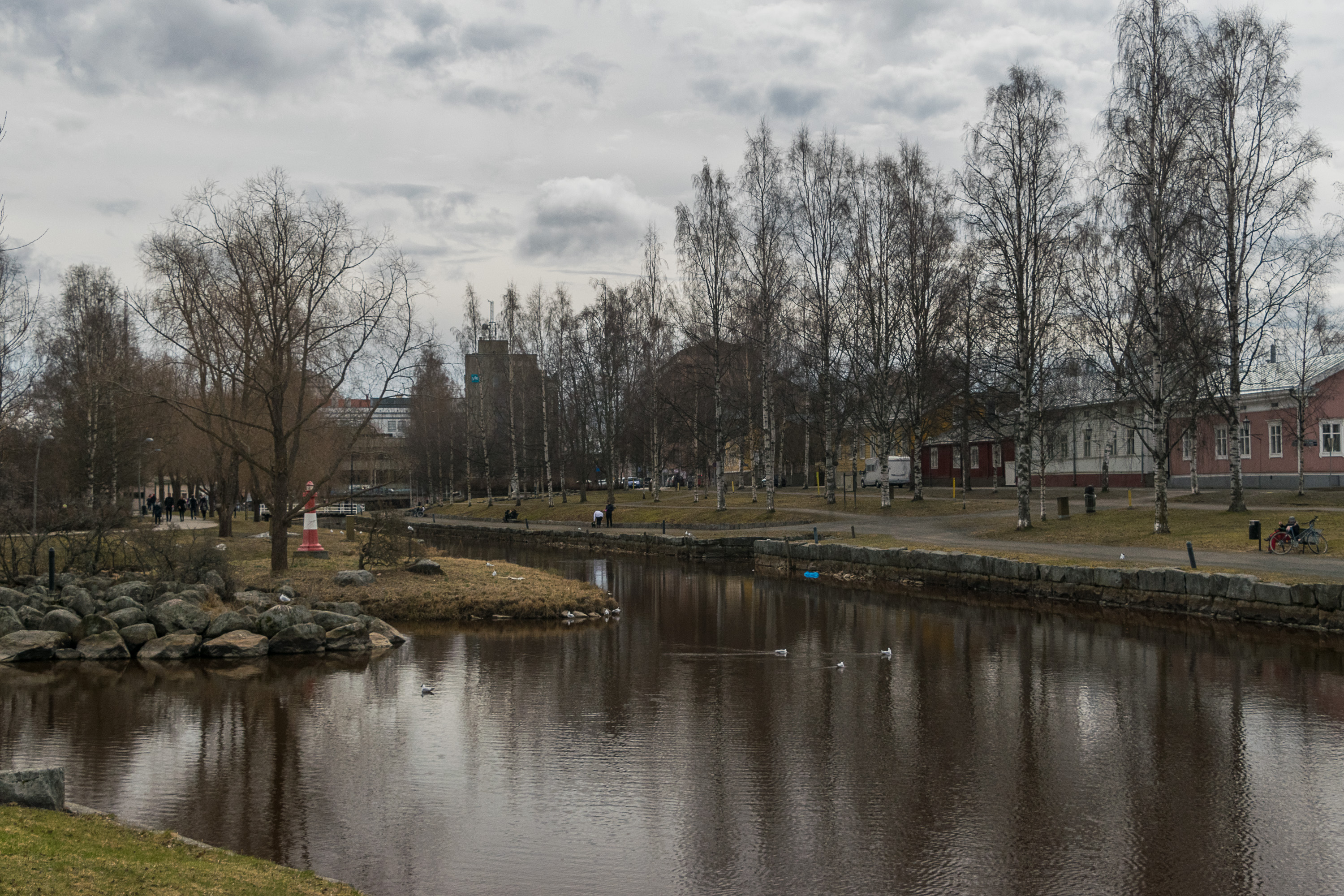 1. Начнем из центра, от небольшого парка на берегах пролива Сунти. Не самый чистый водоем на свете, ну да представьте, как он выглядел и пах в те времена, когда туда сливали канализацию :) Сунти был судоходен до этих мест до начала 20 века или около того (хотя дноуглубительные работы приходилось регулярно повторять), и по его берегам тогда стояли мелкие суда. Справа видны деревянные кварталы Неристана, на заднем плане — очертания зданий центра Кокколы.