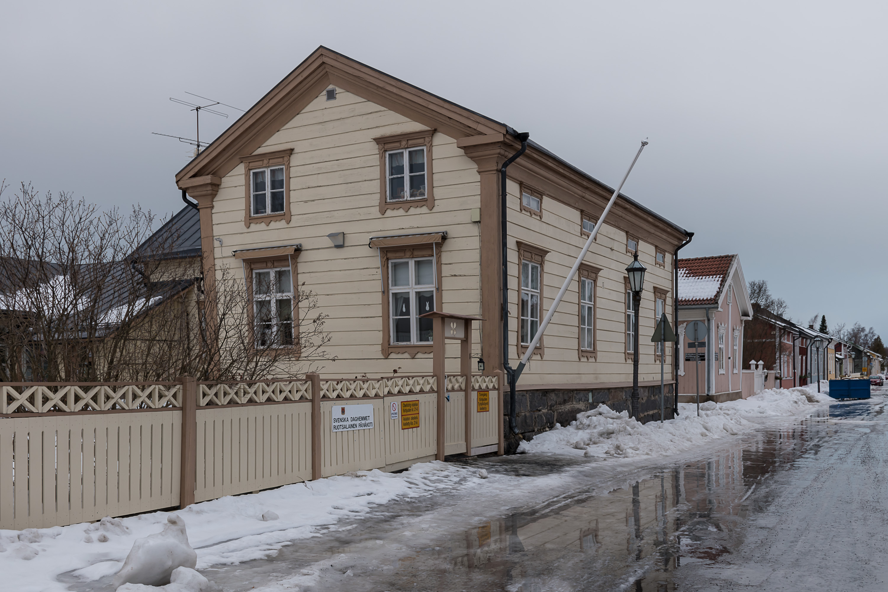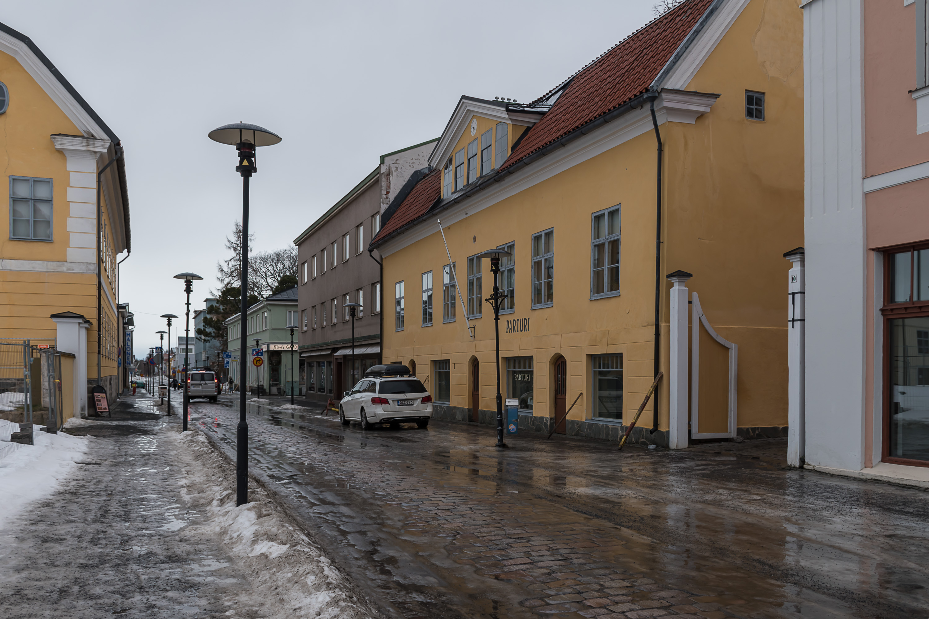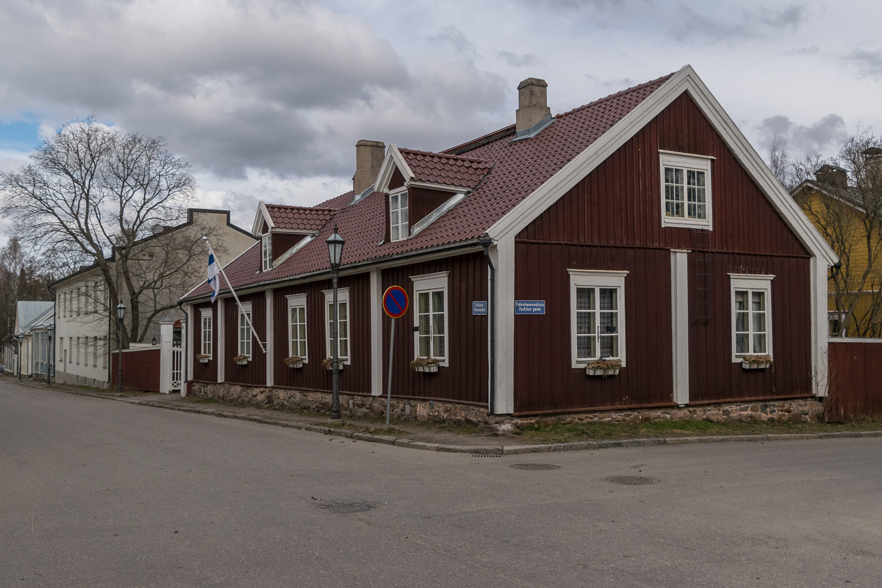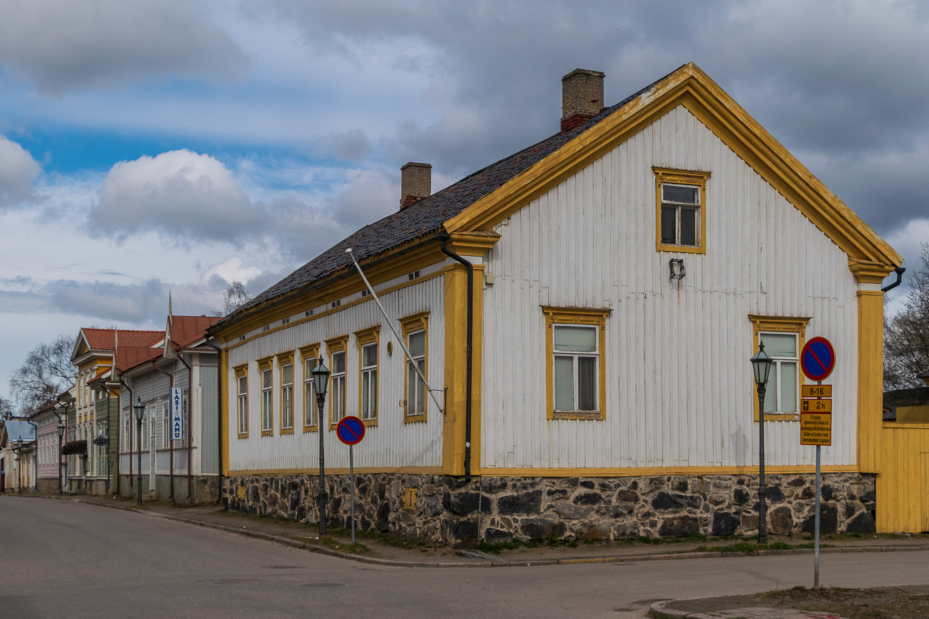 27. Дом коронного фогта (kruununvoudintalo), другое старое деревянное здание, здесь слева. Утверждается, что он построен в 1667 году, но это ж получается прямое противоречие с упоминавшейся выше Педагогией и новый кандидат на самое старое светское деревянное здание. Про историю этого дома я мало что смог найти, на сайте Музейного ведомства (Museovirasto) оно, в отличие от Педагогии, не упоминается, да и пост коронного фогта (начальника полиции, налоговой и прокурора в одном лице) существовал довольно поздно, в 1898-1945 году. Но, конечно, дом раньше мог просто называться как-то иначе. Ну, в любом случае, дом старый; я подозреваю, дом подобного назначения таки был на этом месте с 1667 году, но конкретно это здание не первая его инкарнация. Сейчас здание используется как кафе и для мероприятий.