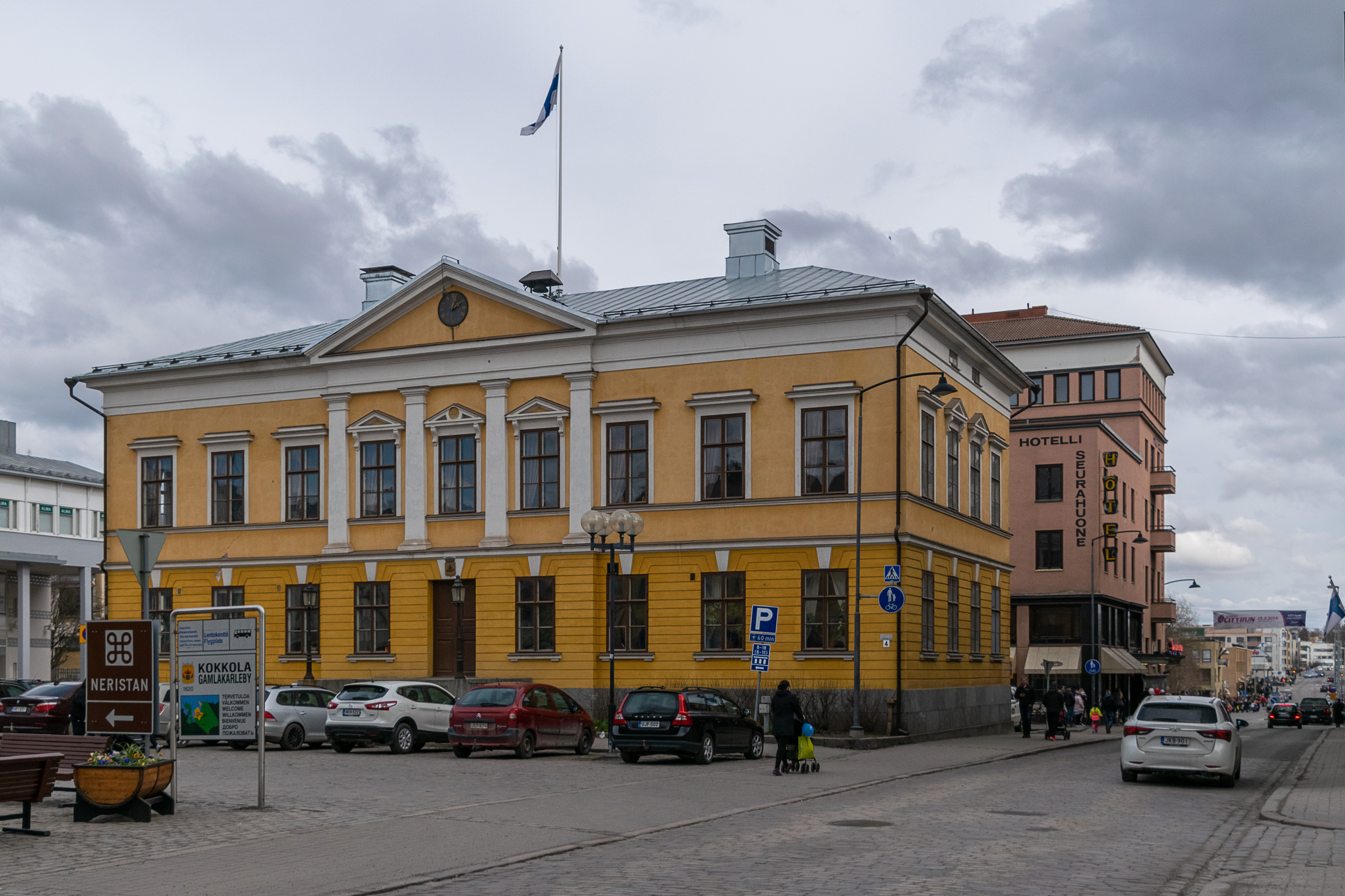 9. Старая ратуша Кокколы, построенная в 1842, спроектированная местным фабрикантом-судостроителем Андерсом Доннером (Anders Donner, 1796-1857) и одобренная архитектором центра Хельсинки Карлом Людвигом Энгелем (Carl Ludvig Engel, 1778-1840). Это была уже четвертая ратуша в истории города. Сейчас здание используется мало; недавно писали, что от возраста оно уже понесло кое-какие повреждения, хотя и исправимые. Обратите также внимание на клумбу слева, в виде бочки дегтя, разрезанной вдоль.