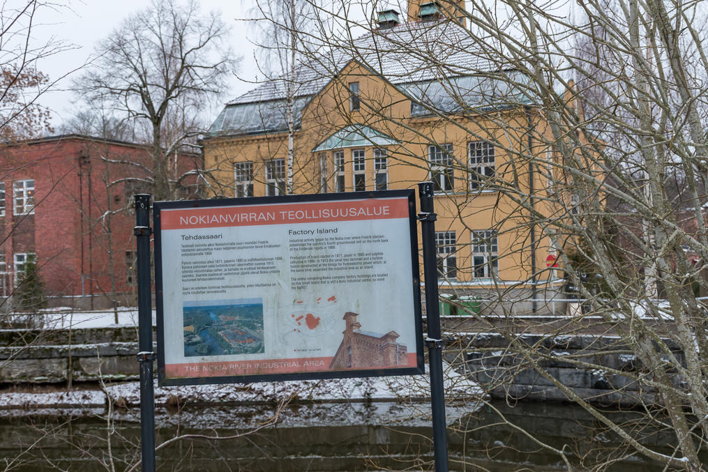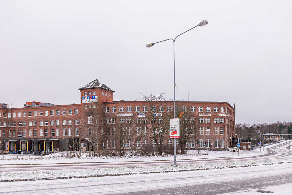 19. Самое старое заводское здание, по-видимому, сдается более мелким бизнесам. Nokian Jalkineet (Нокийская обувь), в частности, когда-то была подразделением Nokian, производившим резиновую обувь и выделенным в отдельную компанию в 1990 году. Фабрика резиновой обуви была куплена в 2005 году компанией Berner, финской компанией, продающей разнообразные в основном ширпотребные товары под различнымии брэндами. Хотя у Berner есть свои производства в Финляндии, шампуней, например, производство Nokian Jalkineet они закрыли, и теперь под этой маркой продается обувь, произведенная в Сербии и Словакии.
