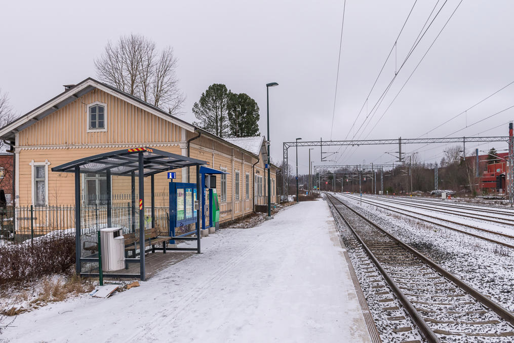 23. Ну а теперь посмотрим на другие места Нокиа. Железнодорожная станция на ж/д Тампере-Пори расположена менее чем в километре к северу от промзоны. Станция наряду со всей ж/д линией длиной 155 км была открыта в 1895 году.
