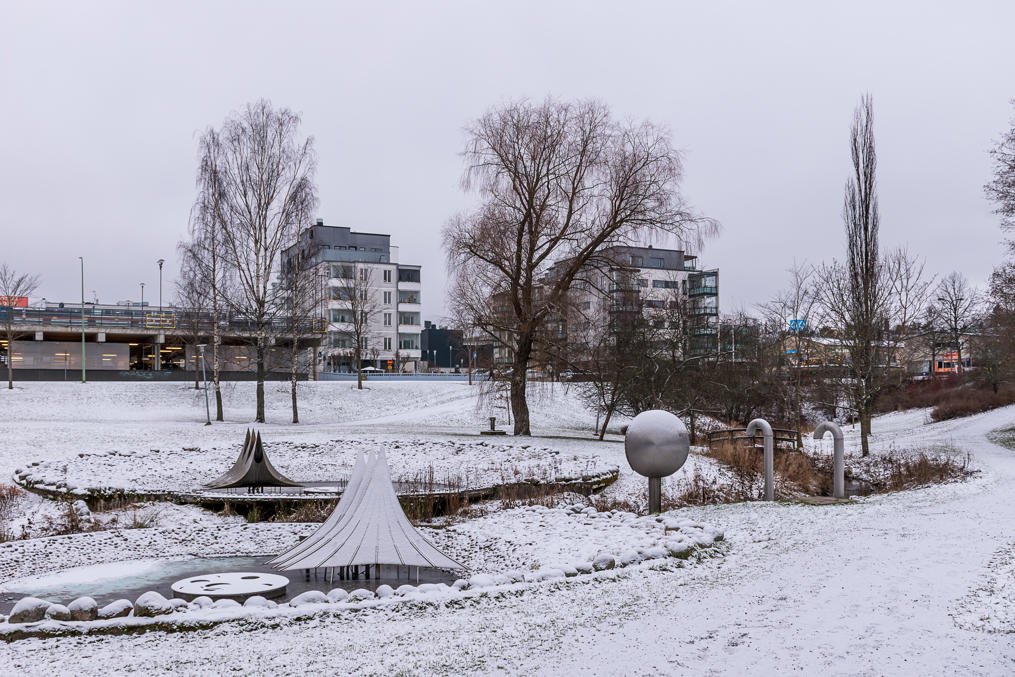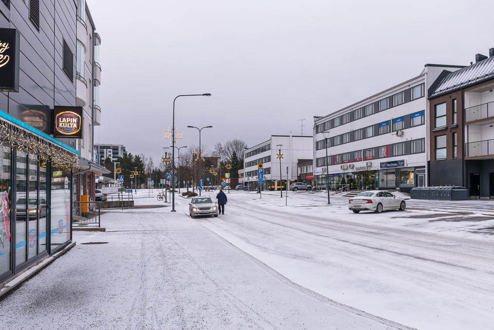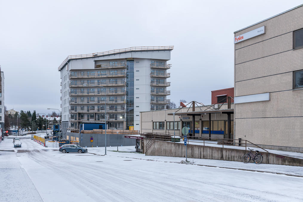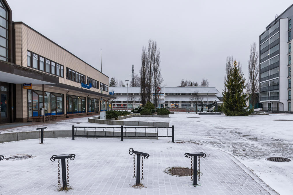 31. Прямо в центре есть несколько новых или строящихся крупных жилых многоэтажек, крупнее, чем старые дома. Так нередко бывает в подобных пригородах; хотя большая часть застройки тут малоэтажная (частные дома и таунхаусы), сейчас может быть вполне популярным и жить в многоэтажке прямо в центре, в двух шагах от местных магазинов и сервисов и остановок общественного транспорта, и в то же время в атмосфере маленького уютного финского городка. (Вообще с населением 34 тыс. Нокиа не такая уж и маленькая, но выглядит она как-то меньше, чем в действительности.)