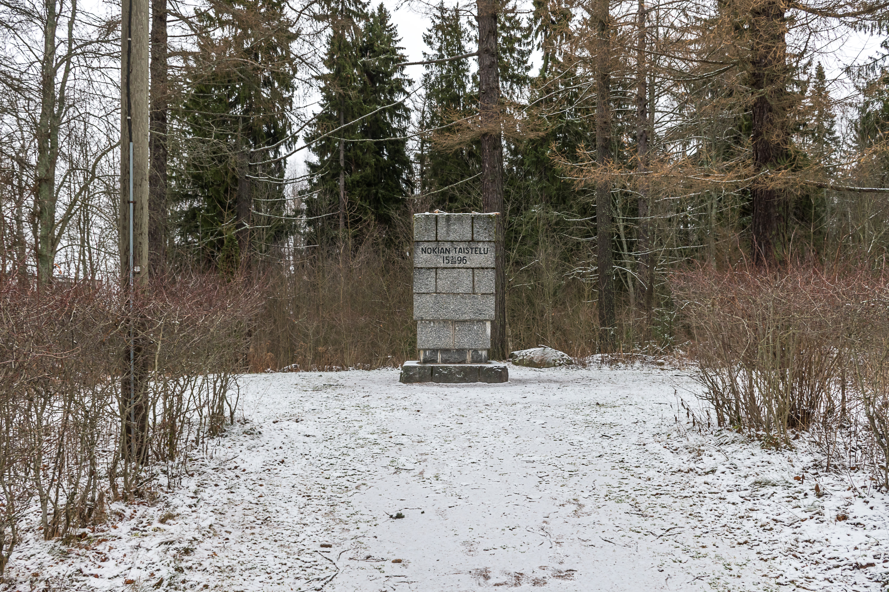 36. Памятник в очень укромном месте, на который я наткнулся случайно, посвящен Нокийскому сражению 1596 года. Сражение было одной из крупных битв так называмой Дубинной войны (nuijasota), крупнейшего крестьянского восстания в истории Финляндии в 1596-1597. Восстание связано с так называемой Войной против Сигизмунда в 1598-1599, тоже в свою очередь восстанием — Карла, герцога Сёдерманландского, против Сигизмунда, короля Швеции и Польши. Сигизмунд был не слишком популярен (в числе прочего, он был католиком), а у Карла были вполне обоснованные собственные притязания на трон — он был последним в живых сыном Густава I Васы. Kaarle-hertua, "Карл-герцог", подбил финских крестьян на бунт против Класа Флеминга (Klaus Fleming), наместника Финляндии и ставленника Сигизмунда, крайне непопулярного в Финляндии из-за жестокости, самодурства и отказа распускать армию даже в мирное время, что приводило к дополнительным налогам на содержание армии и продолжающемуся недостатку рабочих рук. Крестьянское восстание, начавшееся в провинции Остроботния, было подавлено довольно быстро (Нокийское сражение стало первым крупным поражением), его предводители были казнены в Исокюрё, а их родные земли подверглись разорению и мародерству армией Флеминга. Всего погибло 2500-3000 человек. Карл, который, вероятно, и не ожидал, что всерьез начнется какое-то восстание, никакой помощи ему не оказал. Флеминг умер от скоропостижной болезни спустя несколько месяцев, а вскоре разразилась открытая гражданская война между сторонниками Сигизмунда и Карла; Карл IX провозгласил себя королем в 1599 году (Сигизмунд остался королем Польши), и безжалостно вырезал множество сторонников Сигизмунда, включая сыновей Флеминга и многих командиров Дубинной войны.