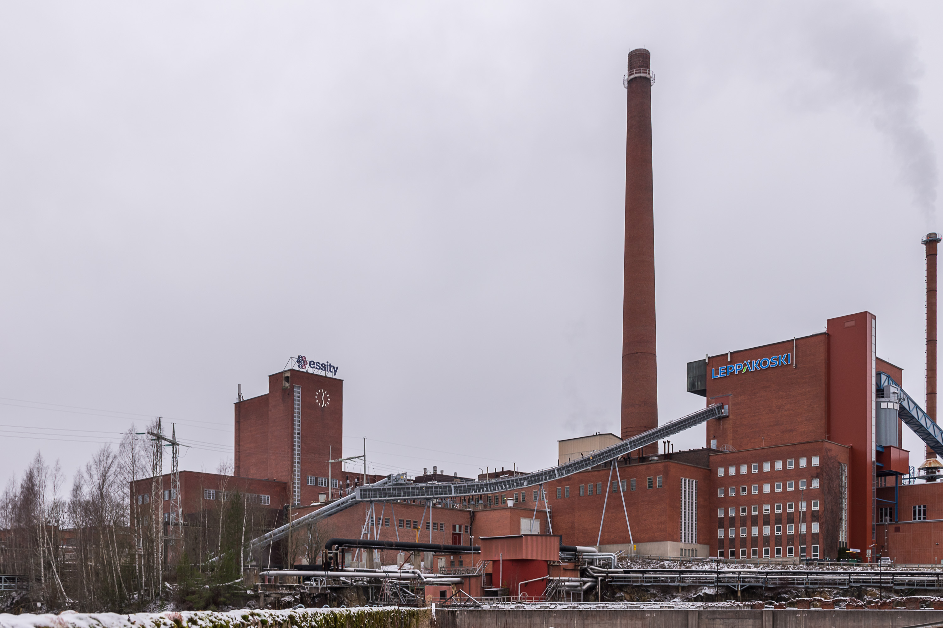 Трубы на заднем плане принадлежат ТЭЦ Нокианвирта. Ее в 2016 перестроили почти с нуля, переориентировав с российского газа на отечественную продукцию лесной промышленности. Насколько я понял, основная ее задача не в выработке электричества, а в поставке пара для производства как Nokian, так и Essity, и в центральном отоплении города.
